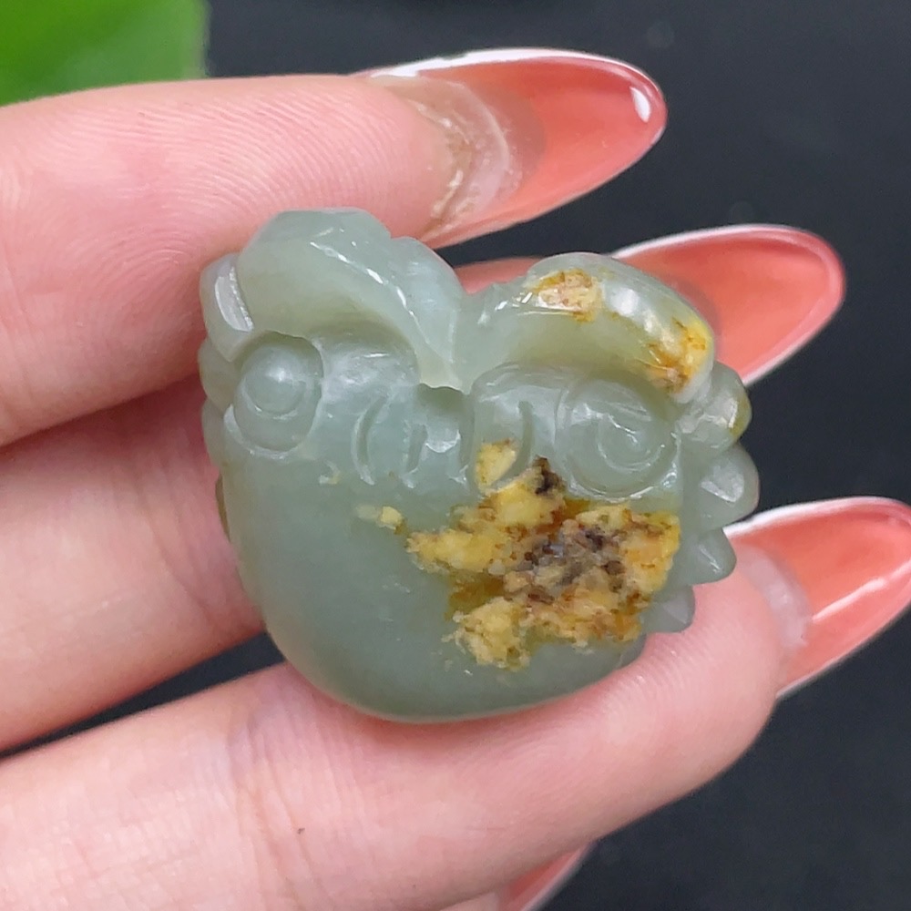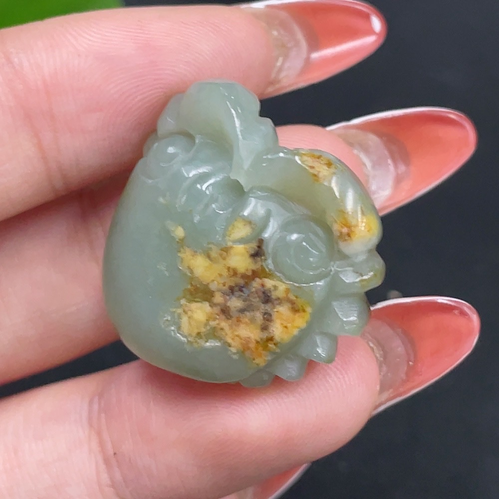Hetian Jade Seed Material Pendant - Wealth from All Directions - Undetermined Skin Color Origin - Contains Other Mineral Components - Total Weight Approximately 8.4g