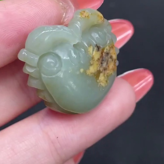 Hetian Jade Seed Material Pendant - Wealth from All Directions - Undetermined Skin Color Origin - Contains Other Mineral Components - Total Weight Approximately 8.4g