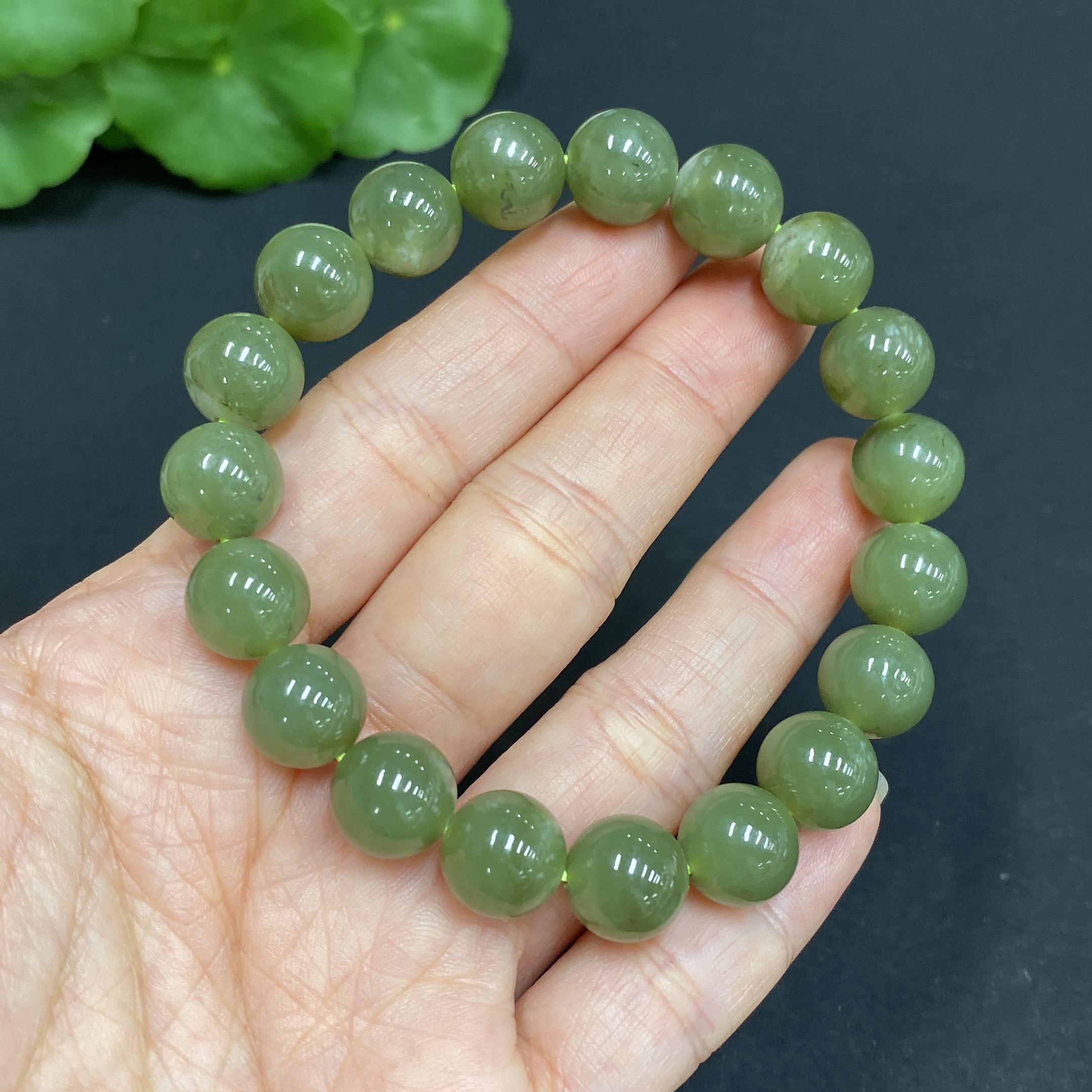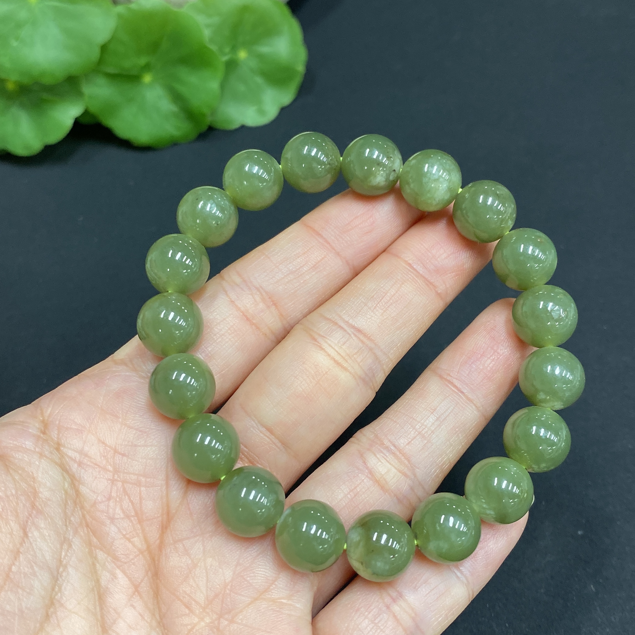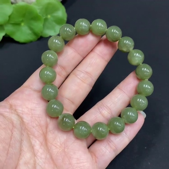 Hetian Jade Bracelet, Approx. 10mm Beads, Total Weight About 31.3g, Containing Other Mineral Components