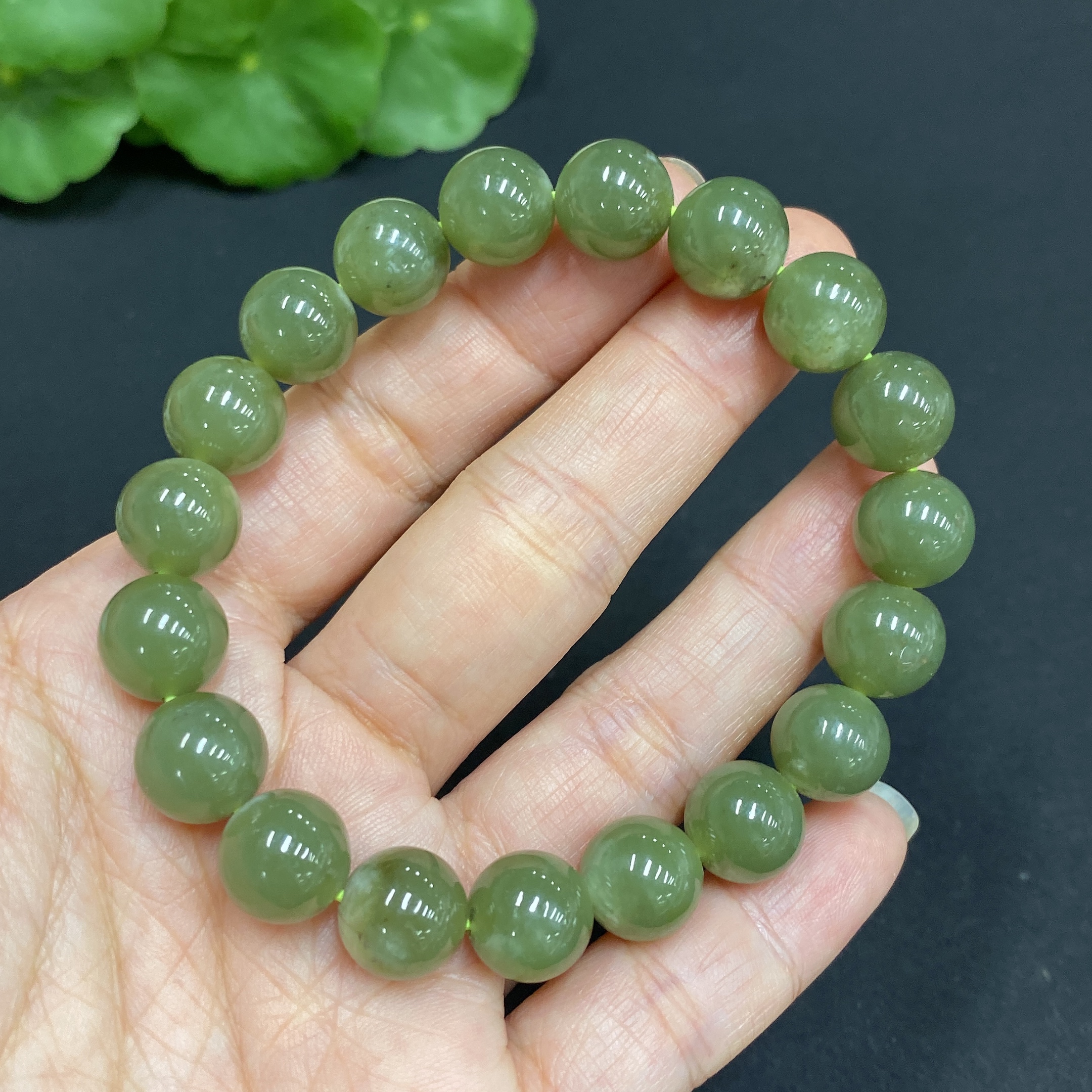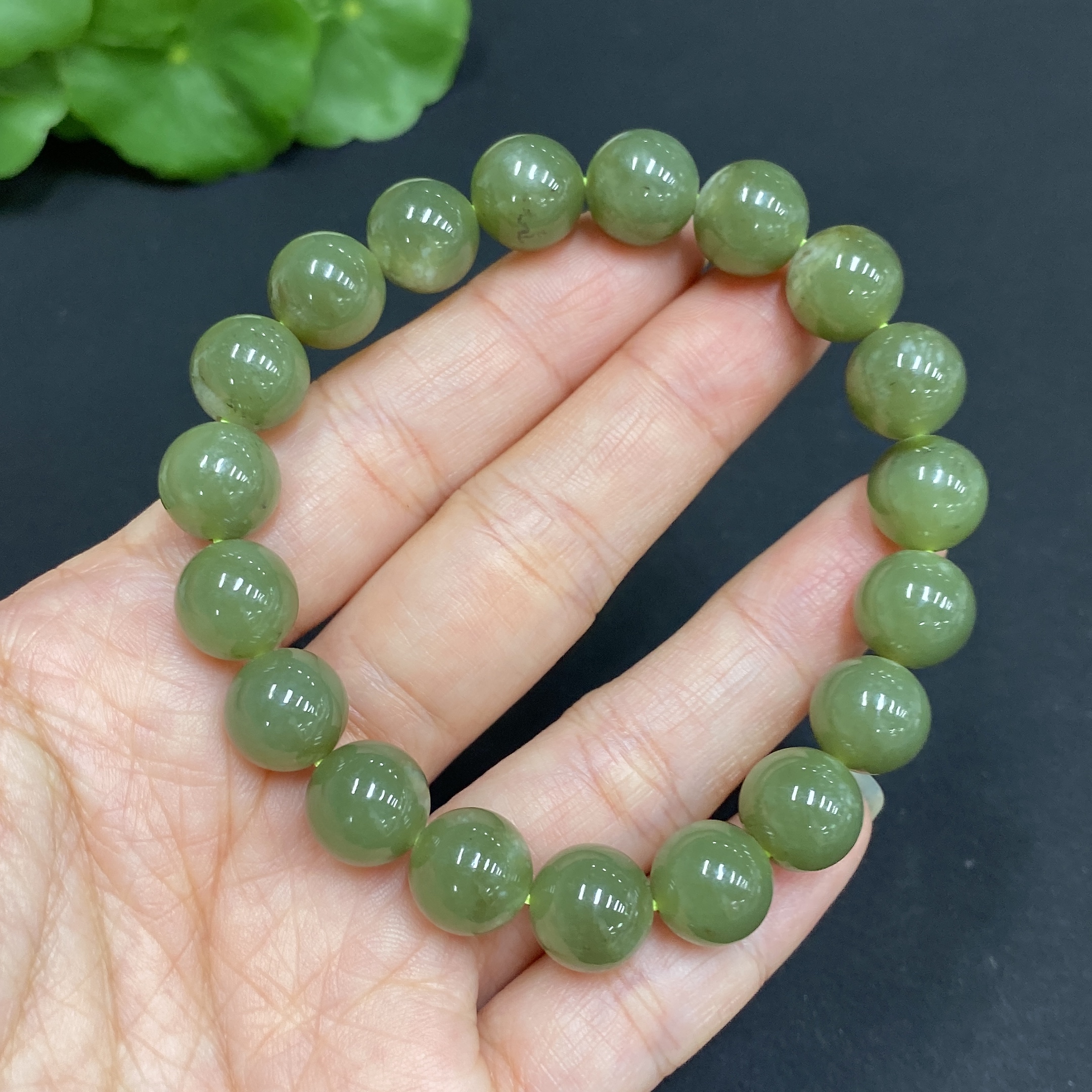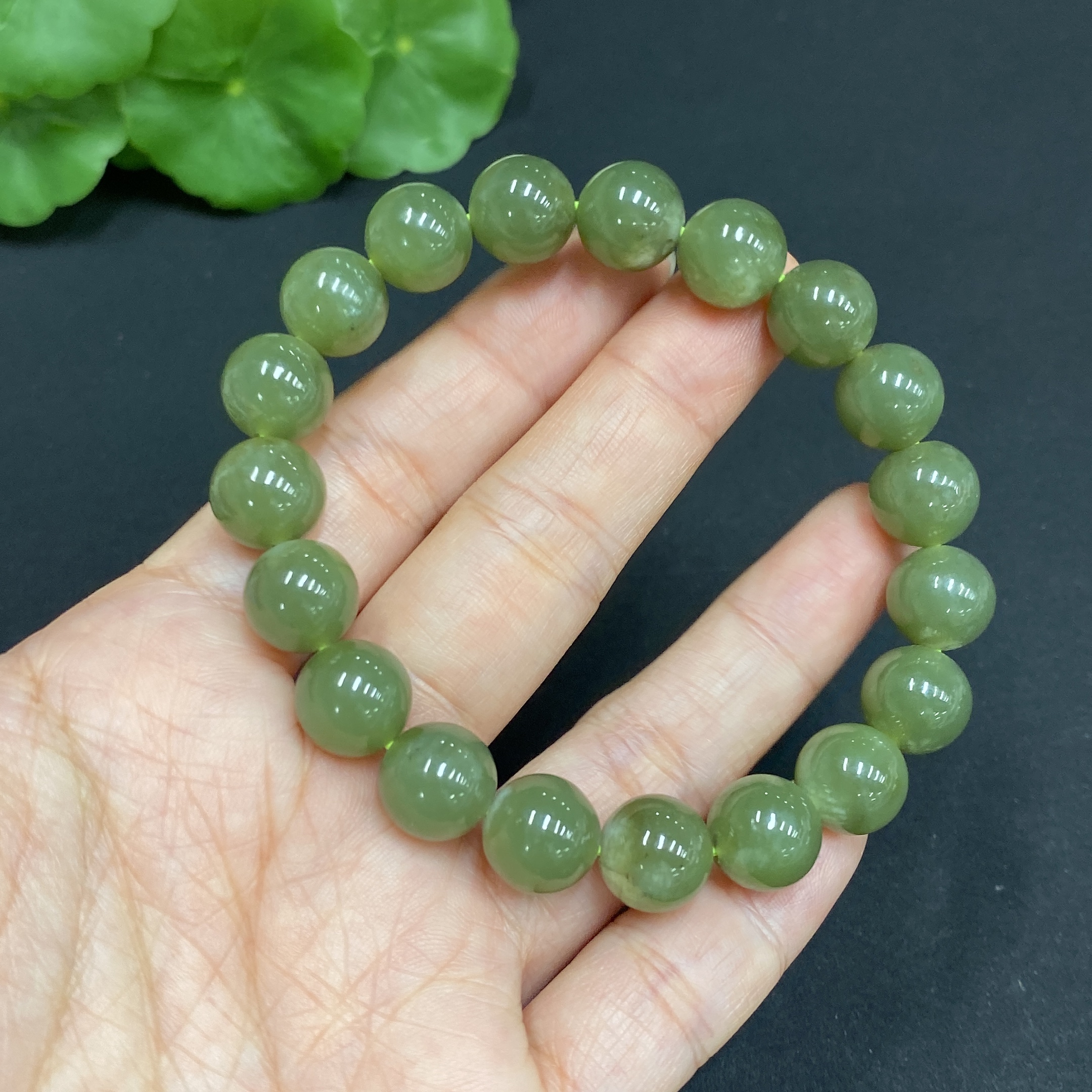 Hetian Jade Bracelet, Approx. 10mm Beads, Total Weight About 31.3g, Containing Other Mineral Components