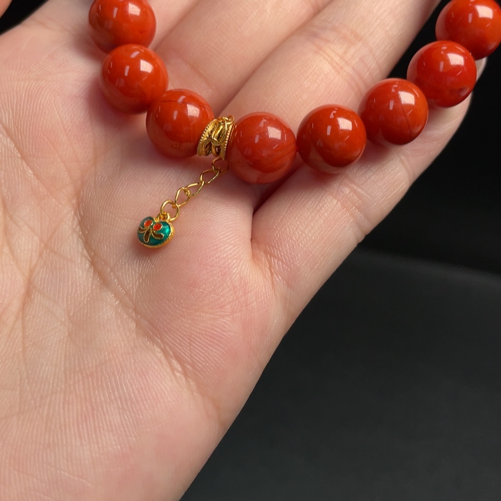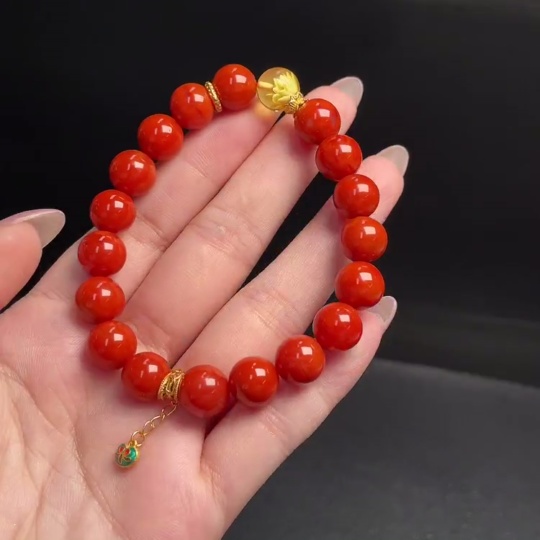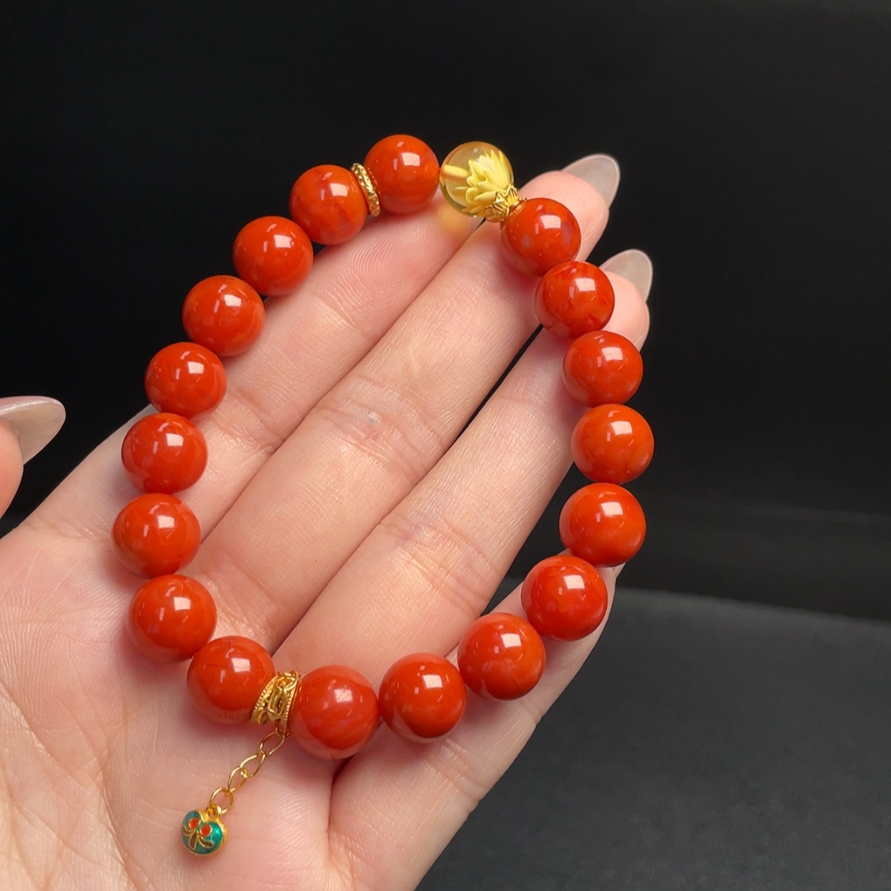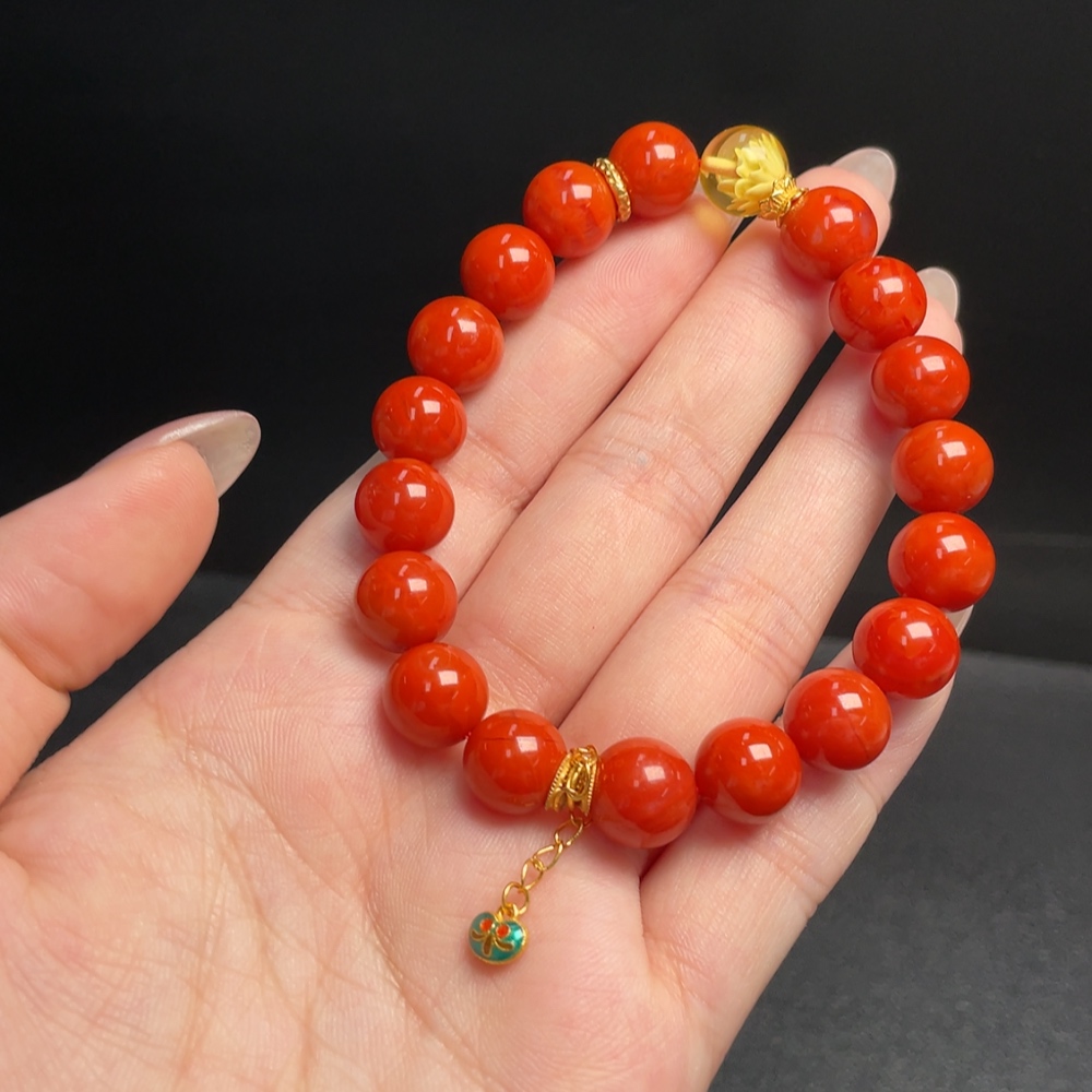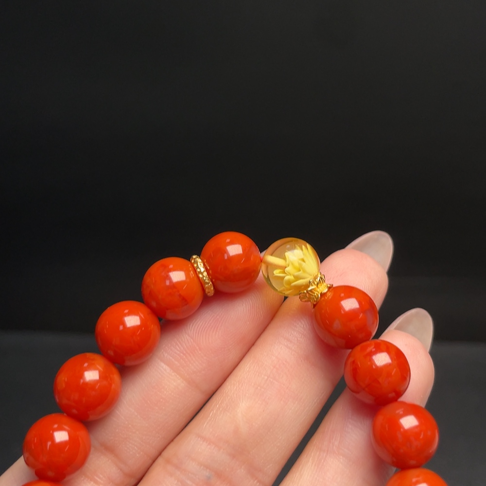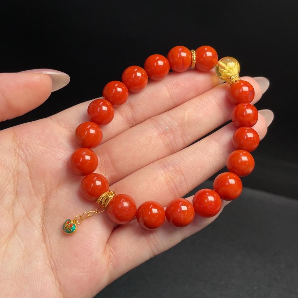 Red Agate Bracelet with Visible Organic Matter, Total Weight Approx. 27.74g, Size 9.8mm, Set with Amber, Non-Gold