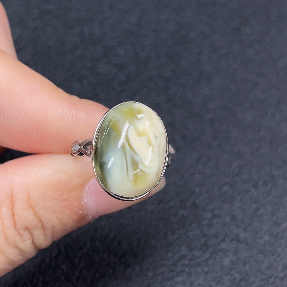 Amber Beeswax Ring Non-Gold Adjustable Total Weight Approx. 2.45g Size 16.1*11.8mm