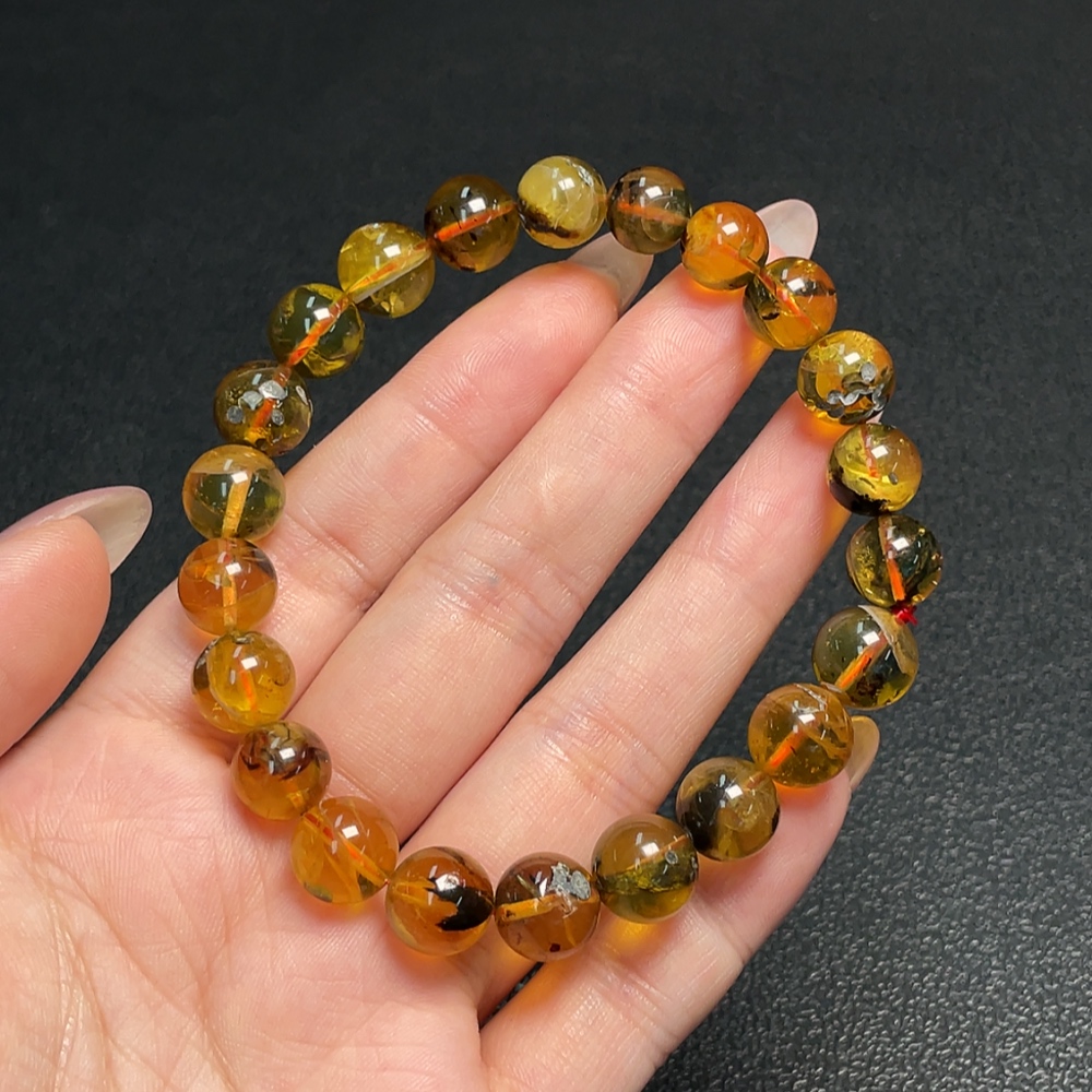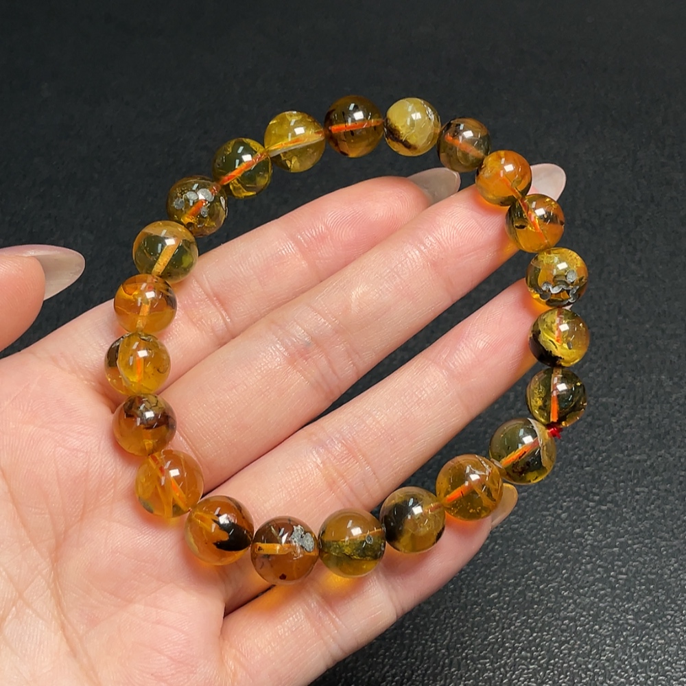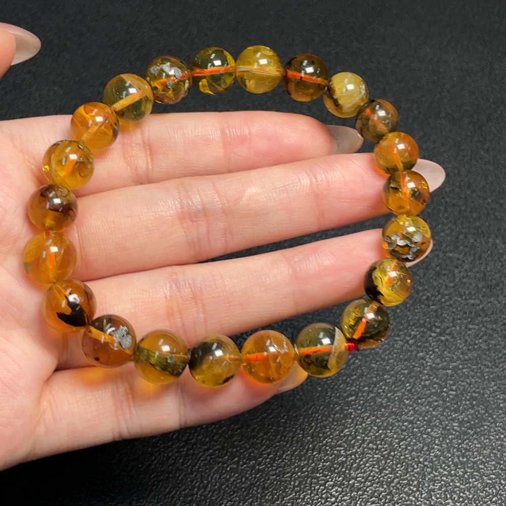 Amber Beeswax Bracelet, Total Weight Approx. 11.78g, Size About 9.9mm