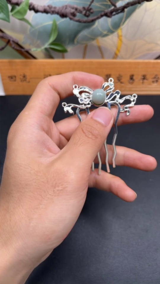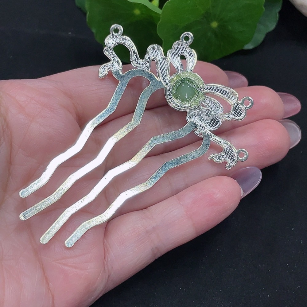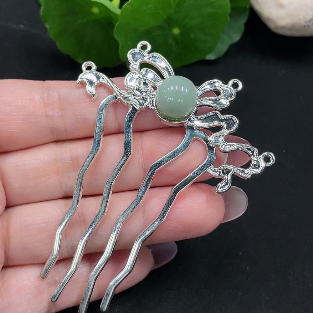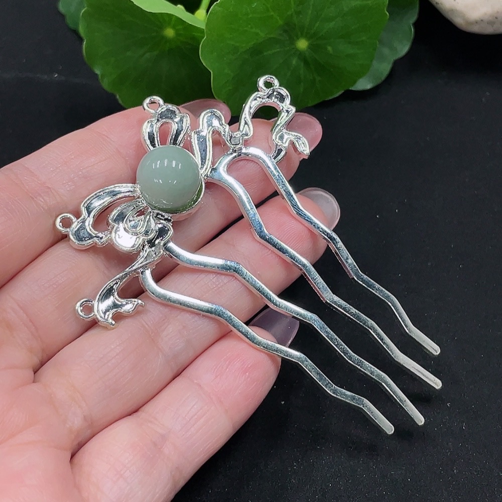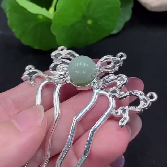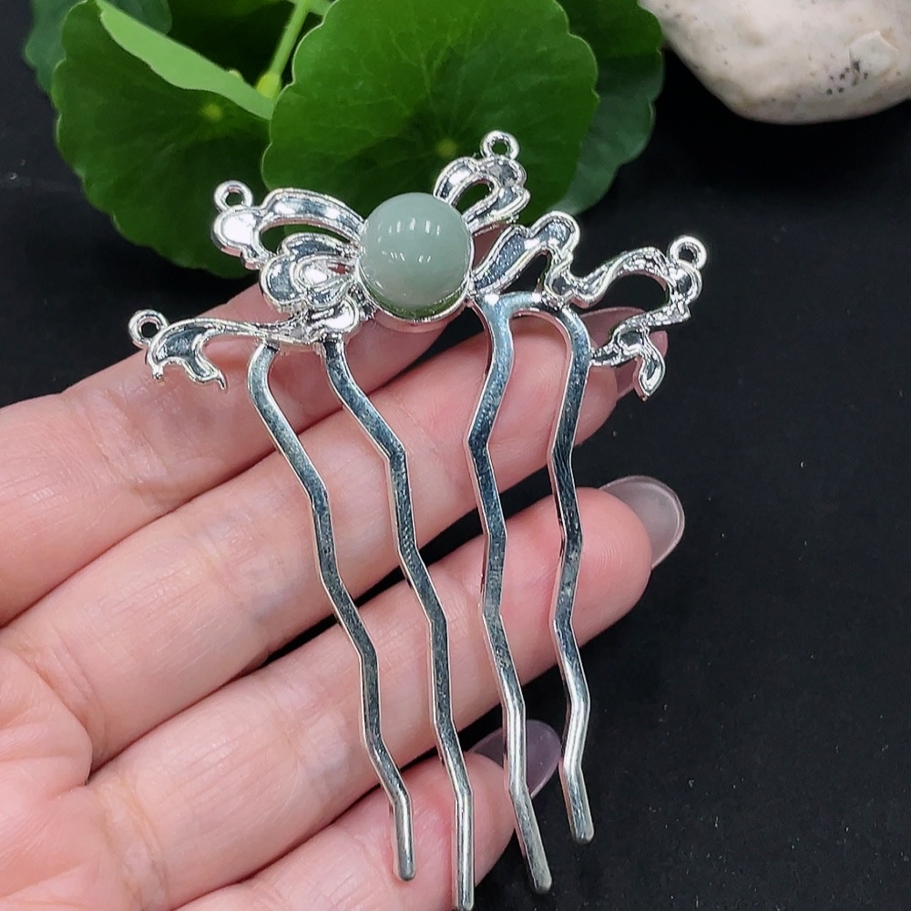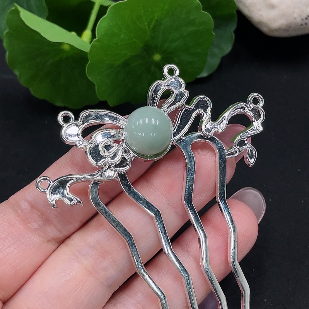 Jadeite Hairpin with Inlay, Total Weight Approx. 9.4g (Non-Gold Inlay)