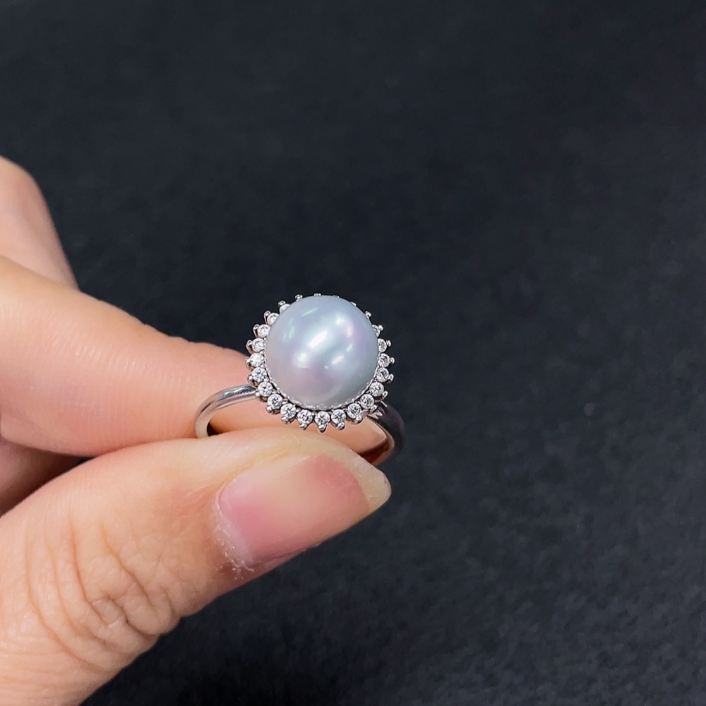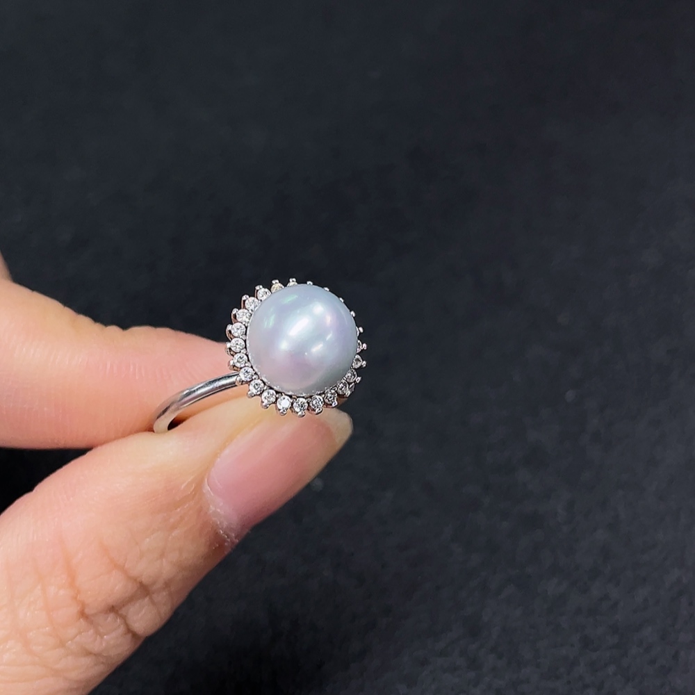 Seawater Pearl Ring (Adjustable, Non-Gold, Total Weight Approx. 3.26g, Size 9.3mm, Color Origin Undetermined)