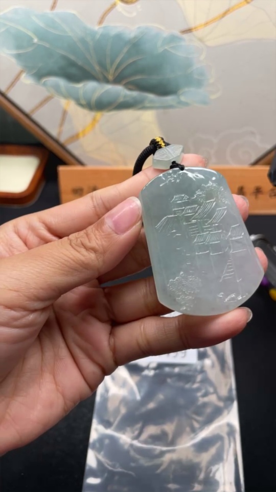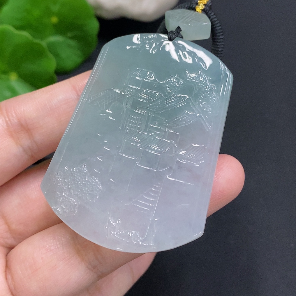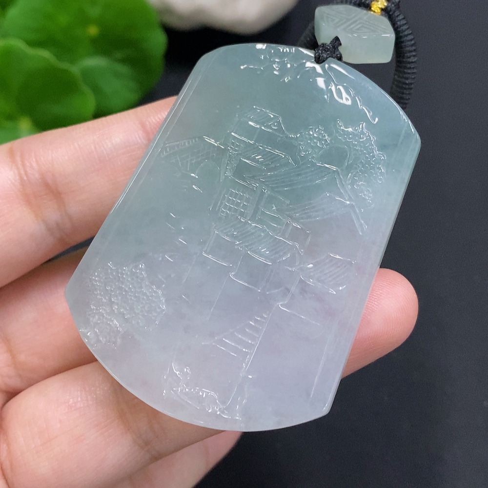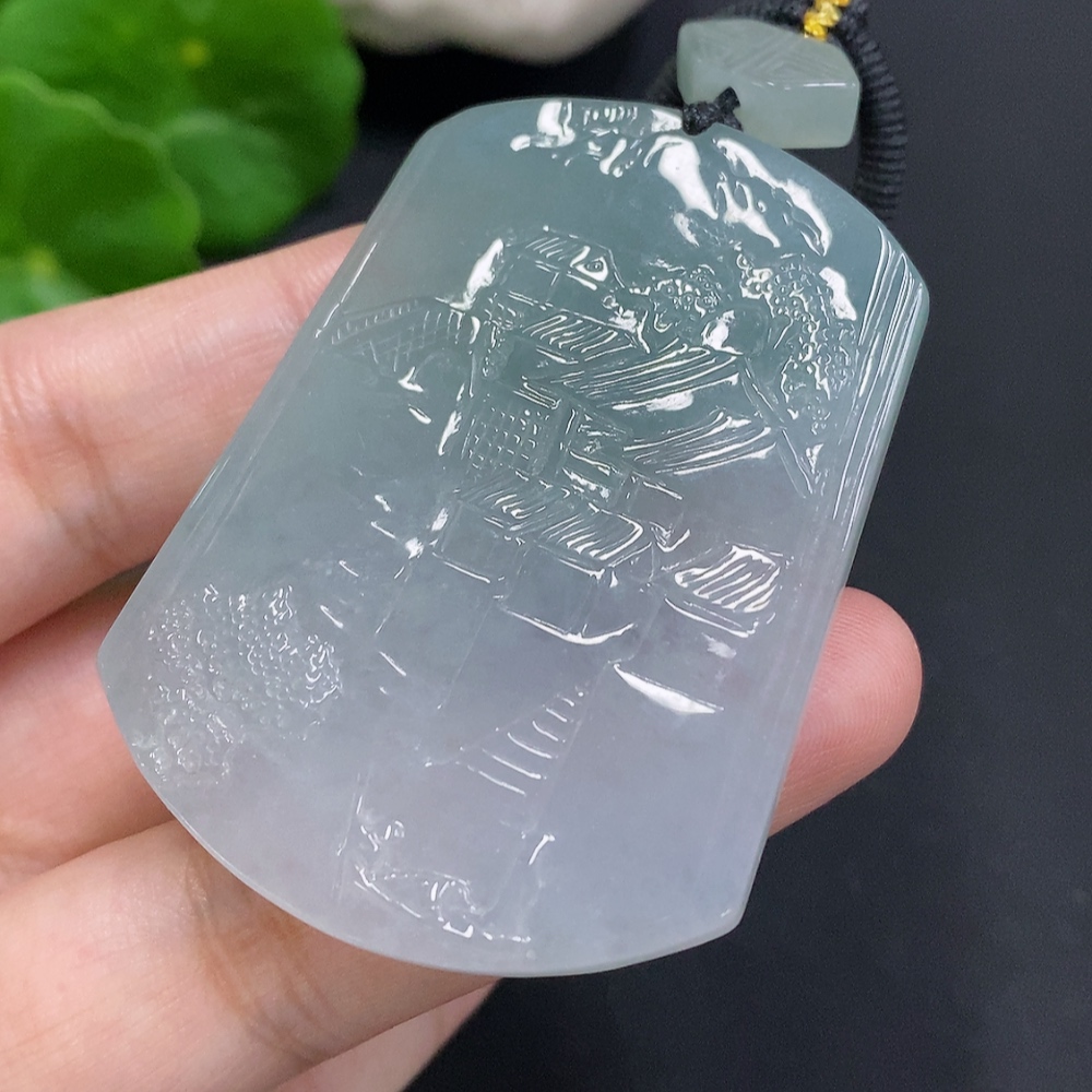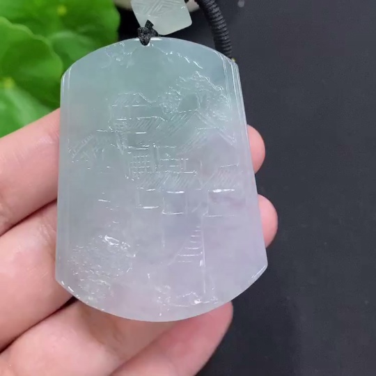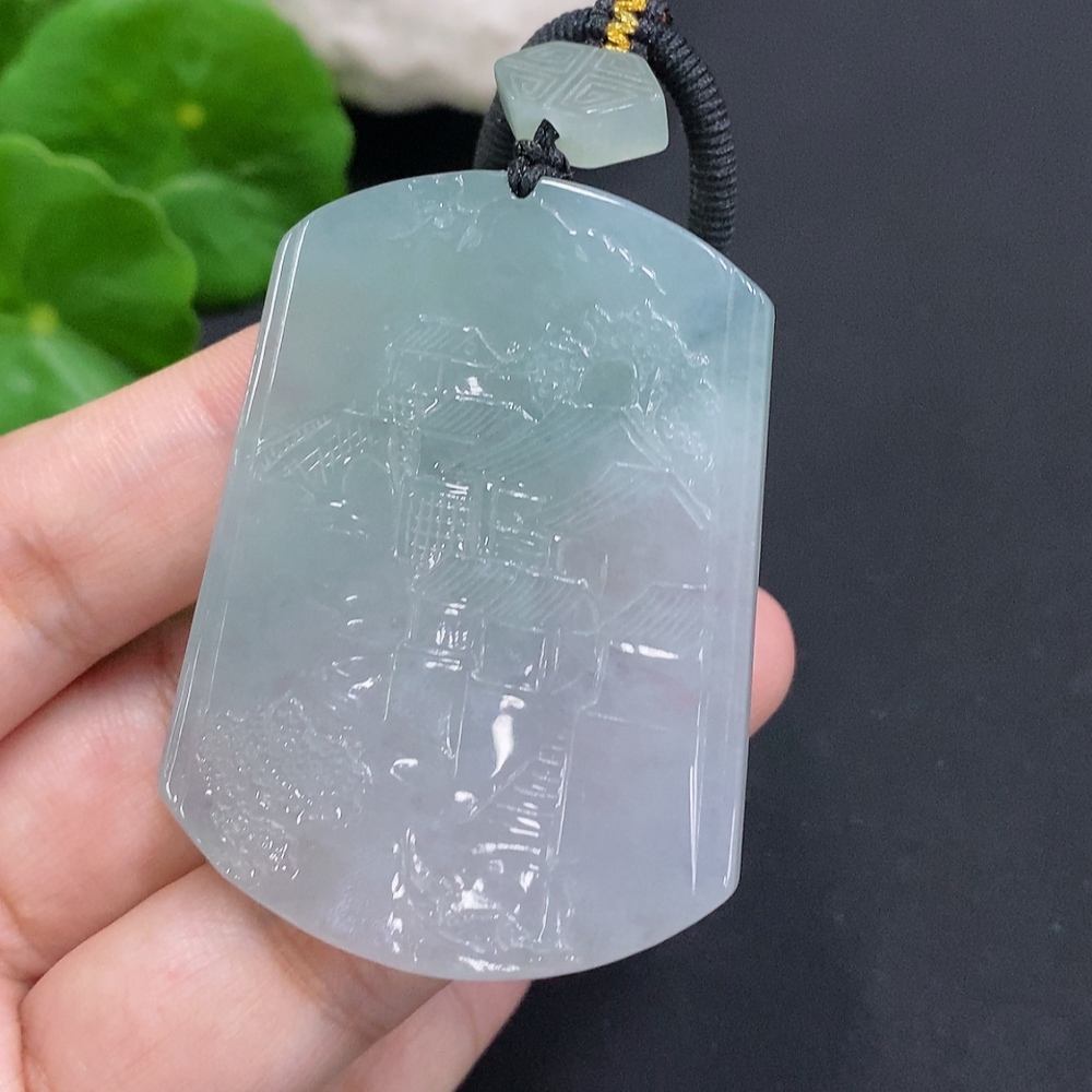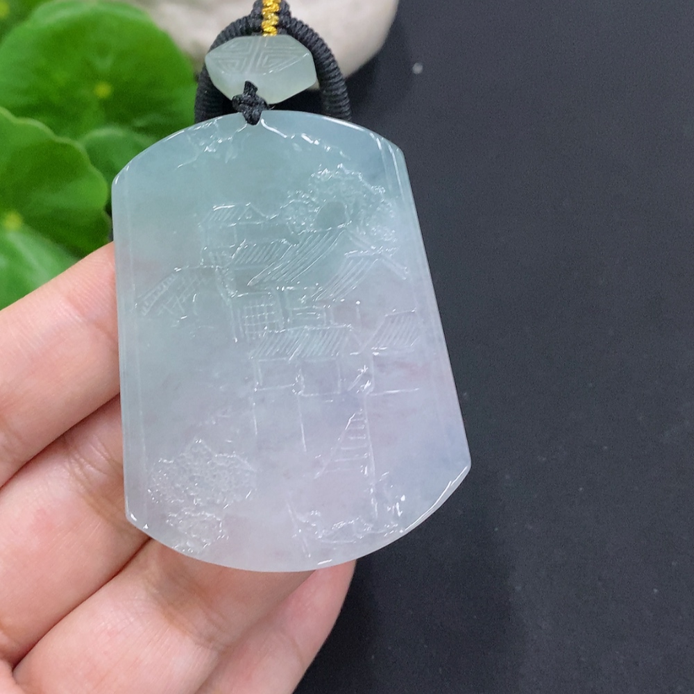 Jadeite Landscape Pendant with Cord, Total Weight Approx. 35.7g