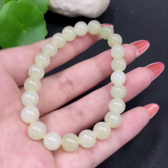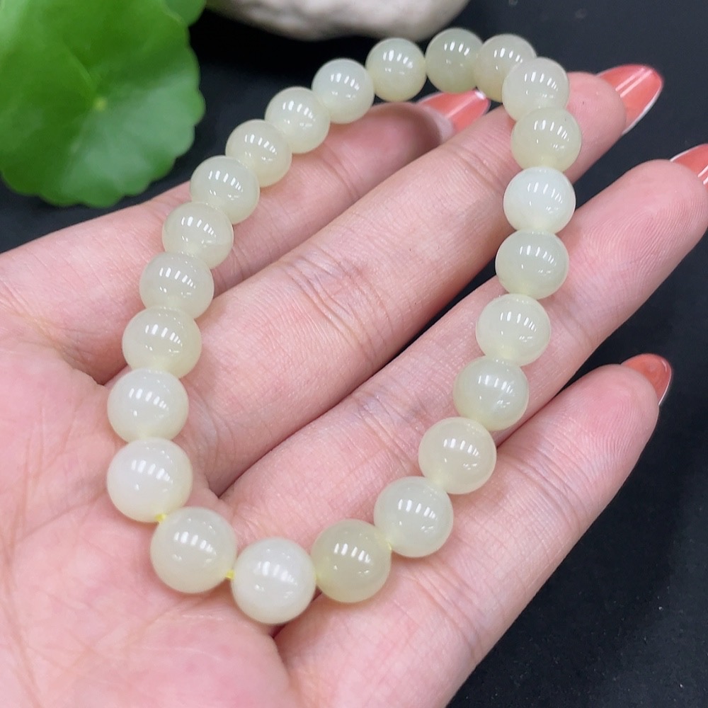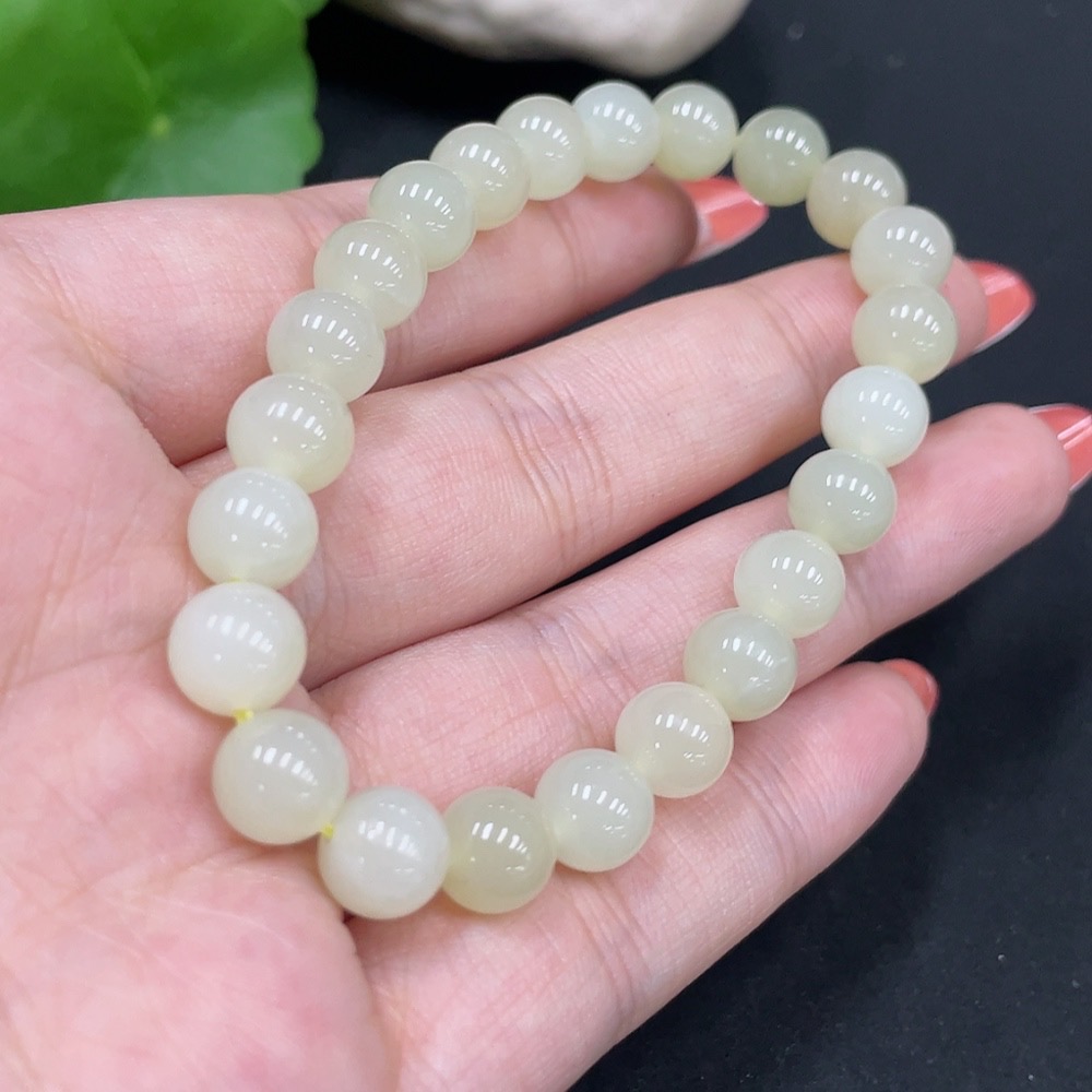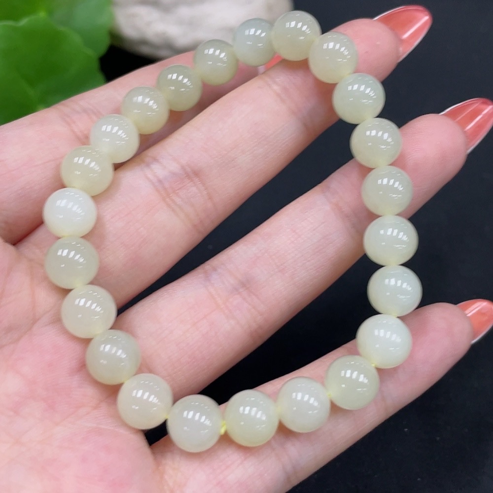 Hetian Jade Bracelet Approx.8mm Total Weight Approx.18.4g
