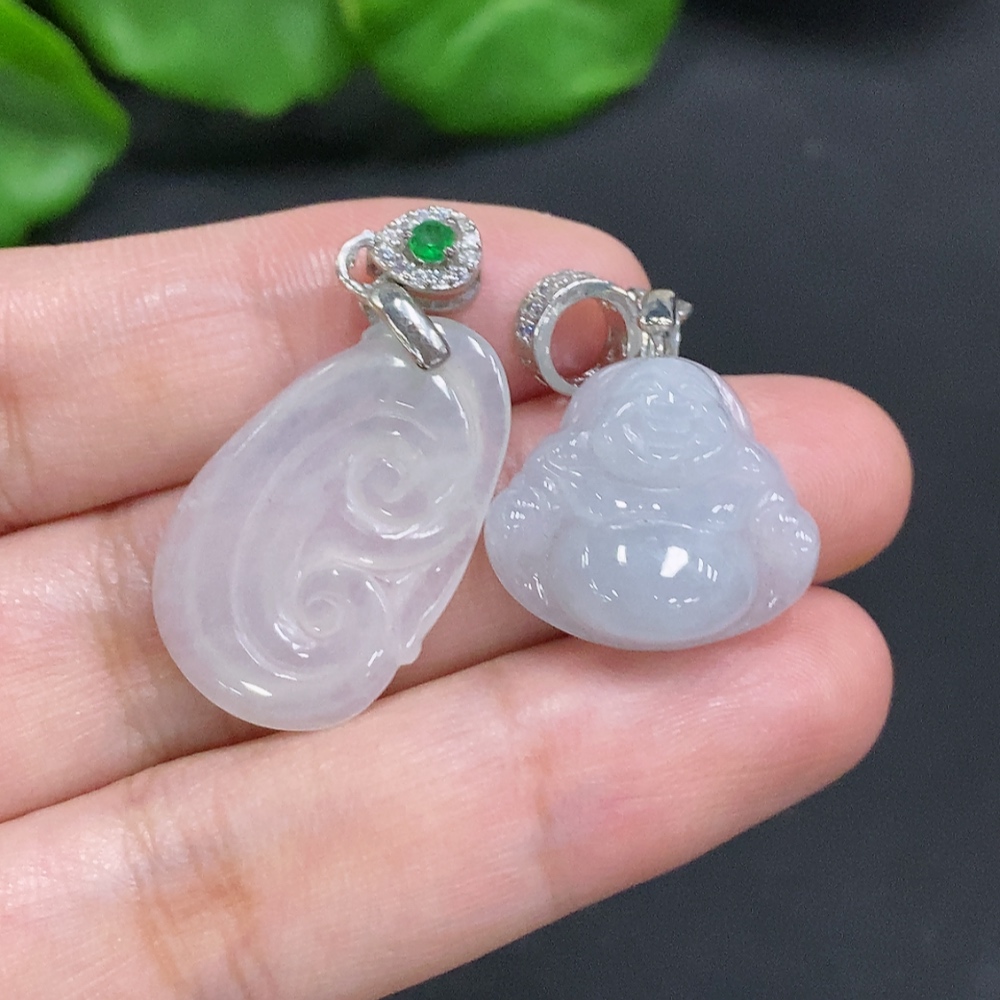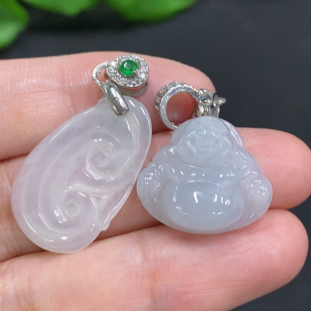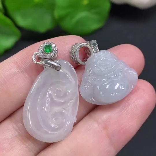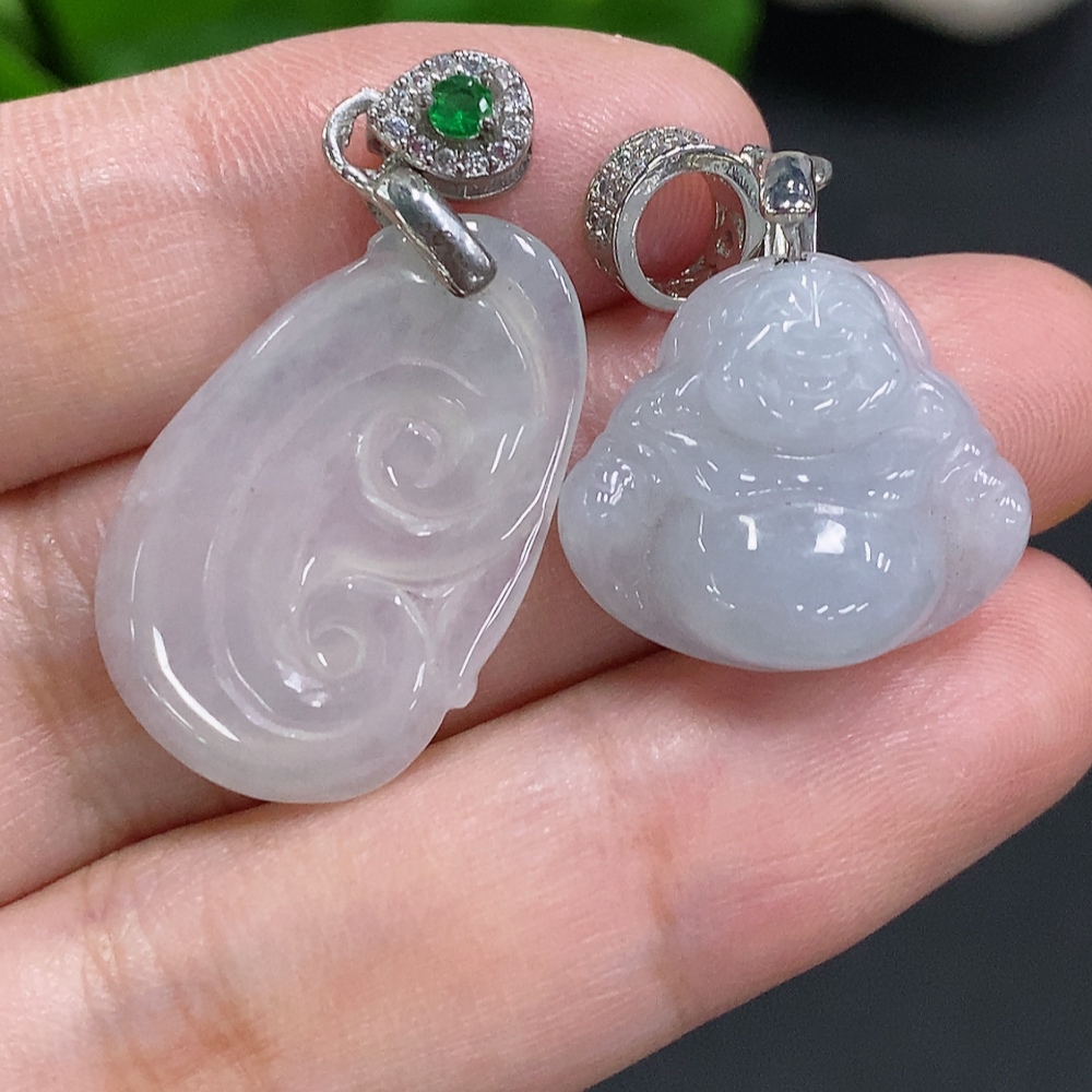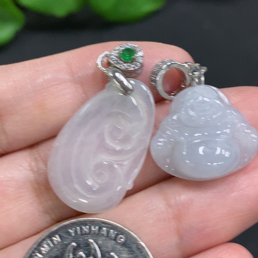 Jadeite Pendants Sell as a Lot Non-Gold Inlaid