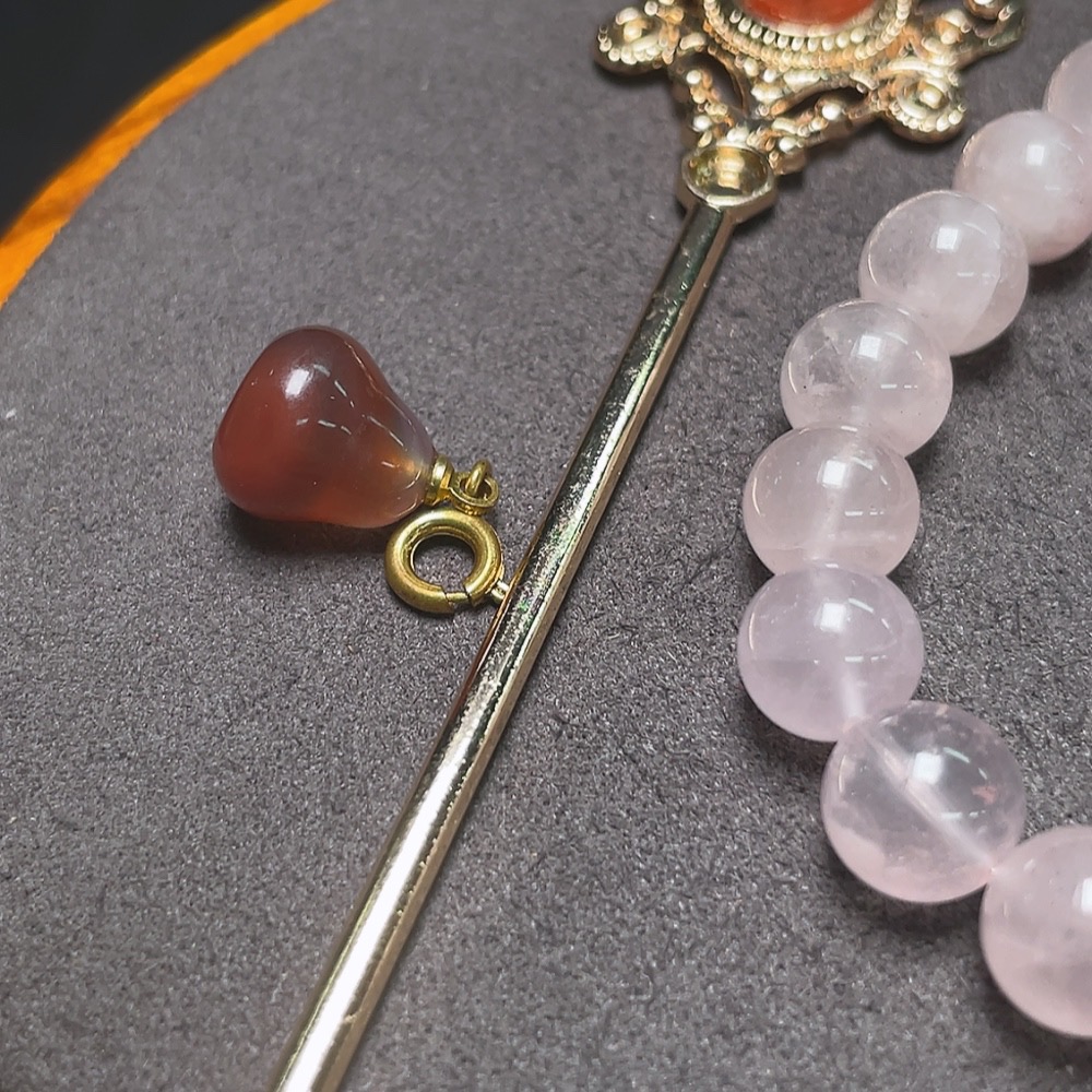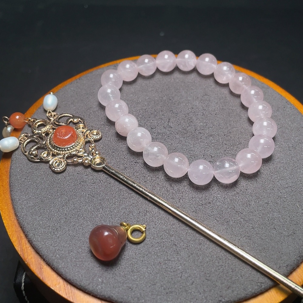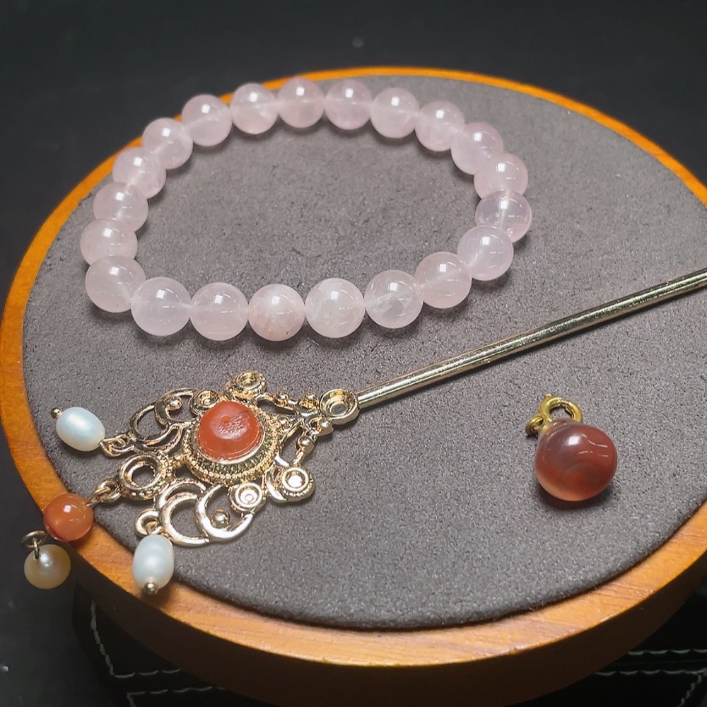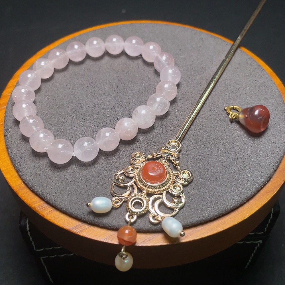 Crystal Bracelet + Southern Red Agate Pendant + Hairpin with Pearl Hair Clip