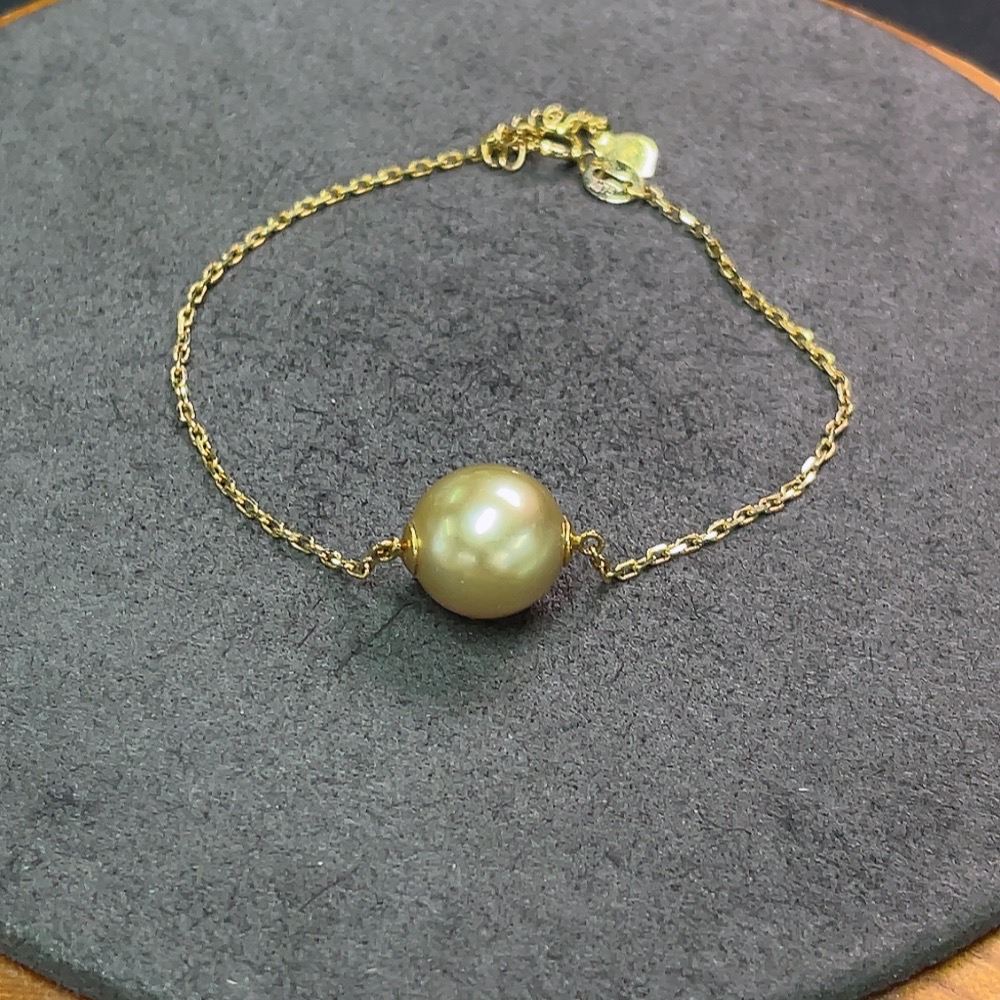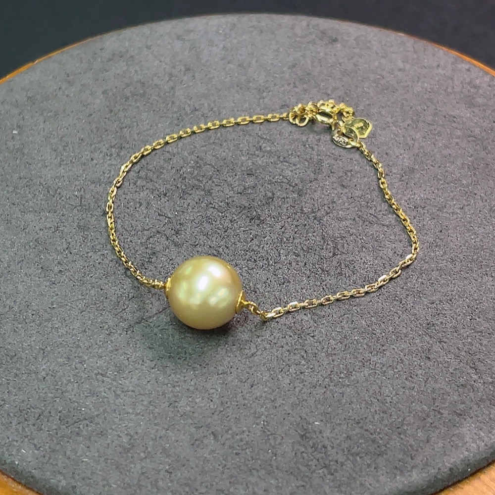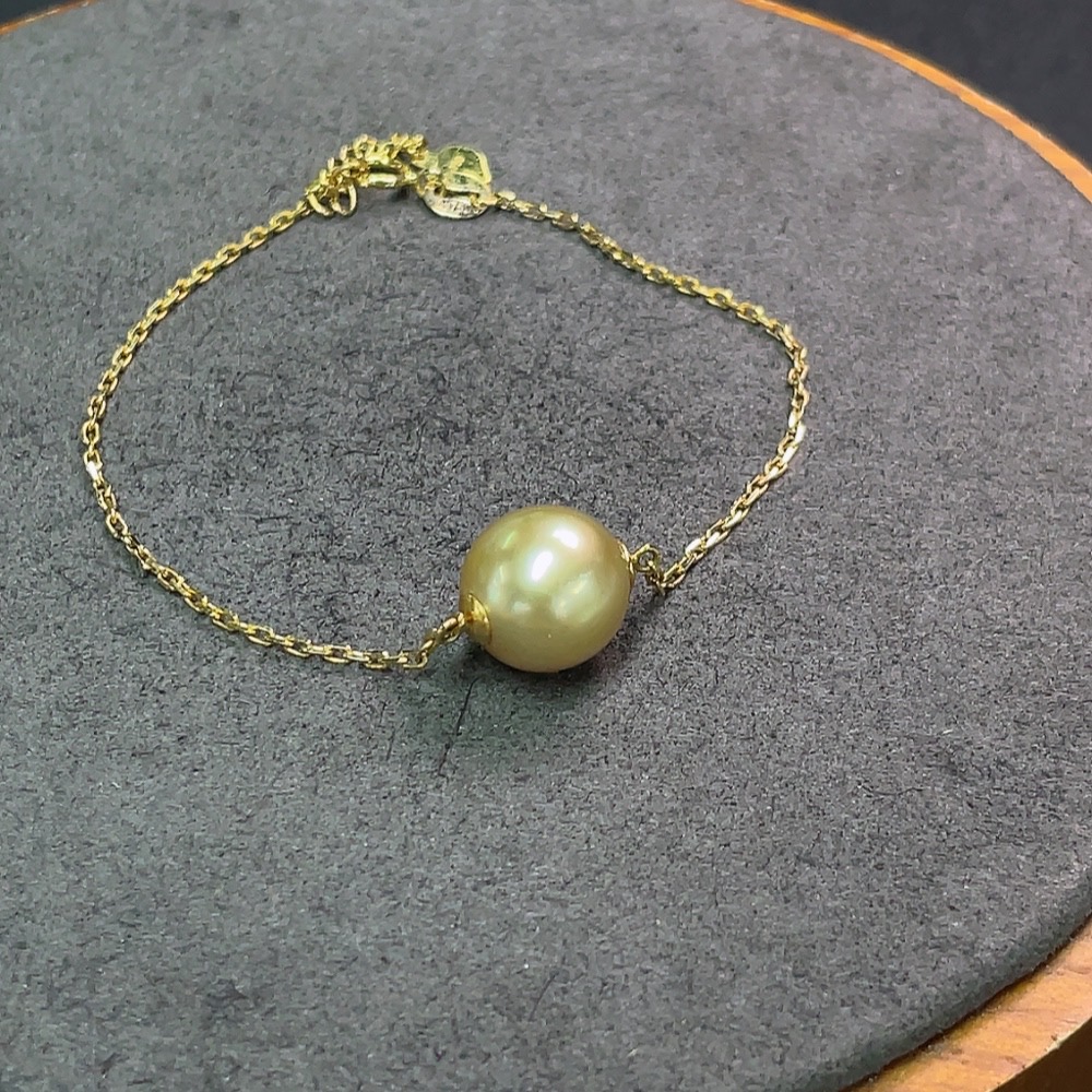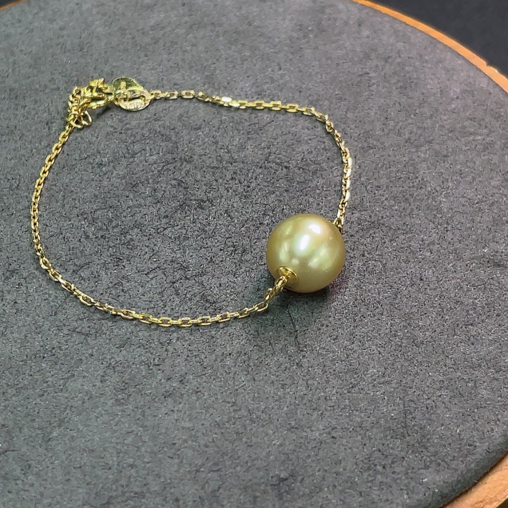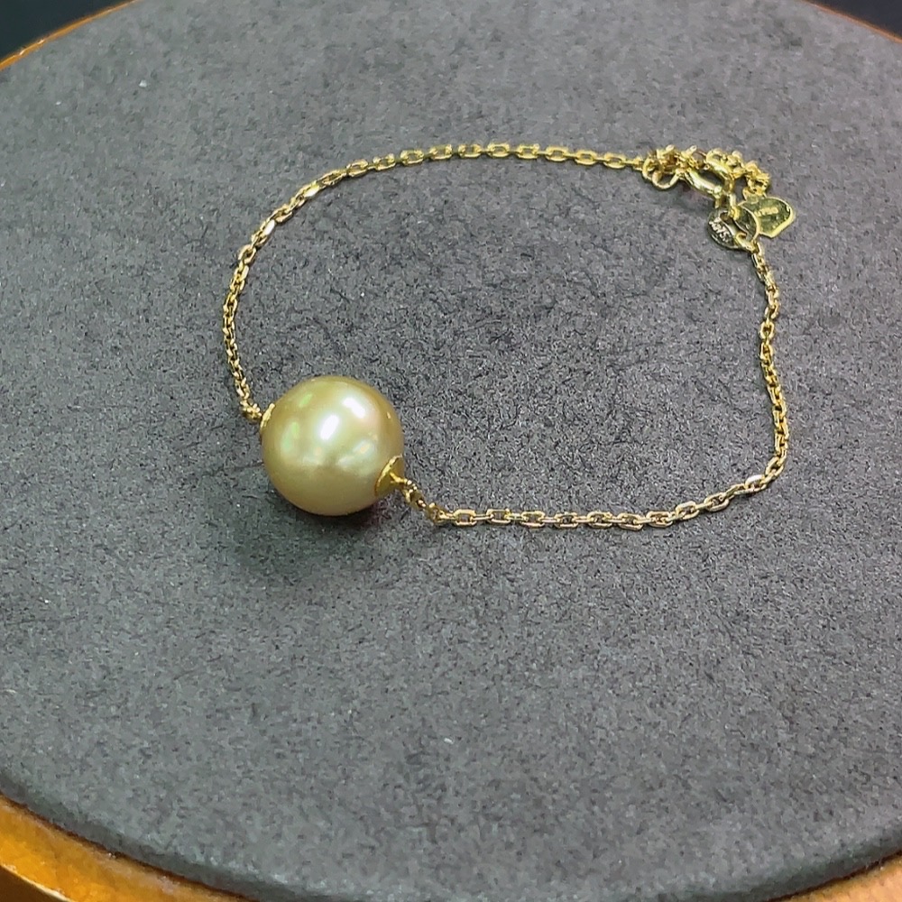 18K Saltwater Pearl Bracelet, Color Origin Undetermined, Total Weight Approximately 2.92g, Size About 10.1mm