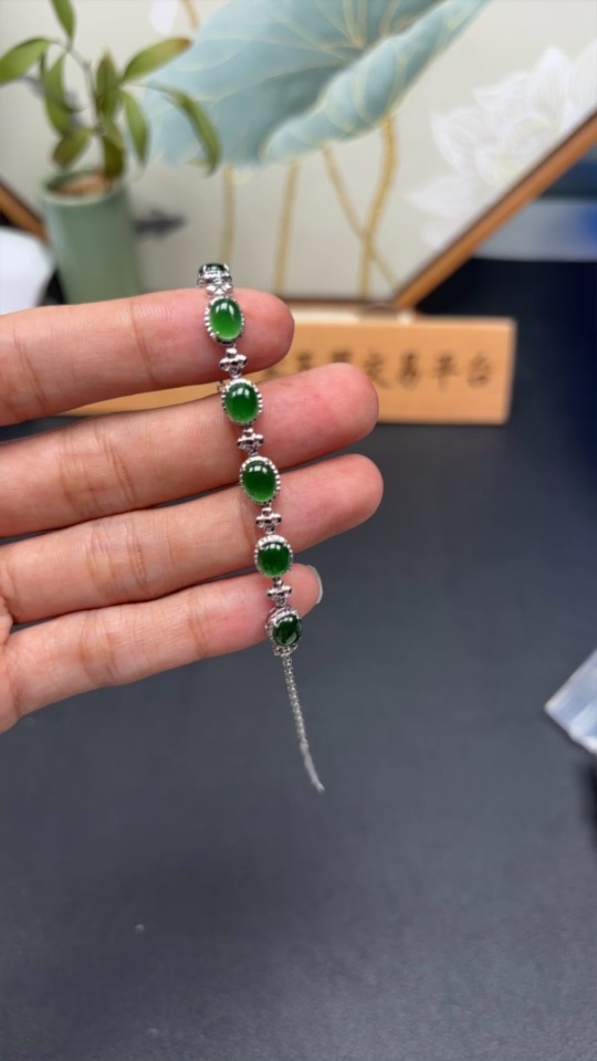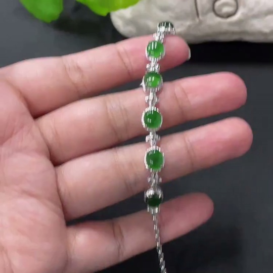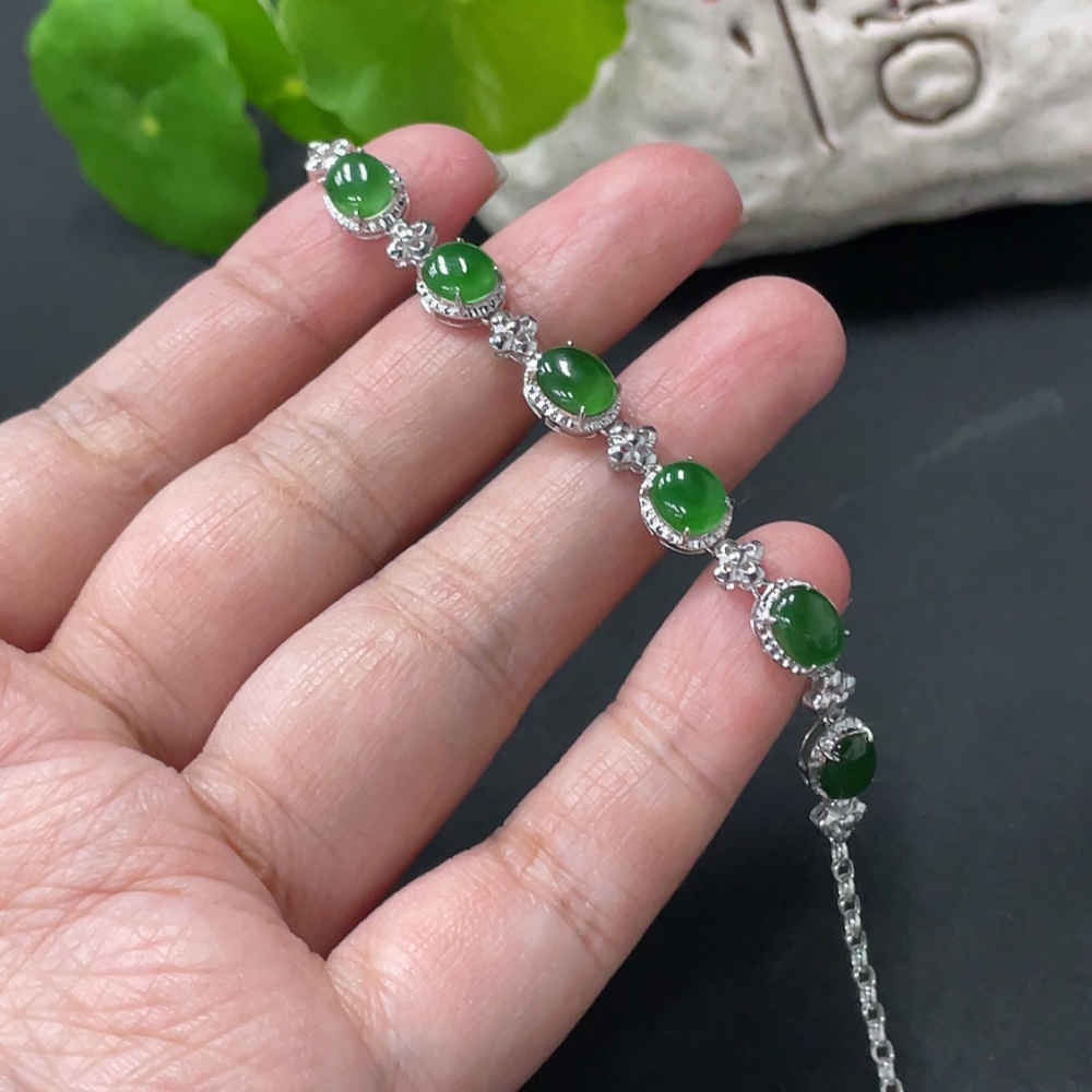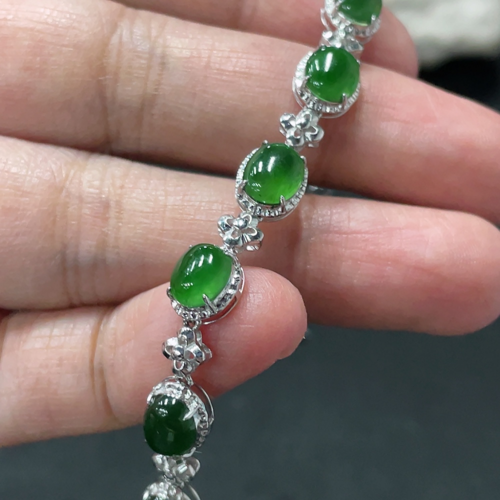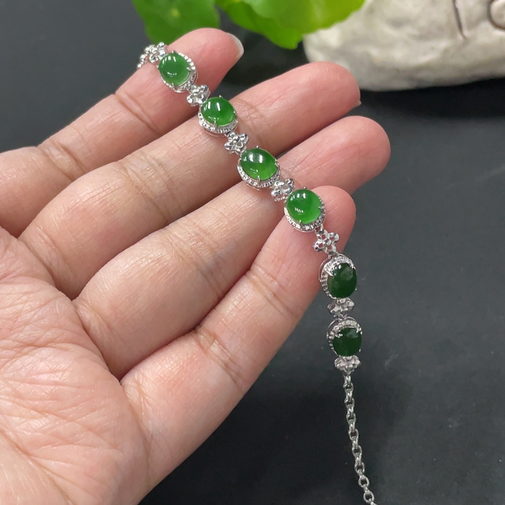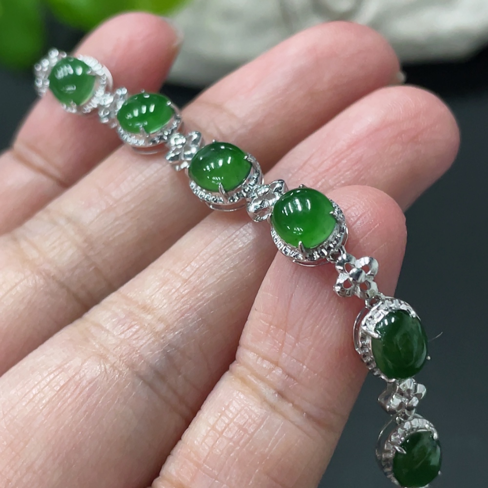 Jadeite Cabochon Inlaid Bracelet, No Hallmark, Surface Gold Content Au Approx 75%, Total Weight Approx 4.94g