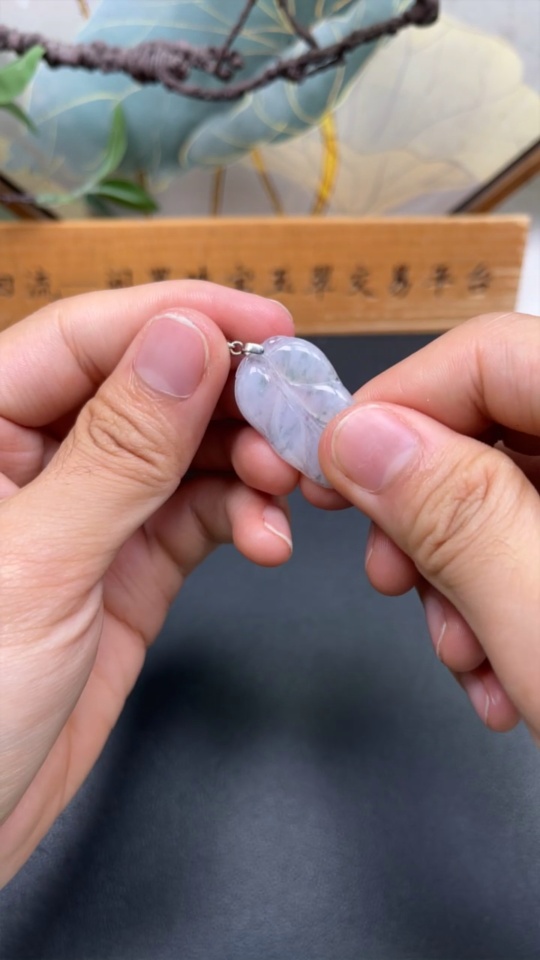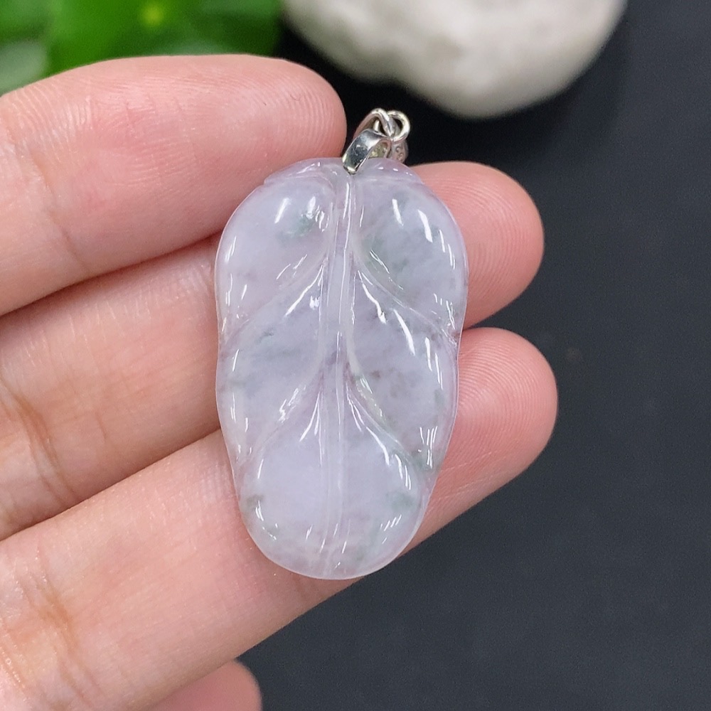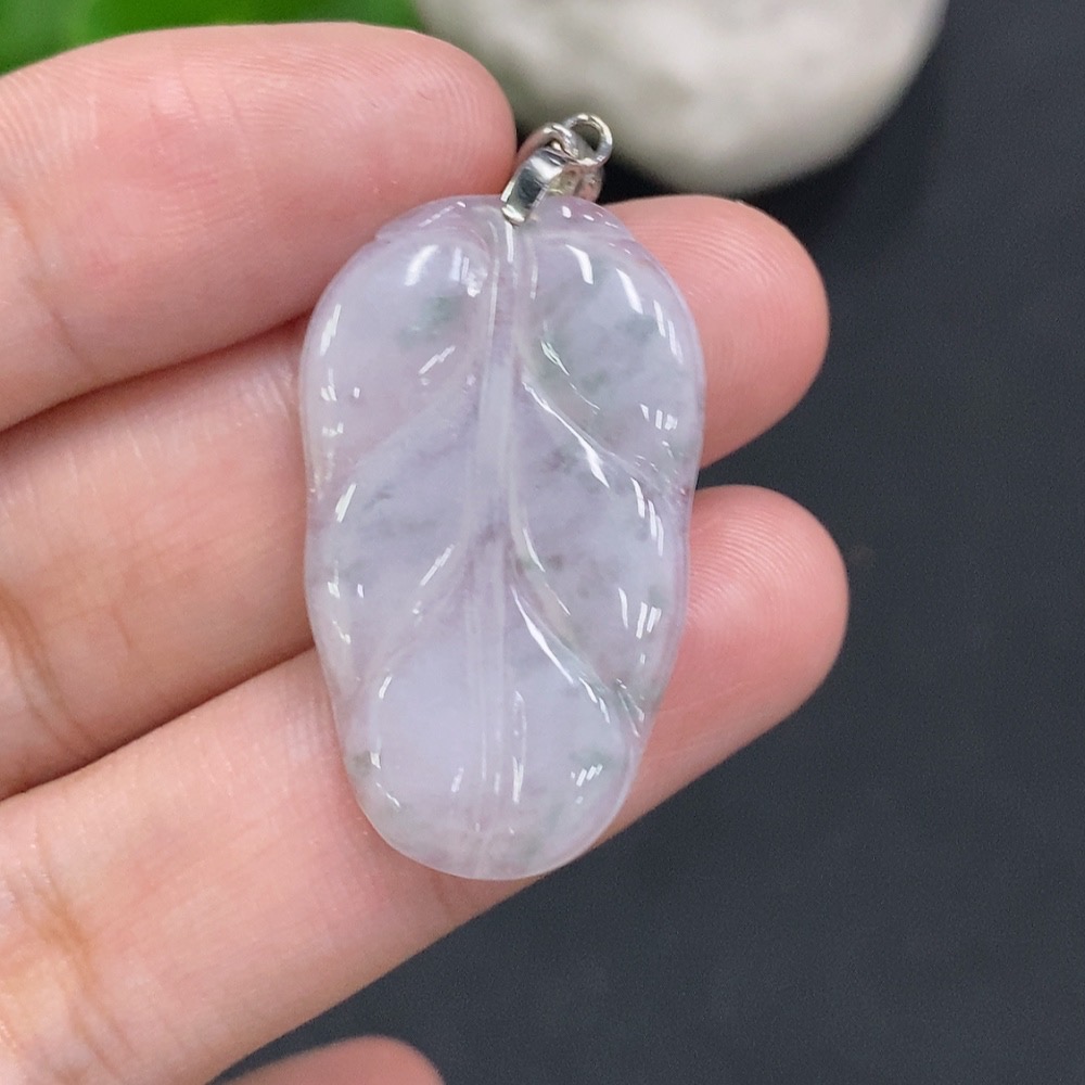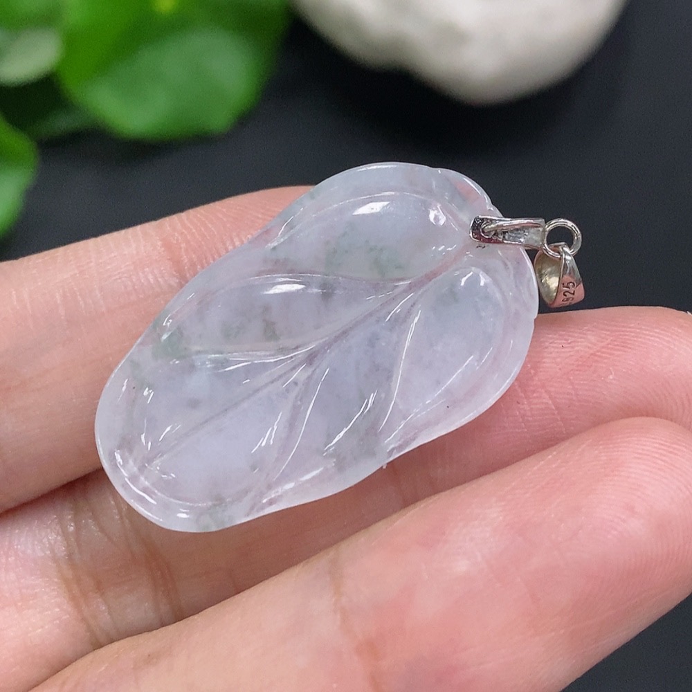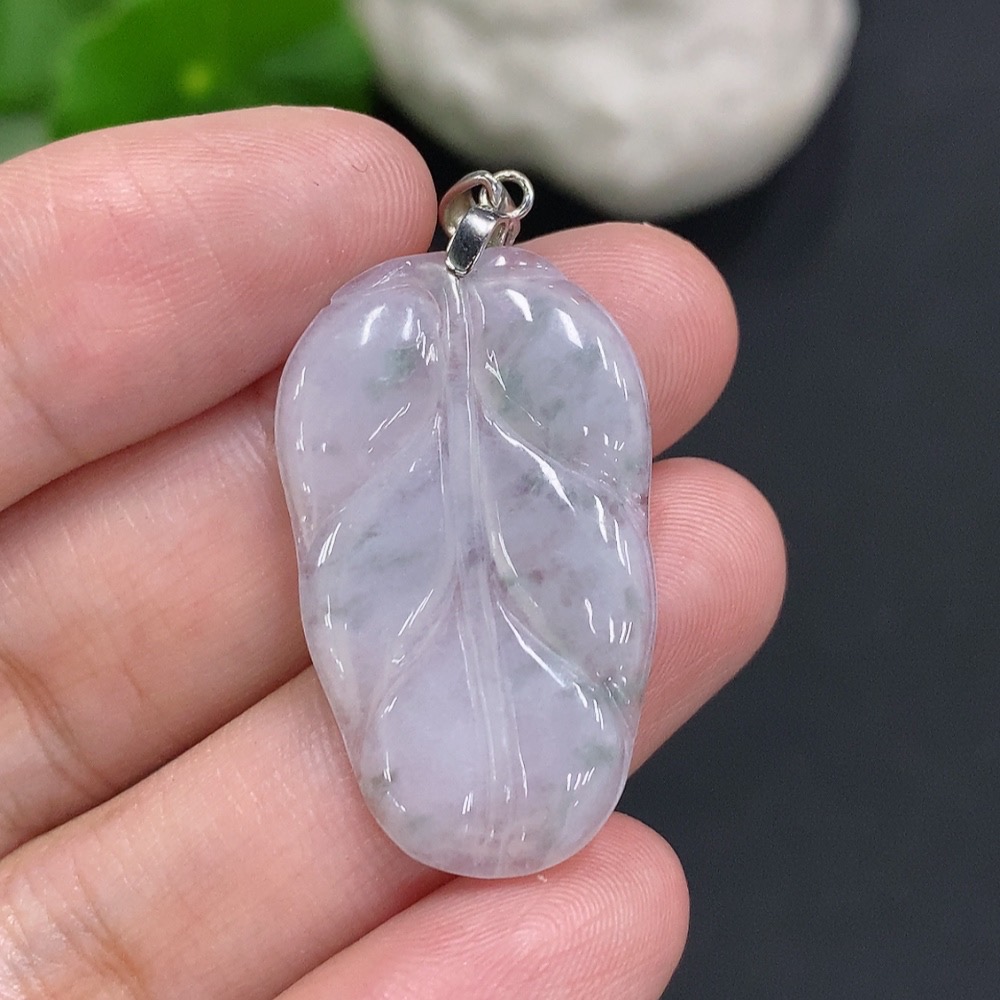 Jadeite Leaf Pendant Non-Gold Inlaid Total Weight Approx. 3g
