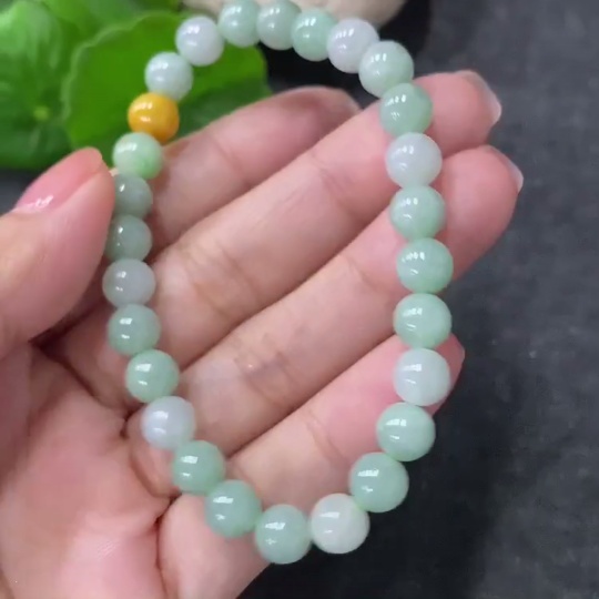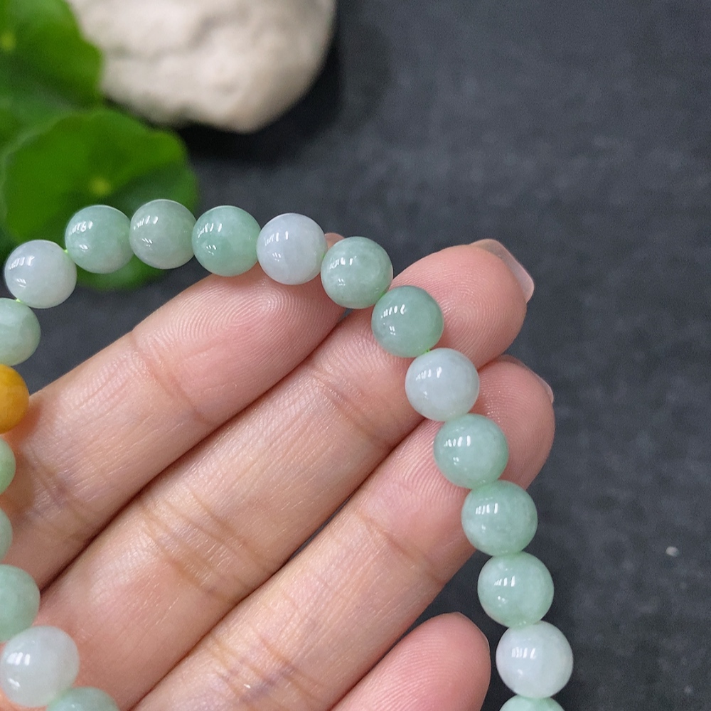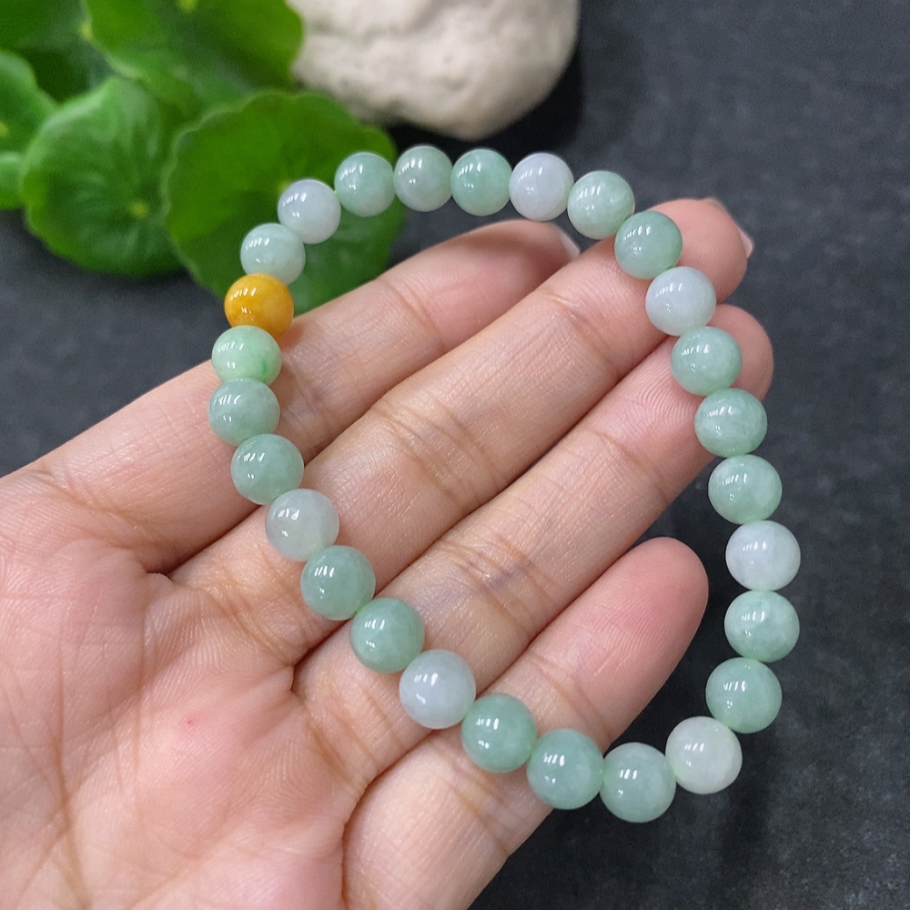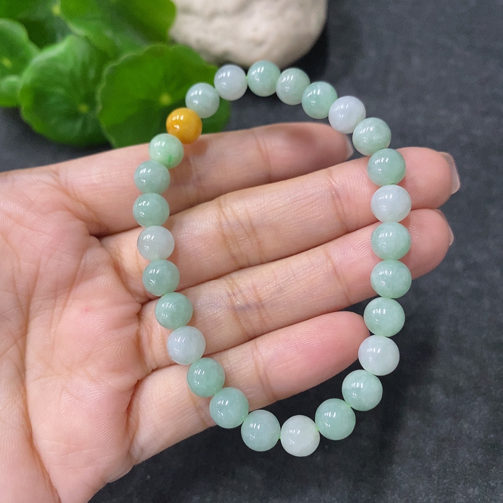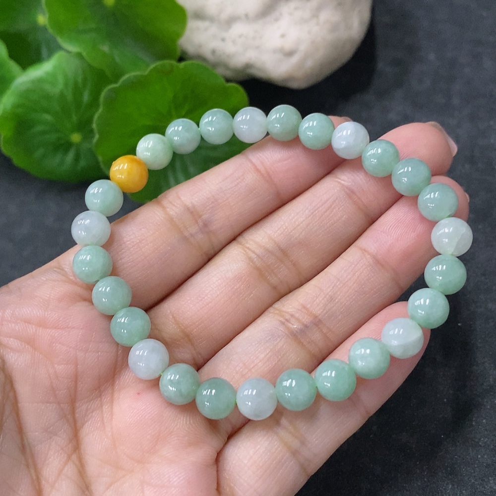 Jadeite Bracelet Approx. 6.8mm Beads Total Weight Approx. 13.7g Yellow Part Color Origin Undetermined