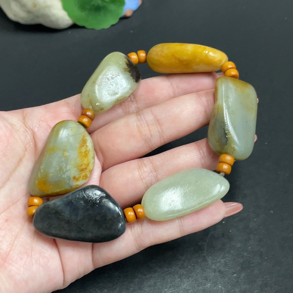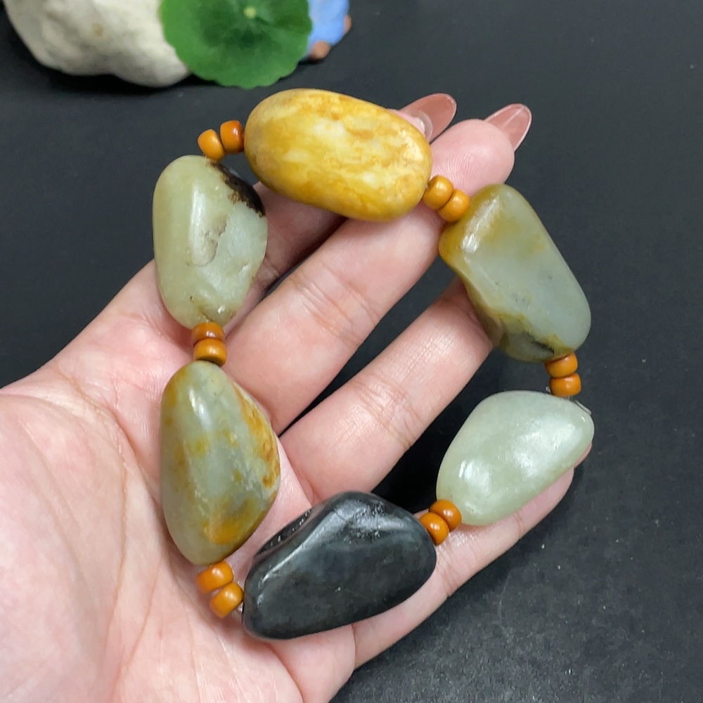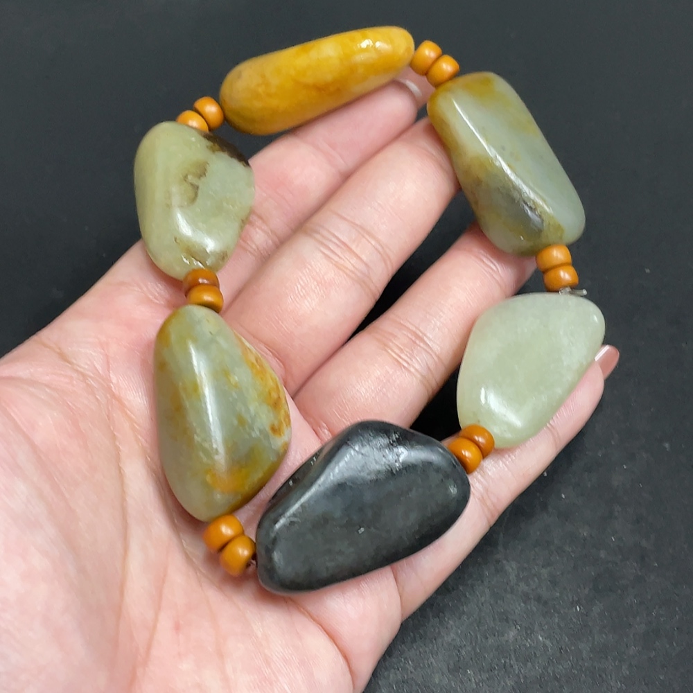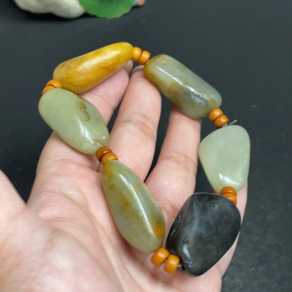 Hetian Jade Bracelet, Undetermined Skin Color Origin, Beads Not Hetian Jade, With Impurities, Total Weight Approx. 104.5g