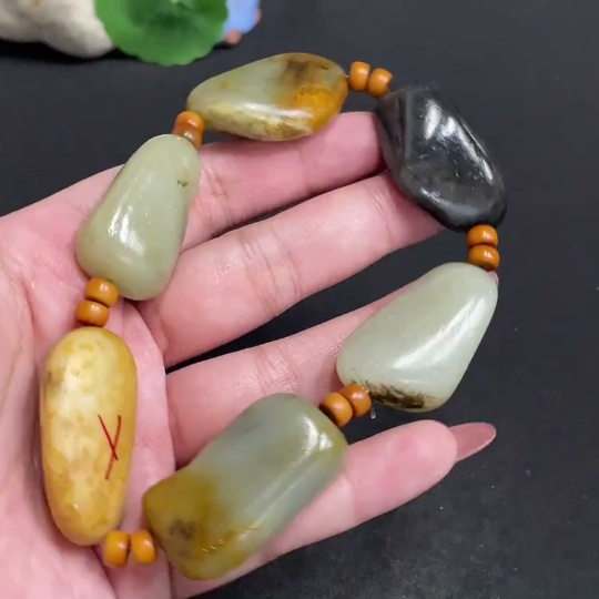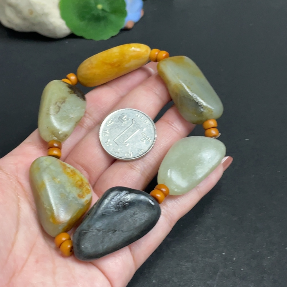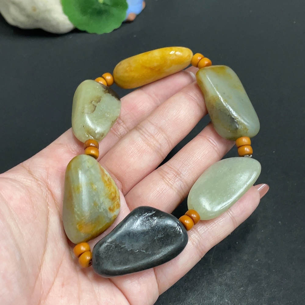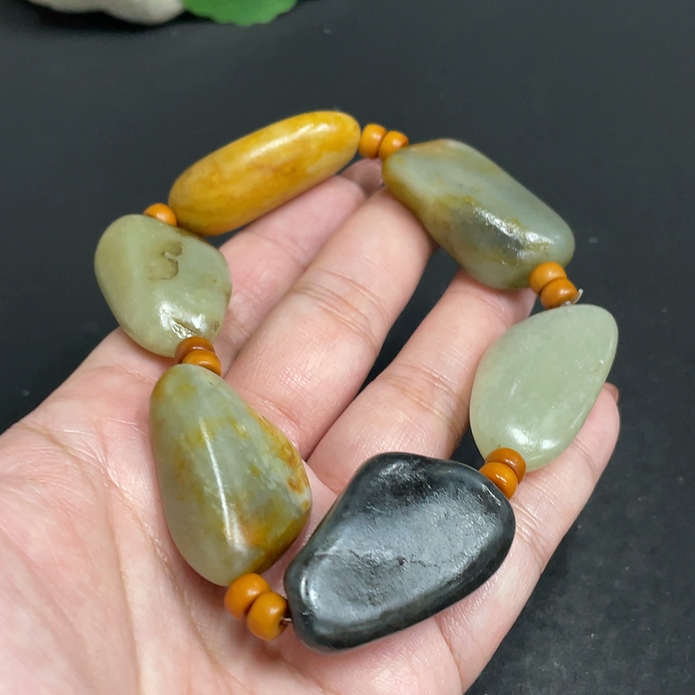 Hetian Jade Bracelet, Undetermined Skin Color Origin, Beads Not Hetian Jade, With Impurities, Total Weight Approx. 104.5g