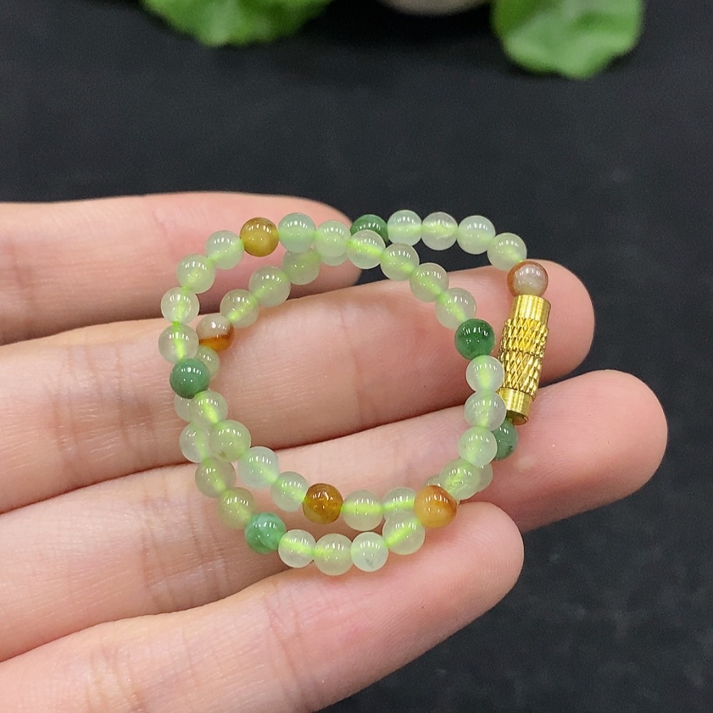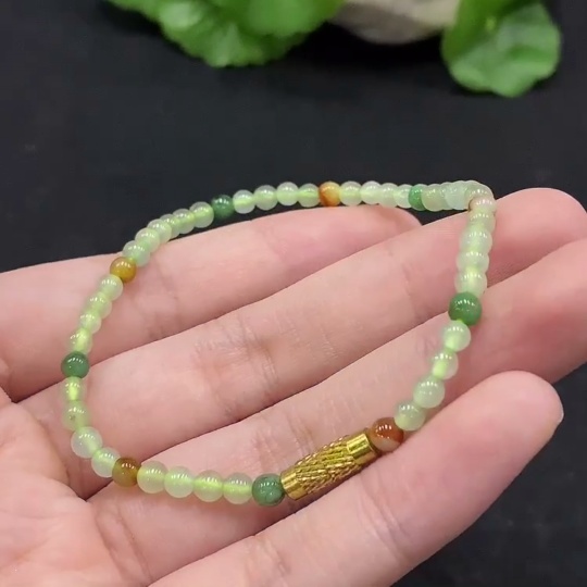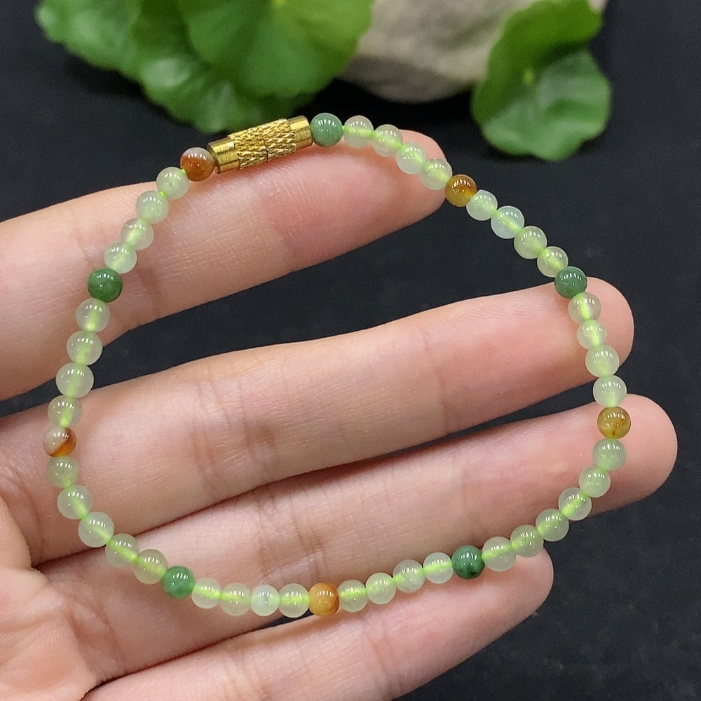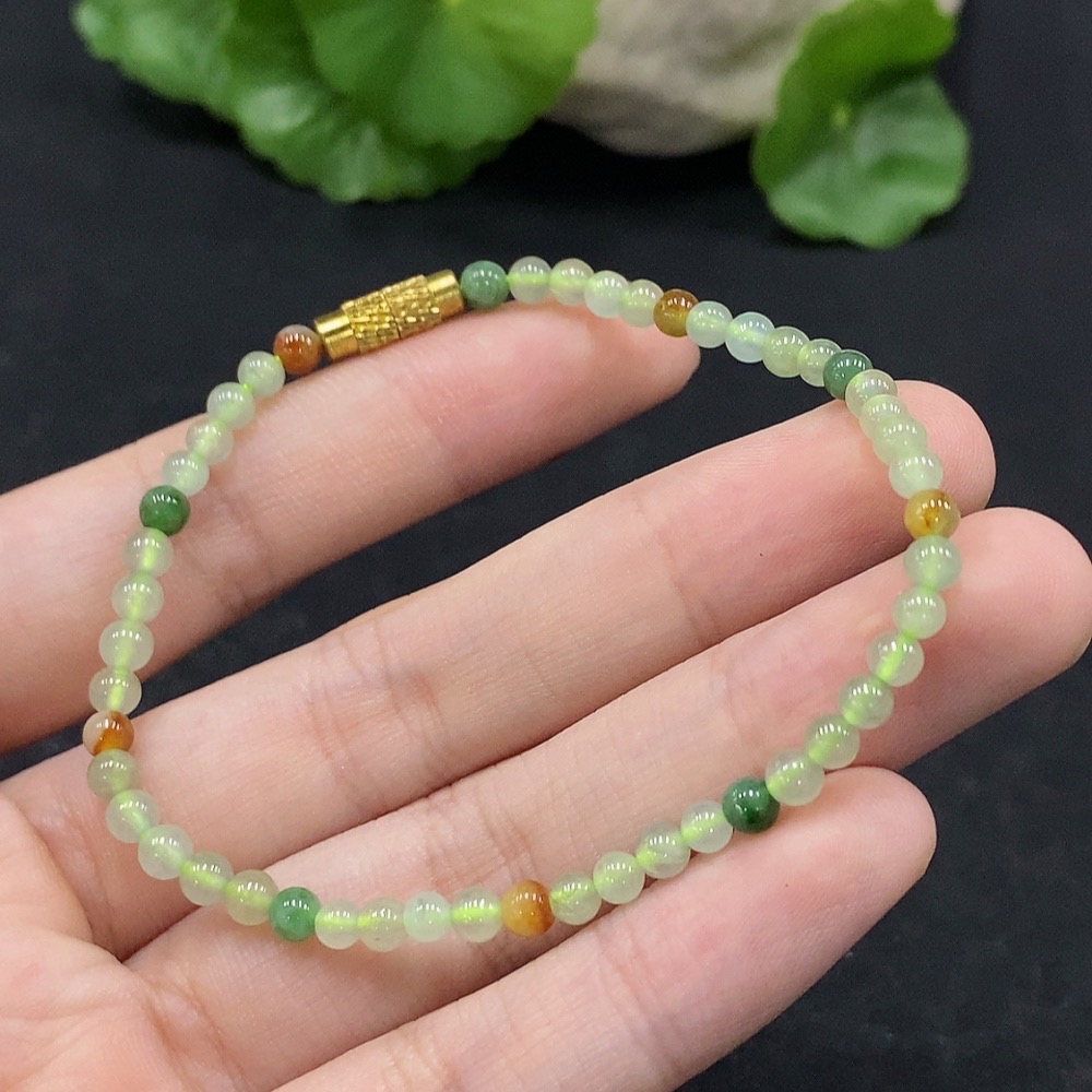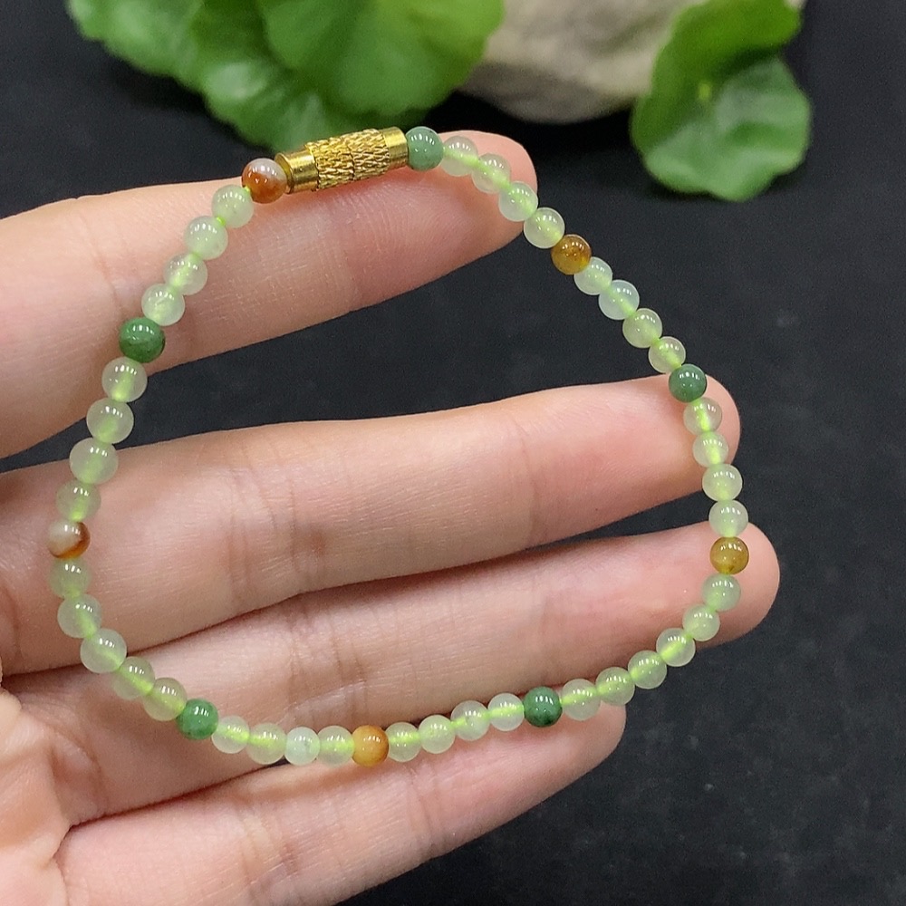Jadeite Bracelet Approx. 4mm Beads Total Weight Approx. 4.83g Non-Gold Yellow Part Color Origin Undetermined