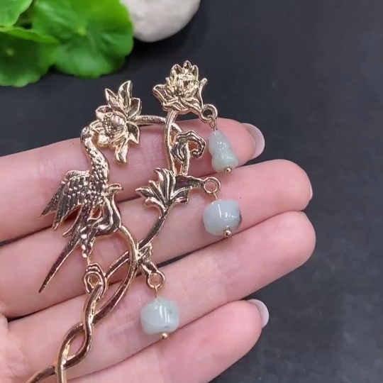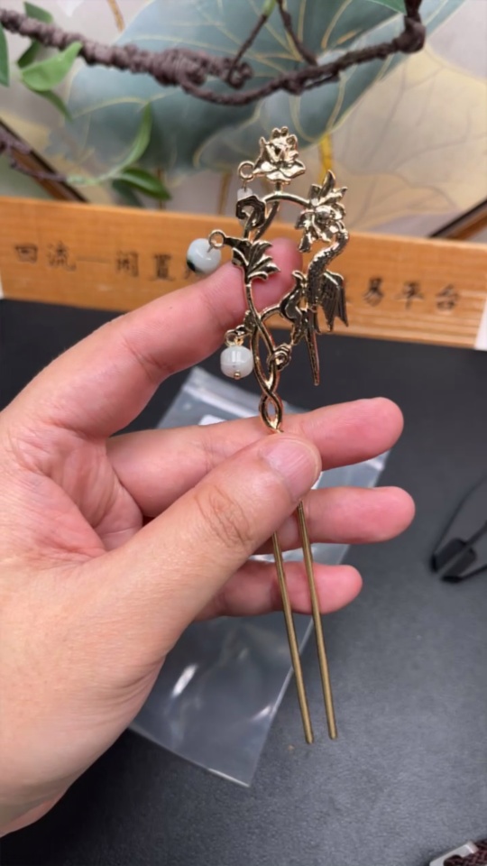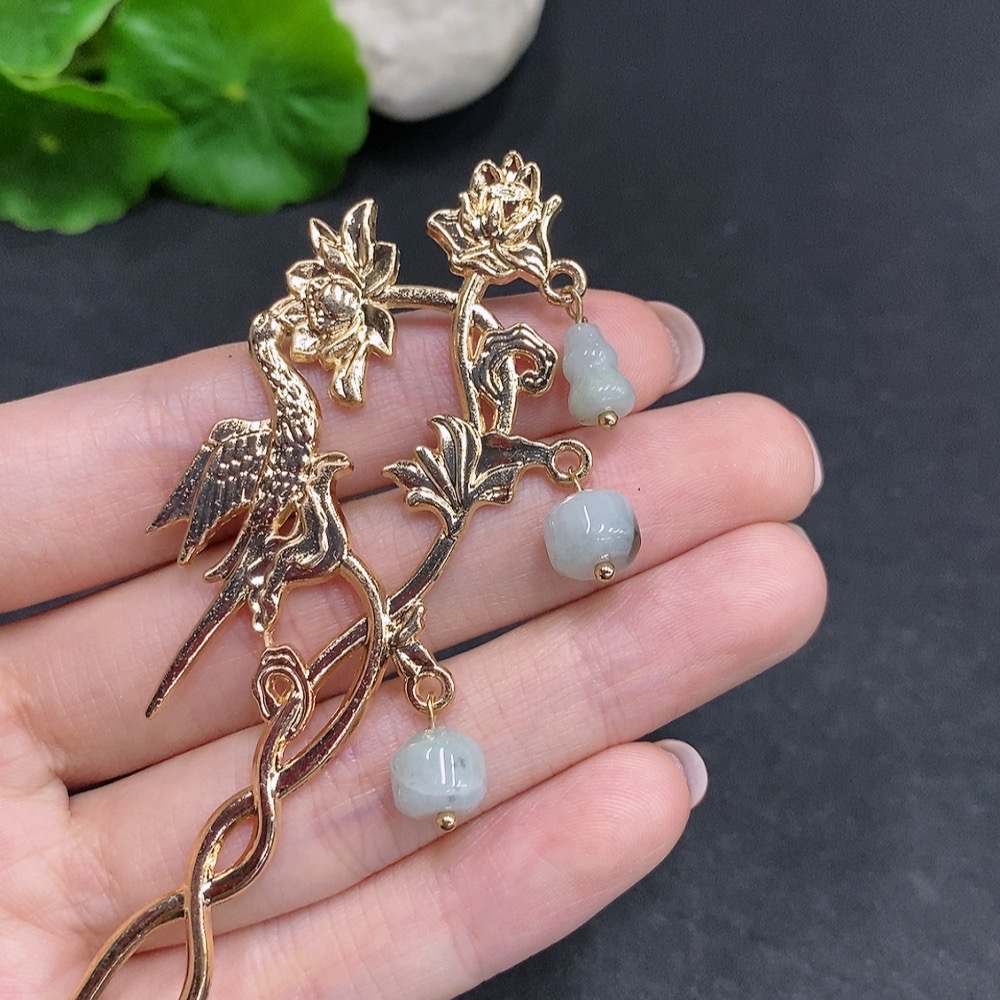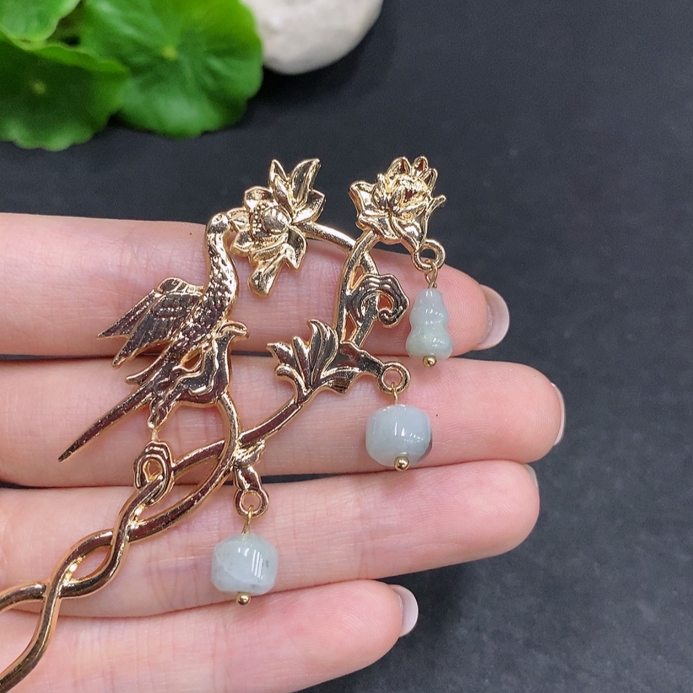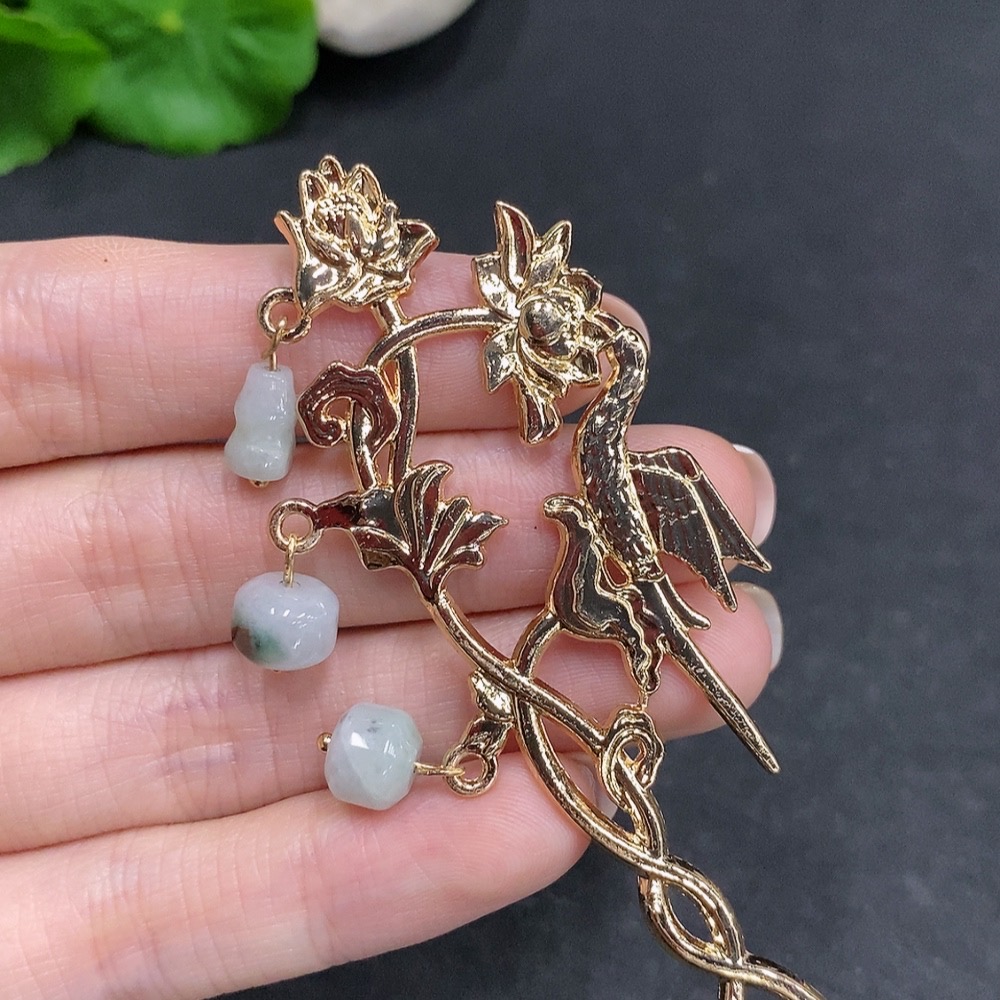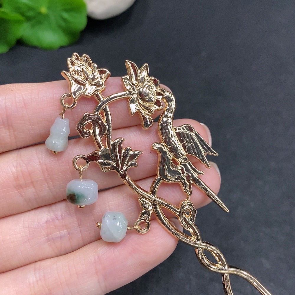 Jadeite Inlaid Hairpin Non-Gold Inlaid Total Weight About 14g
