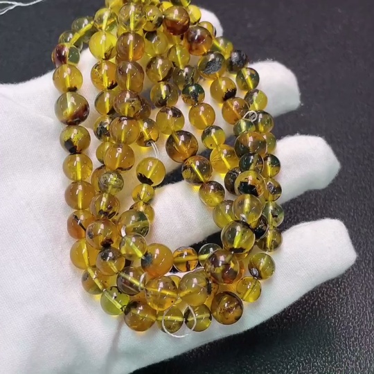 Amber Beeswax Bead Strand, Total Weight Approx. 29.28g, Size 6.2-8.1mm