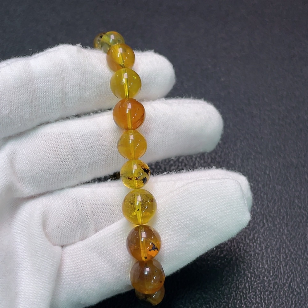 Amber Beeswax Bracelet, Total Weight Approx. 7.56g, Size 7.8-9mm