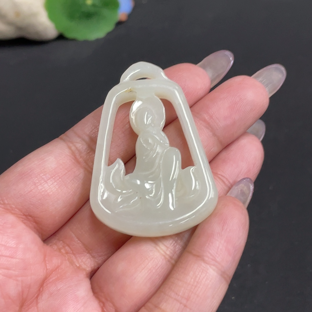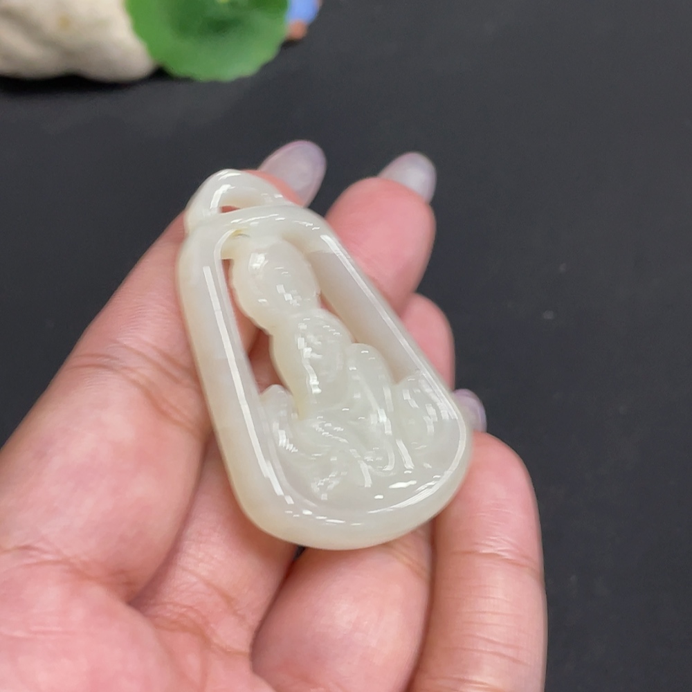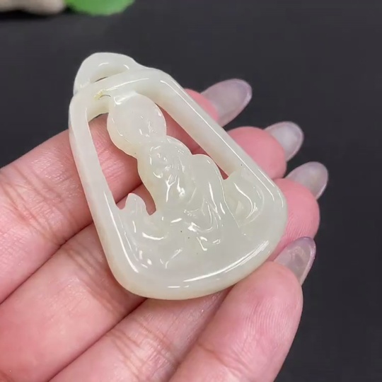 Trezaar - Hetian Jade Pendant - Enlightenment, with damage, total weight approx. 16.4g