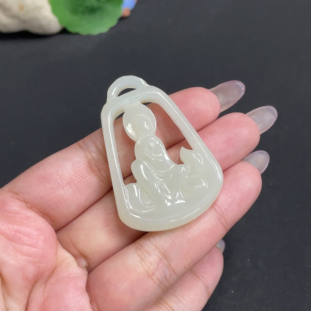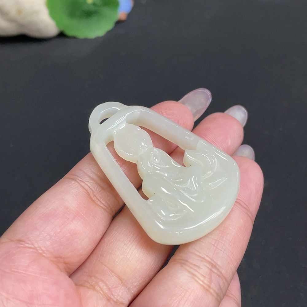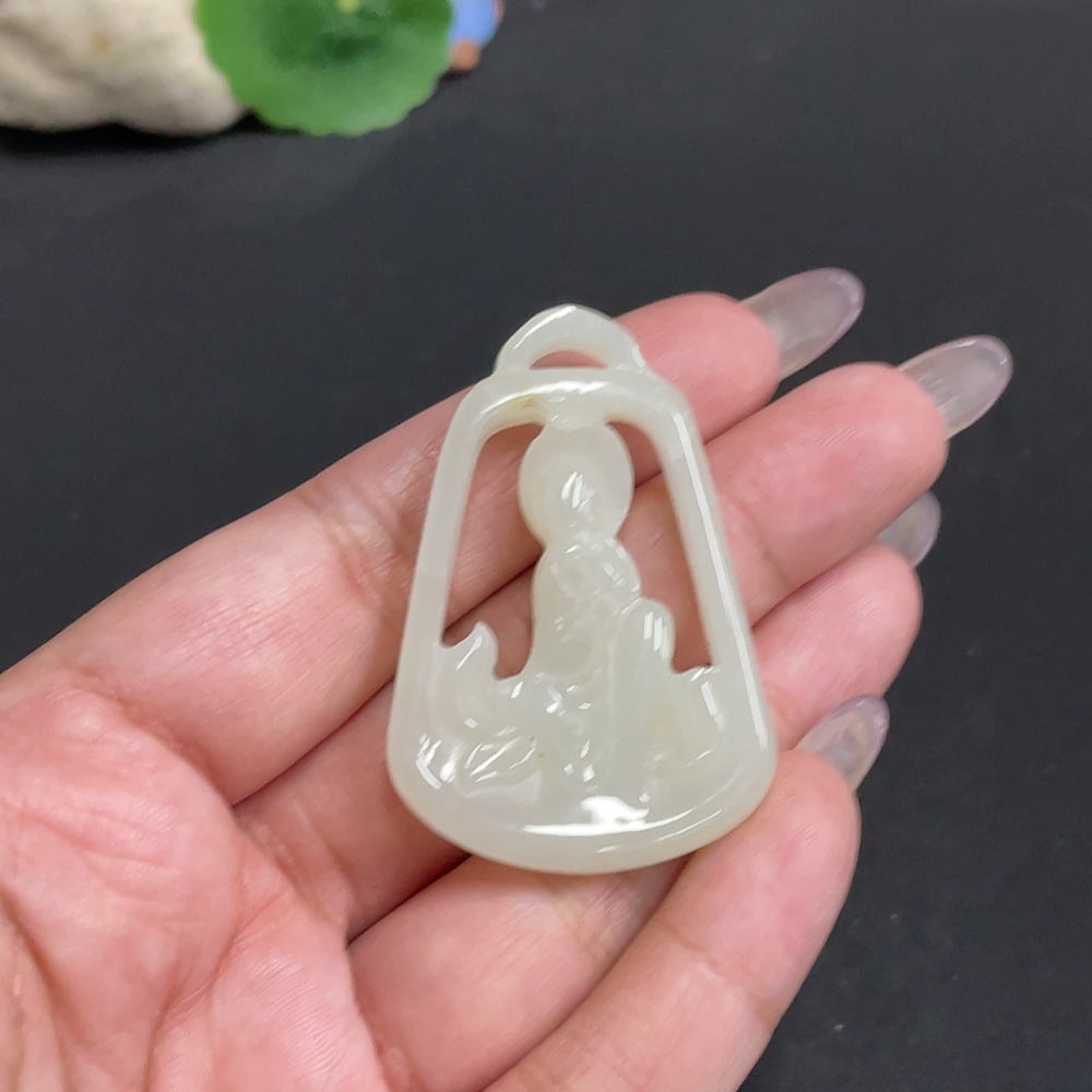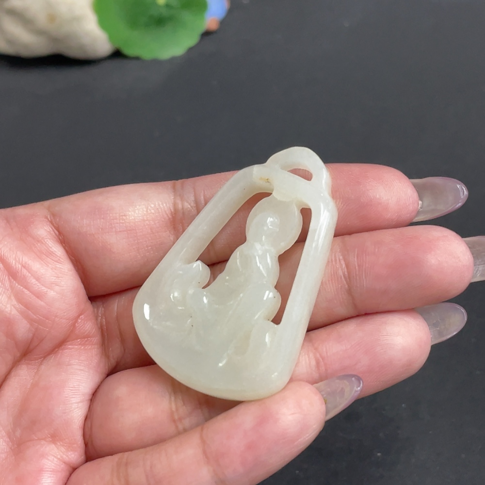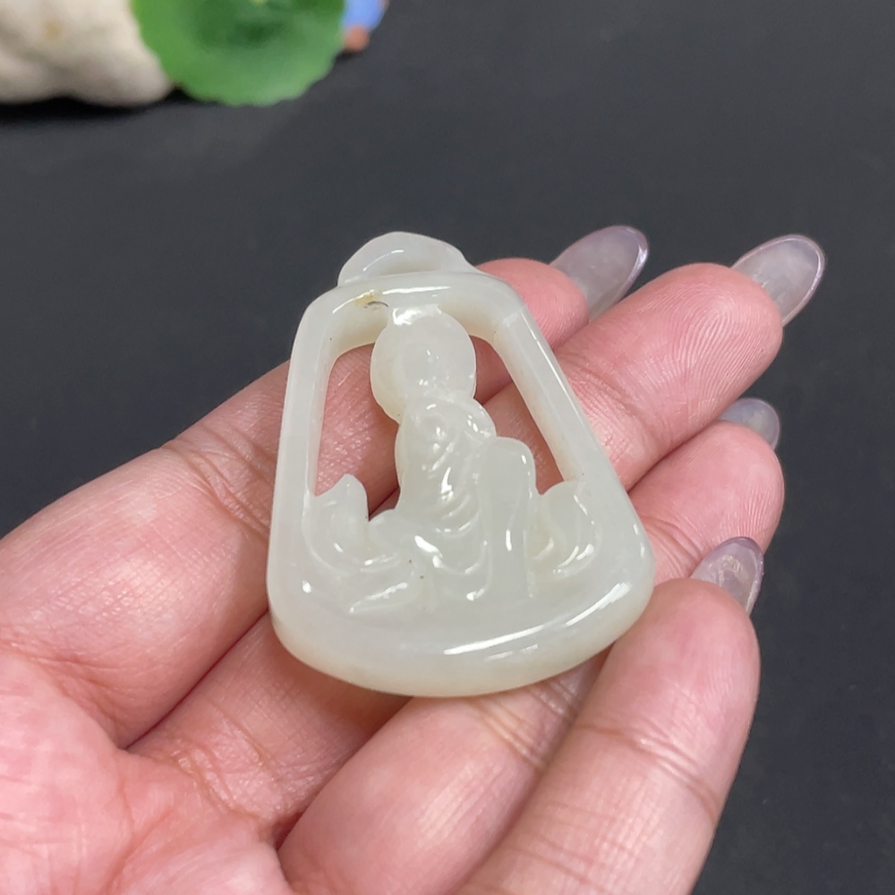 Hetian Jade Pendant - Enlightenment, with damage, total weight approx. 16.4g