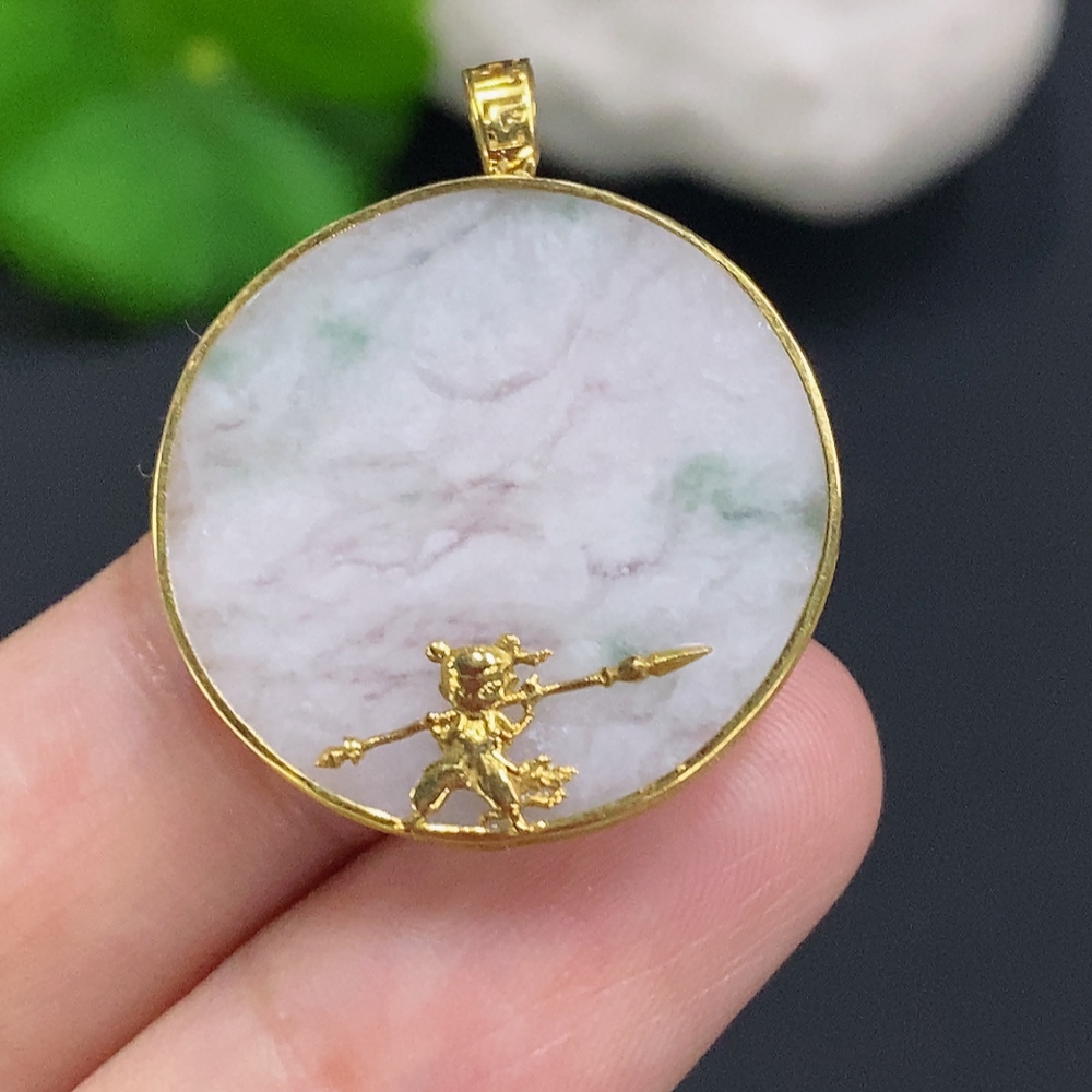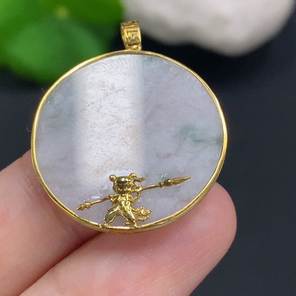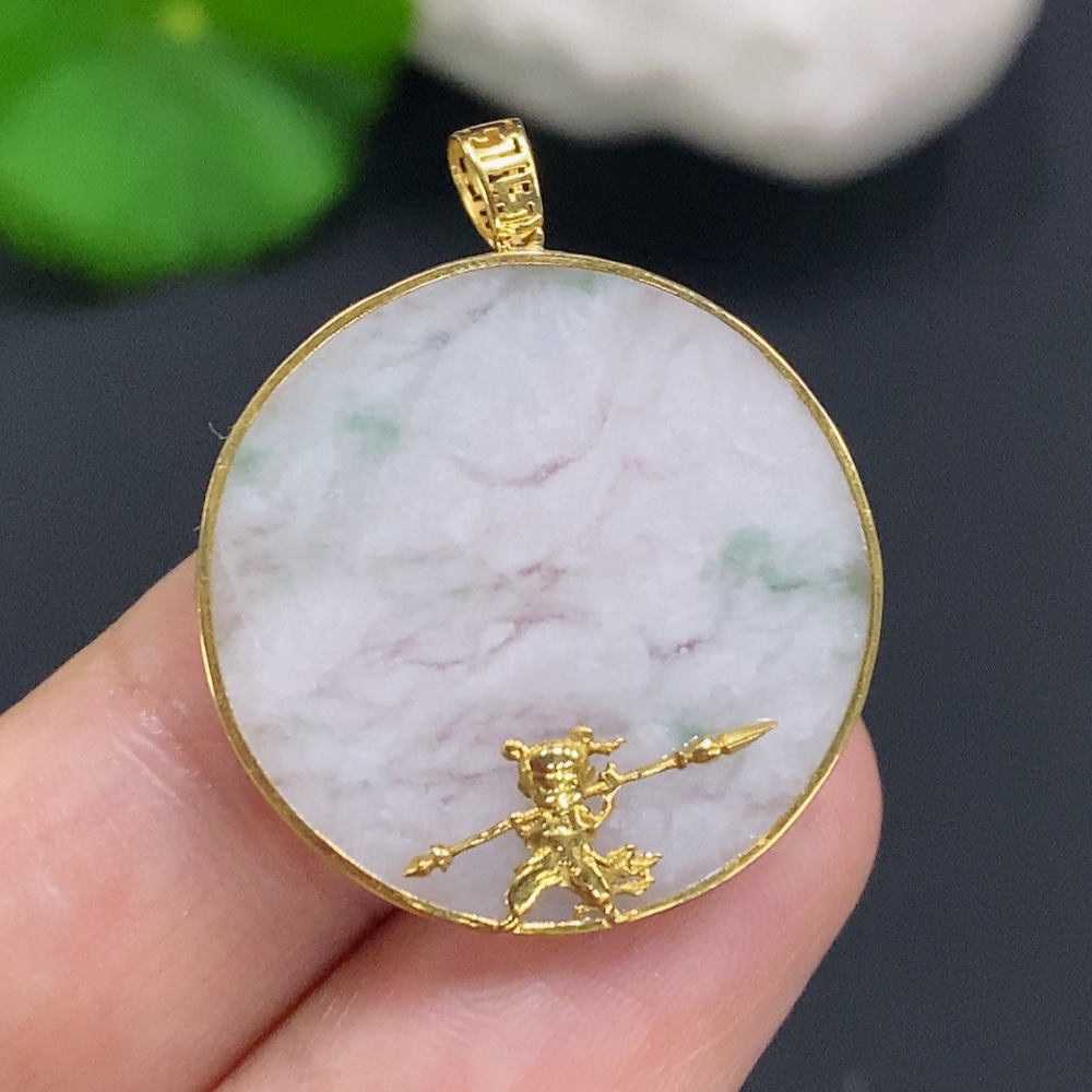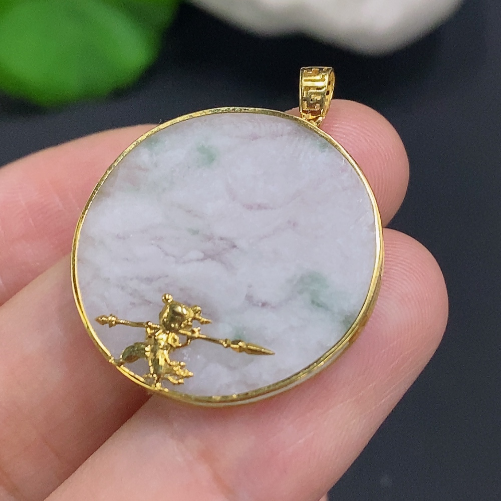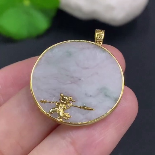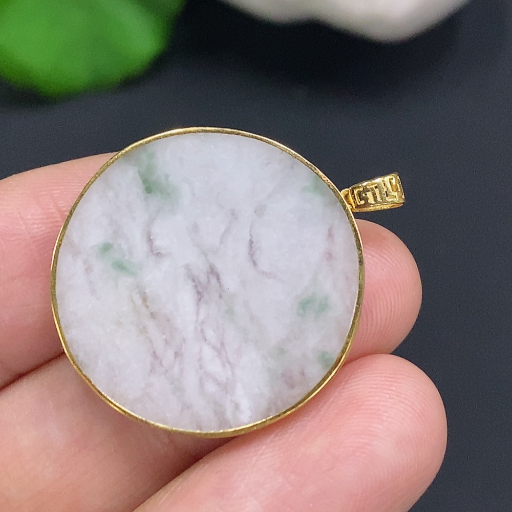 Jadeite Plain Pendant Pendant with 18K Gold Setting, Total Weight Approx. 2.7g
