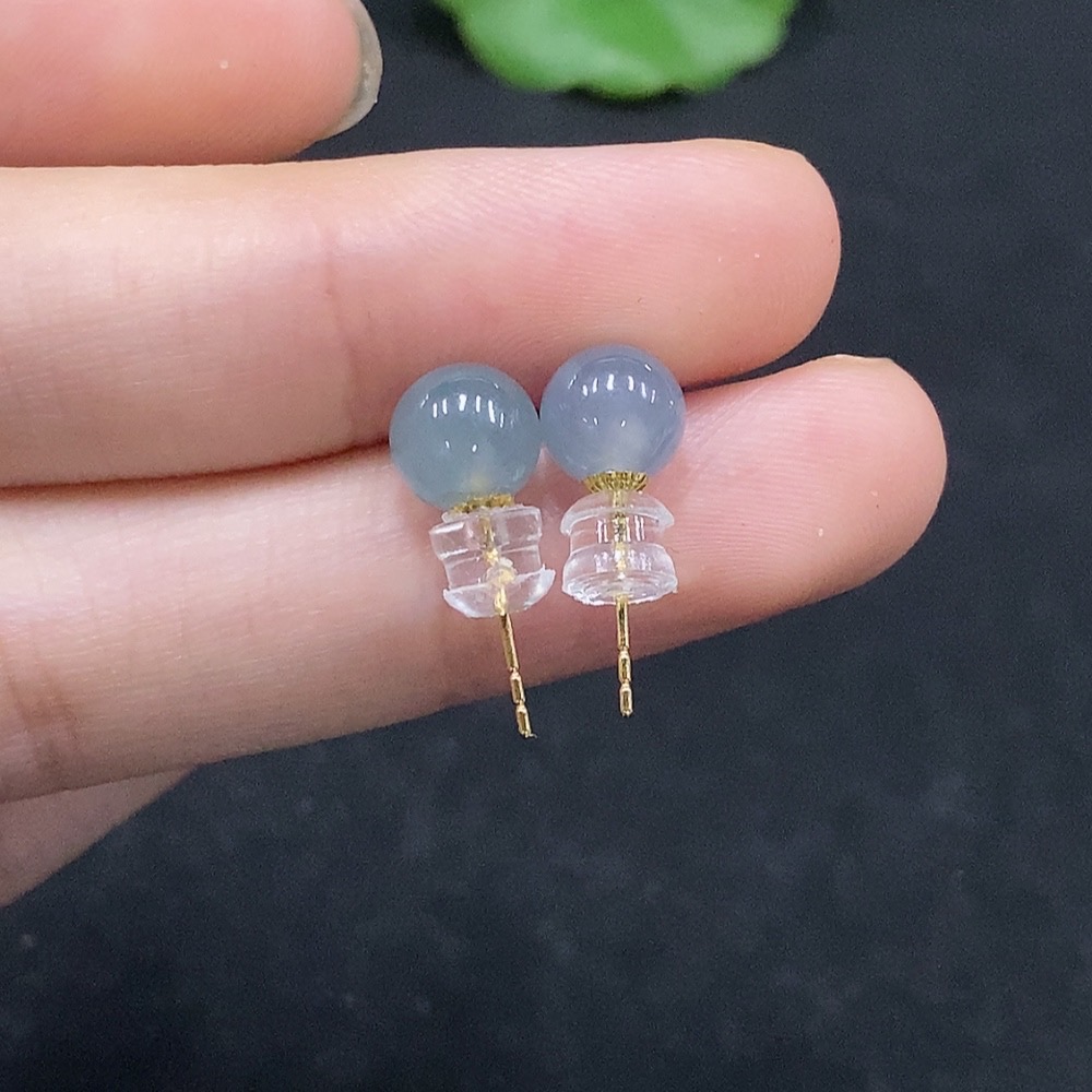 Jadeite Round Bead Earrings 18K Gold Total Weight Approx. 1.28g Including Ear Studs