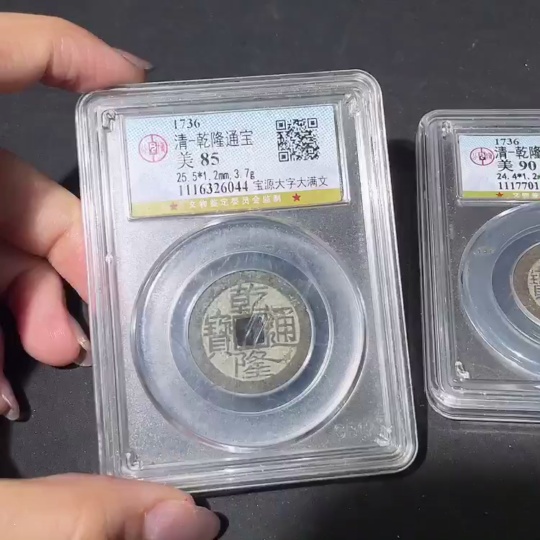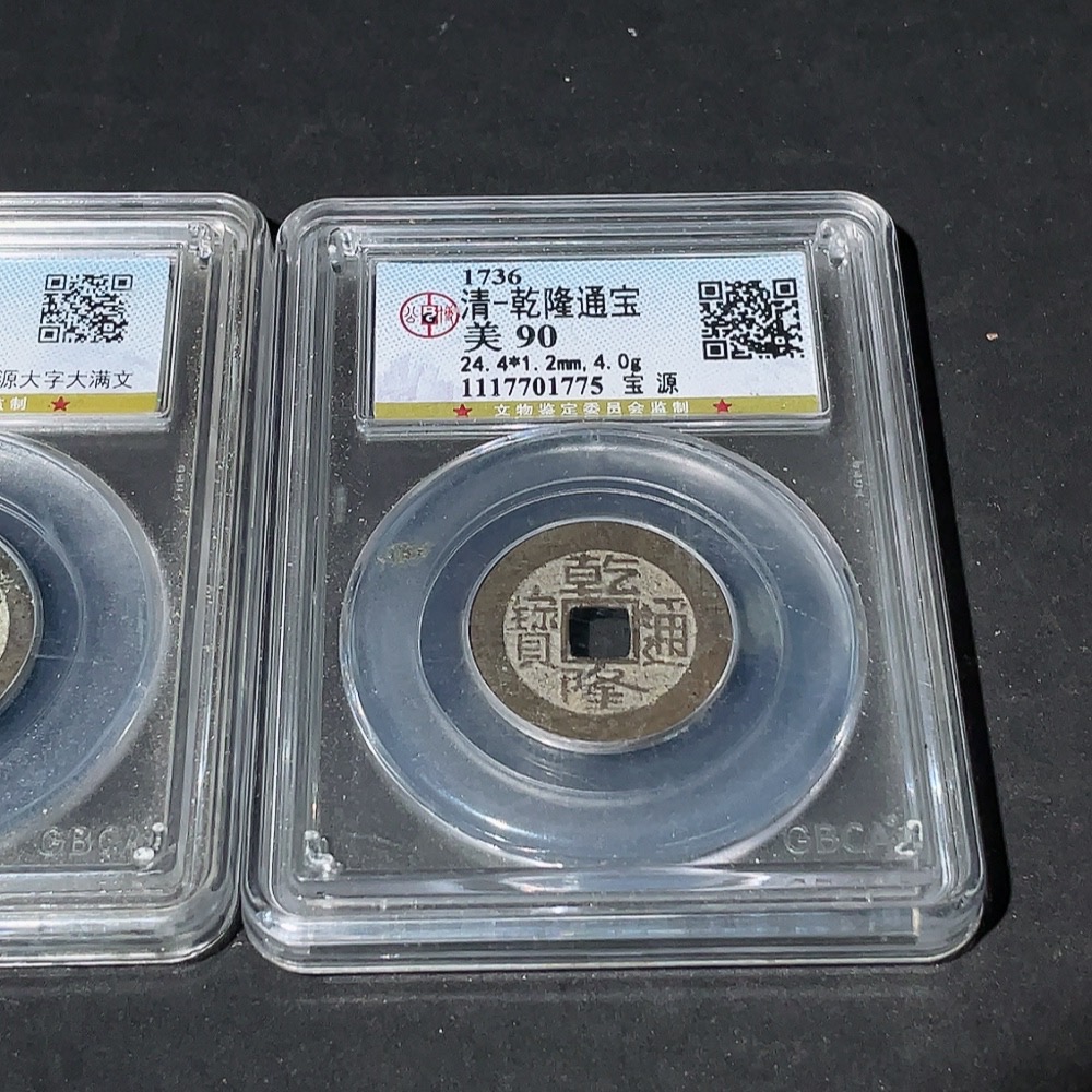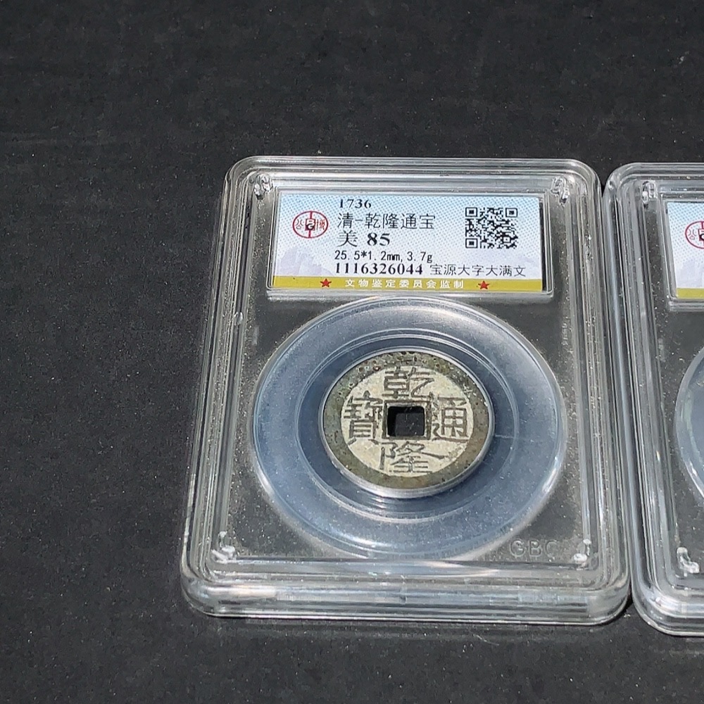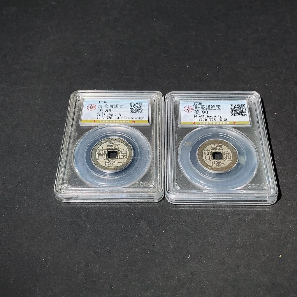 Two Qianlong Tongbao Coins, GBCA Certified High Grade, Ancient Coinage