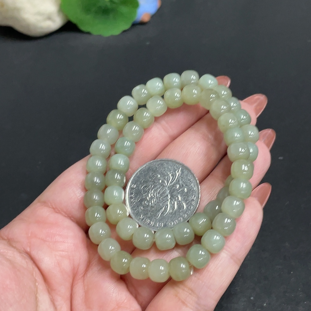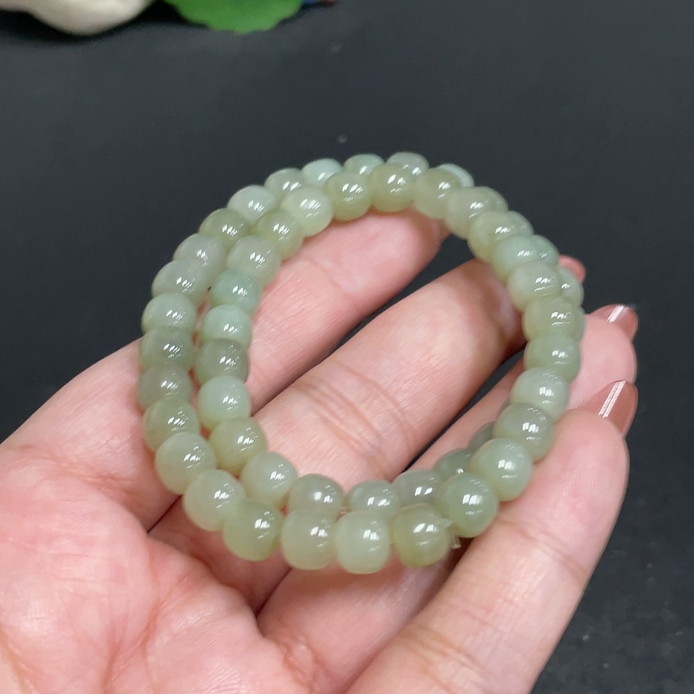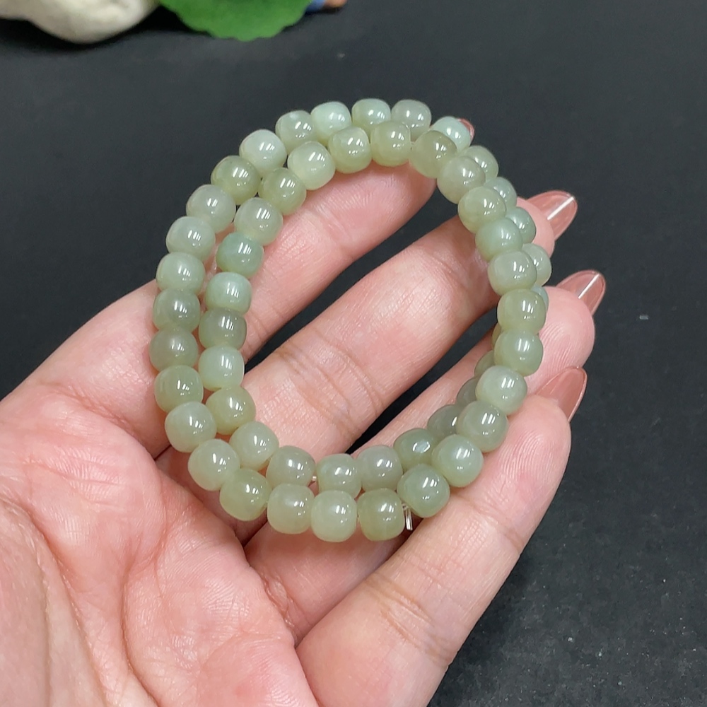 Hetian Jade Bead Necklace Approx. 7mm Total Weight About 28.9g