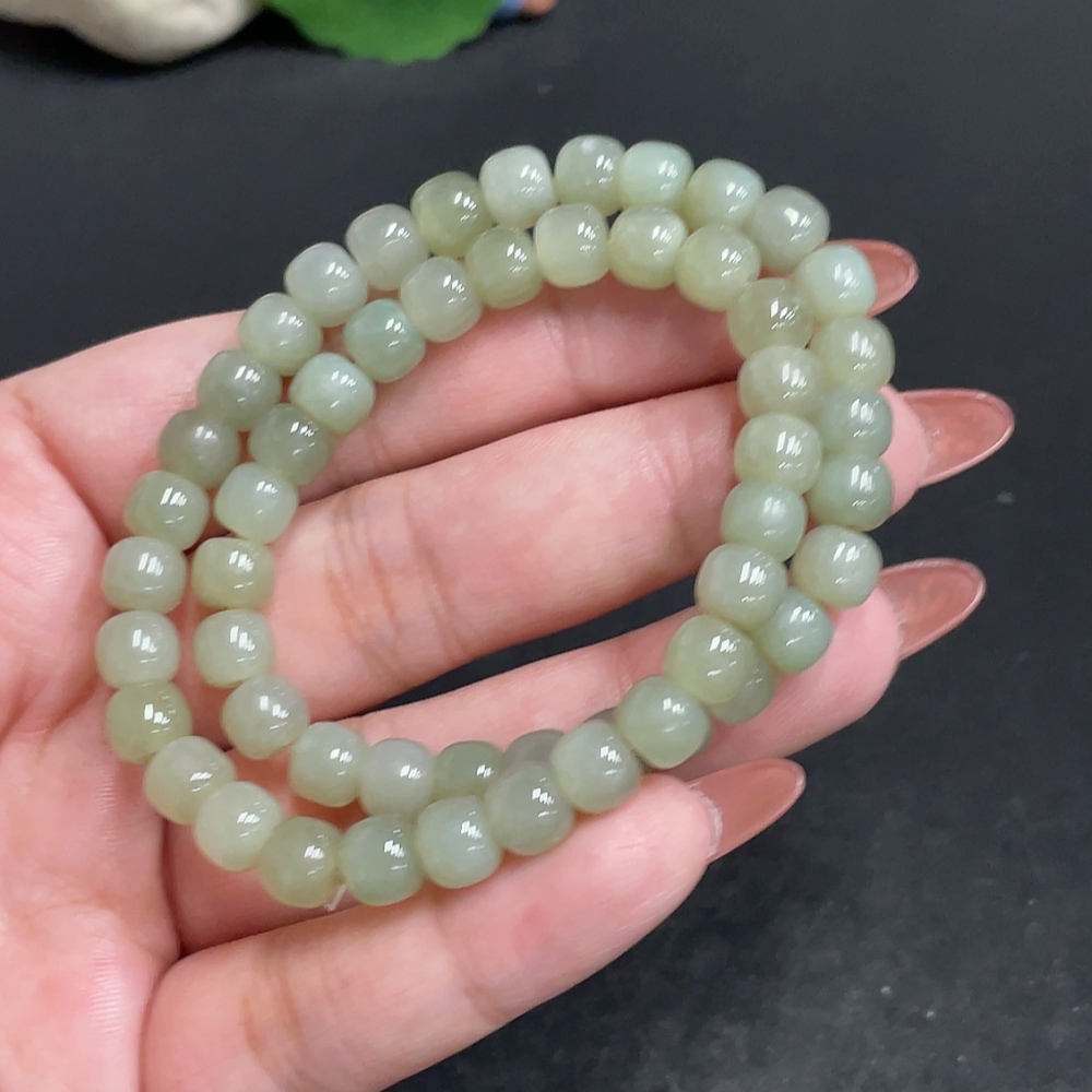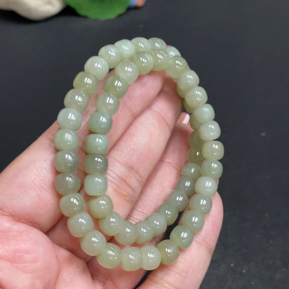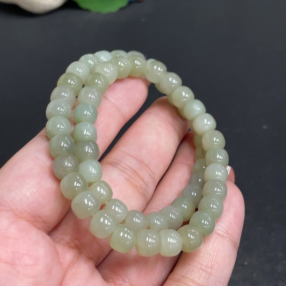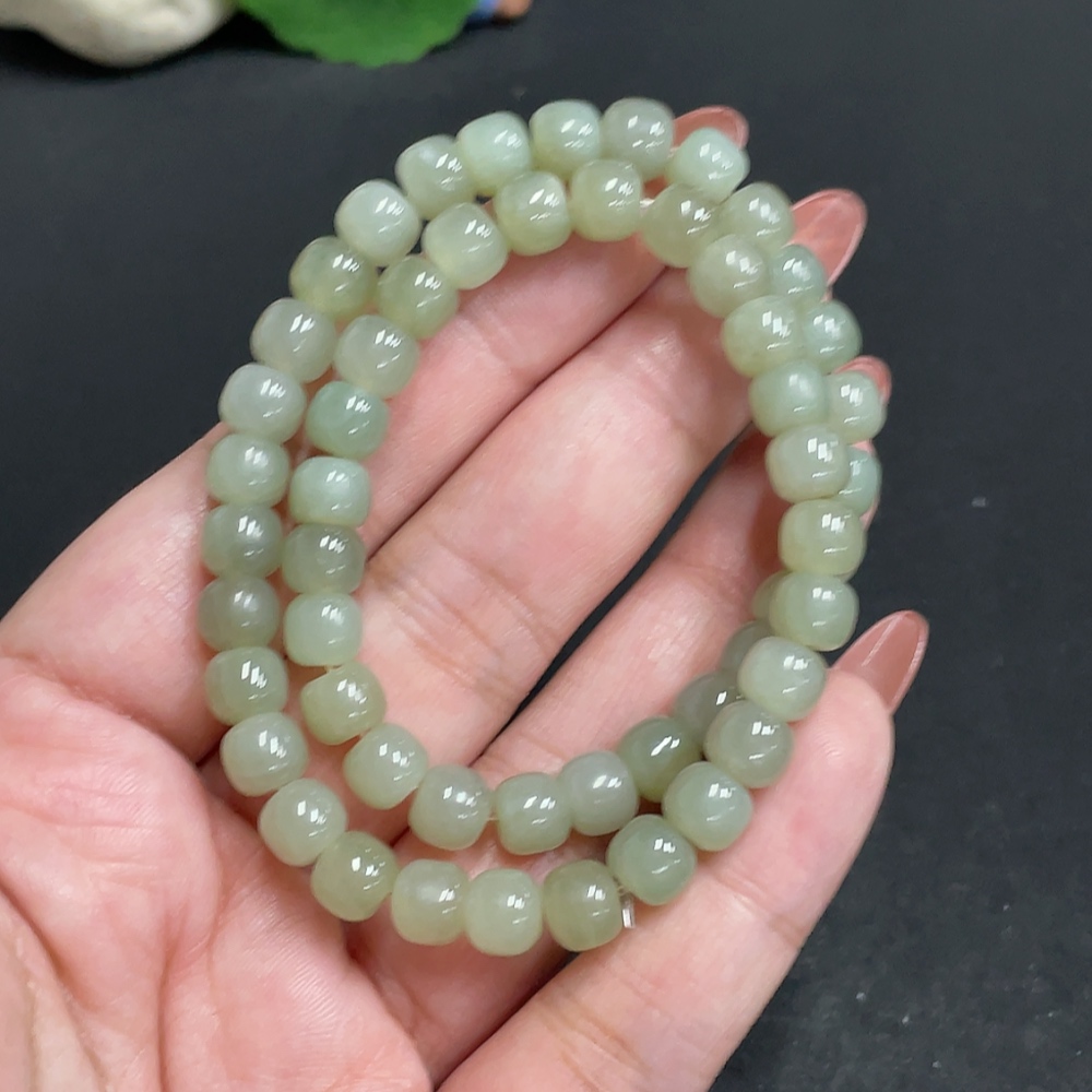 Hetian Jade Bead Necklace Approx. 7mm Total Weight About 28.9g