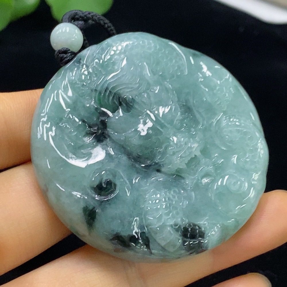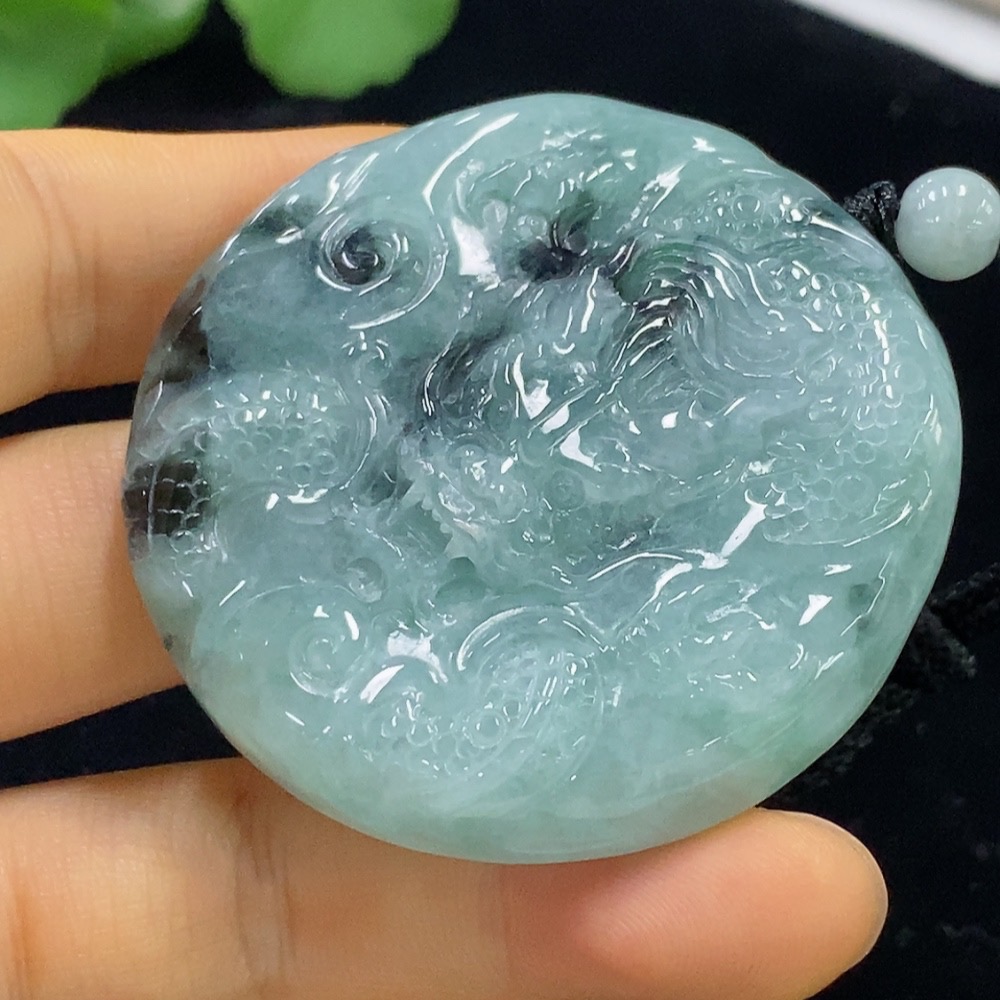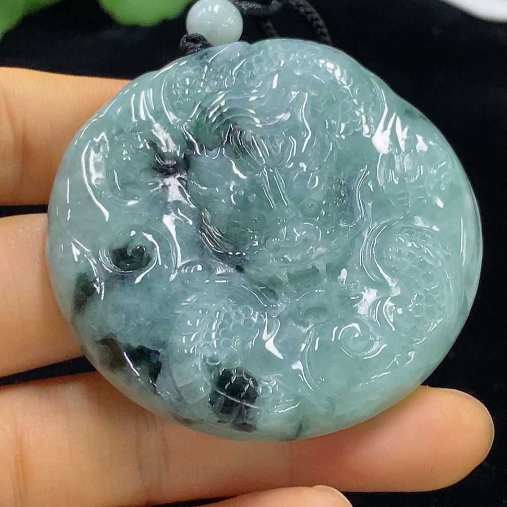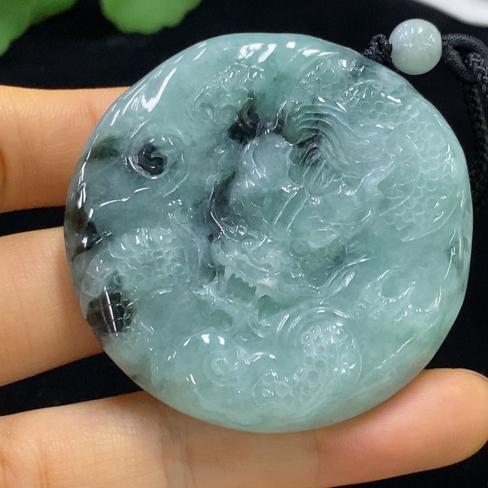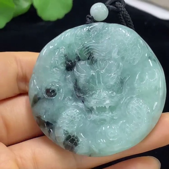 Jadeite Dragon Pendant Total Weight Approx. 55.9g (Including Rope Weight)