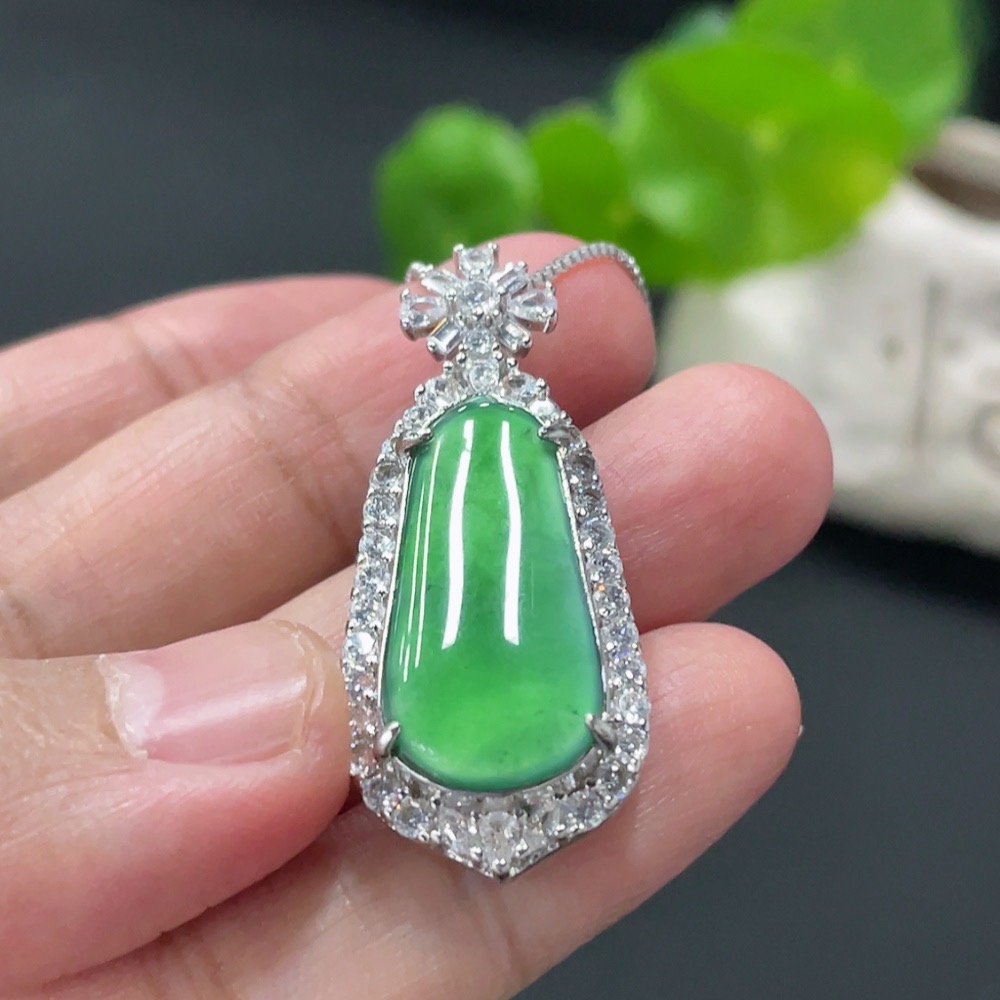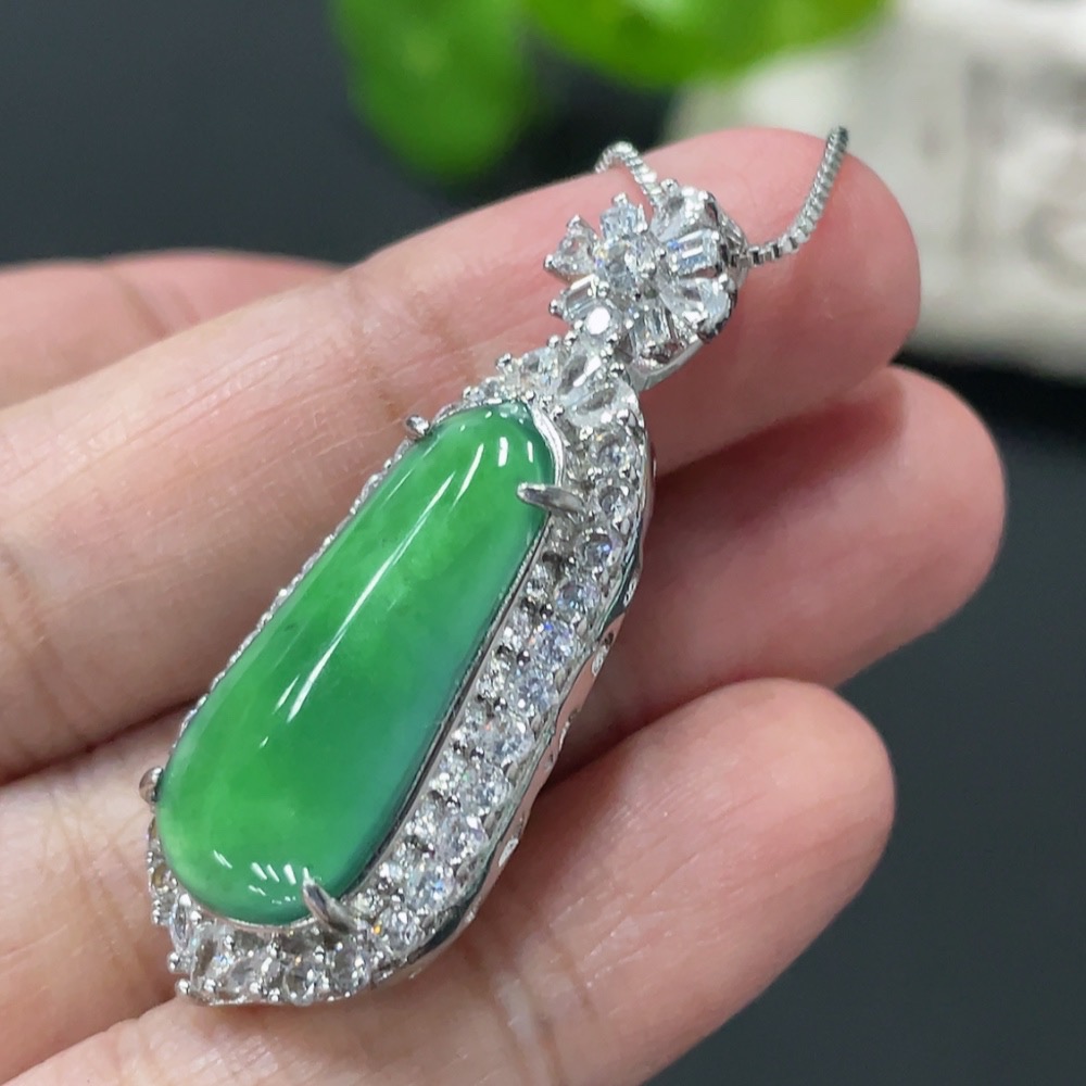 Jadeite Auspicious Gourd Inlaid Pendant Non-Gold Inlaid Total Weight Approx. 8.88g