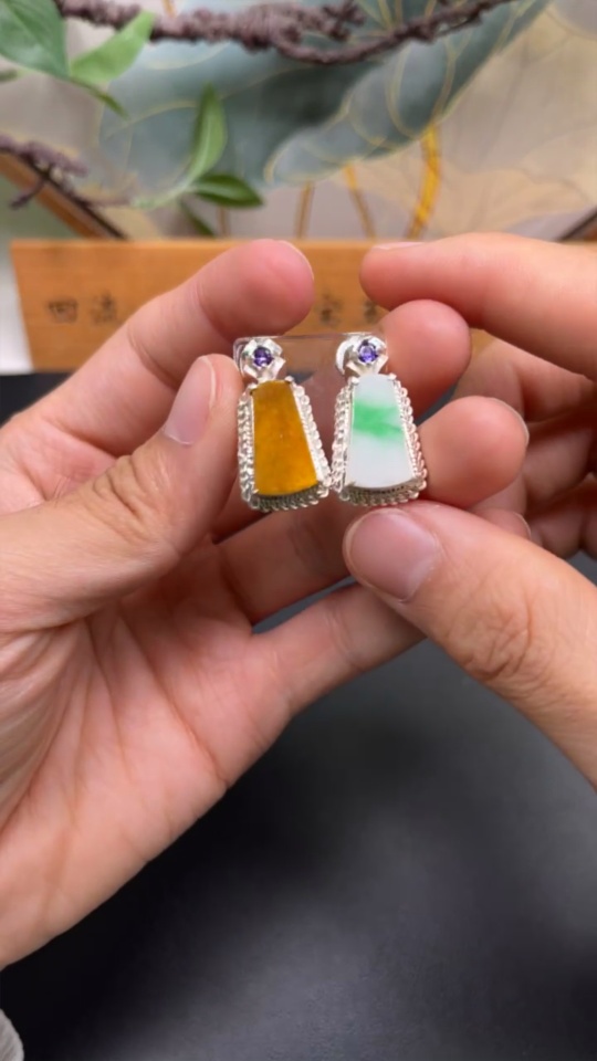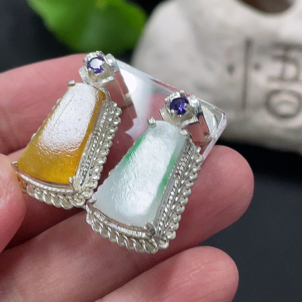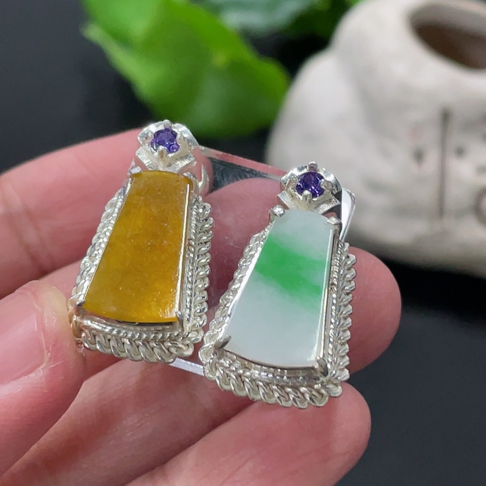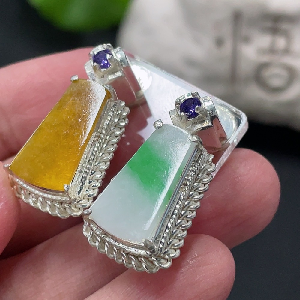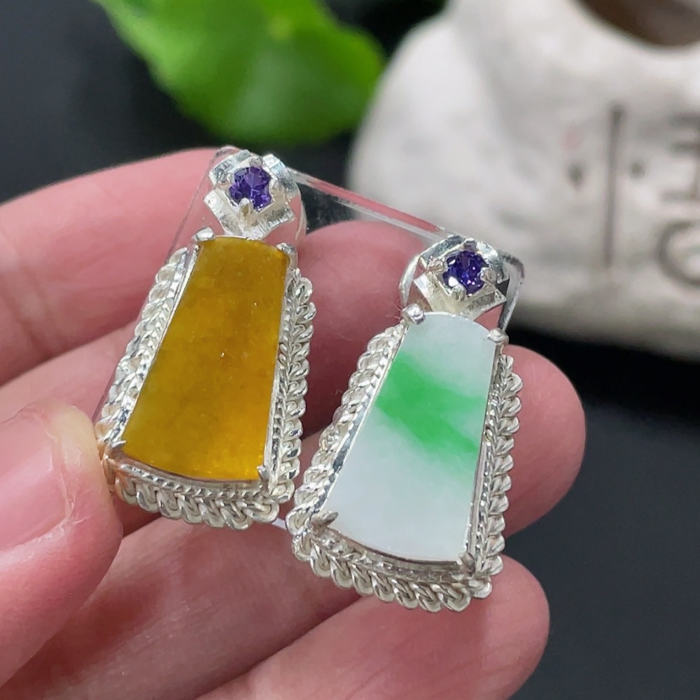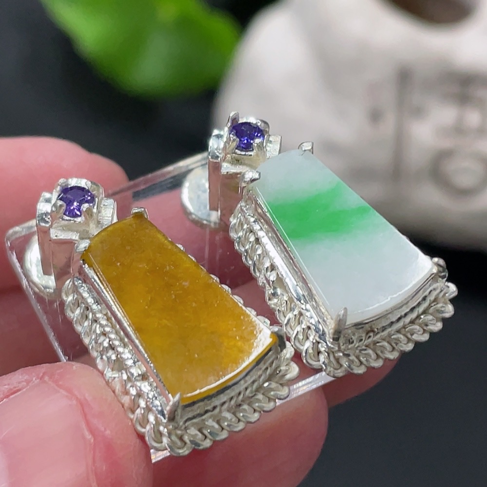 Jadeite Inlaid Piece, Copper Mount, Total Weight Approx. 16.28g, Yellow Part Color Origin Undetermined