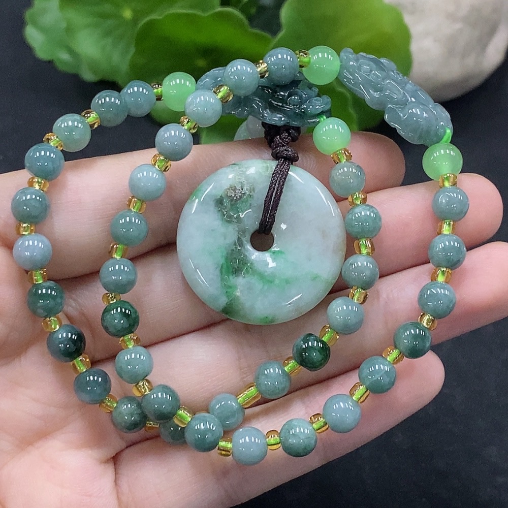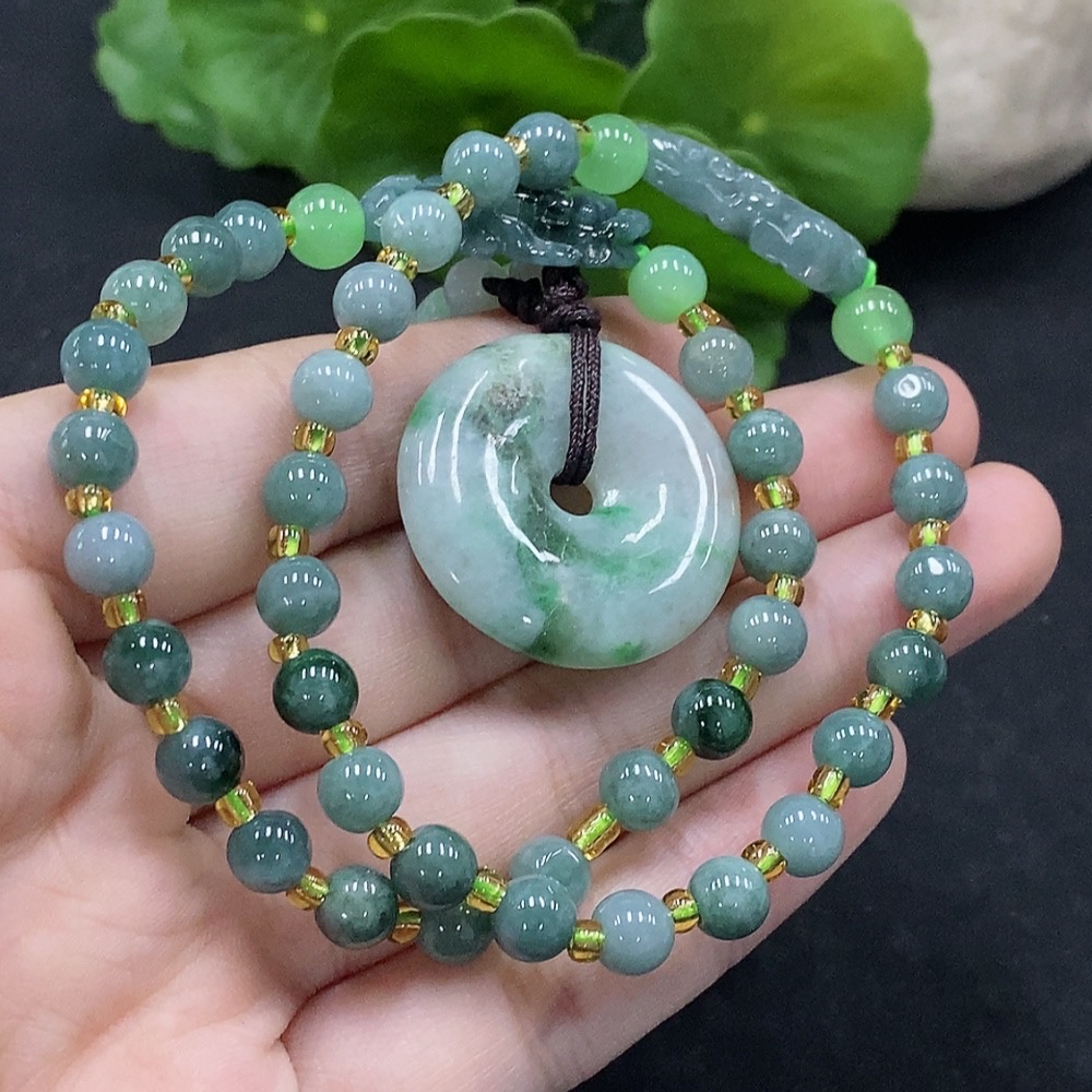 Jadeite bracelet / Peace buckle pendant with non-A grade beads containing other mineral components