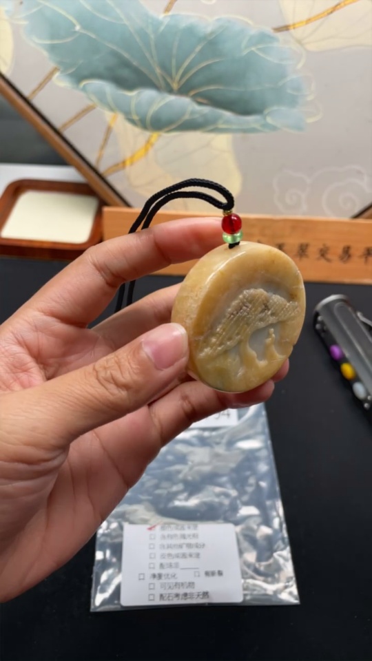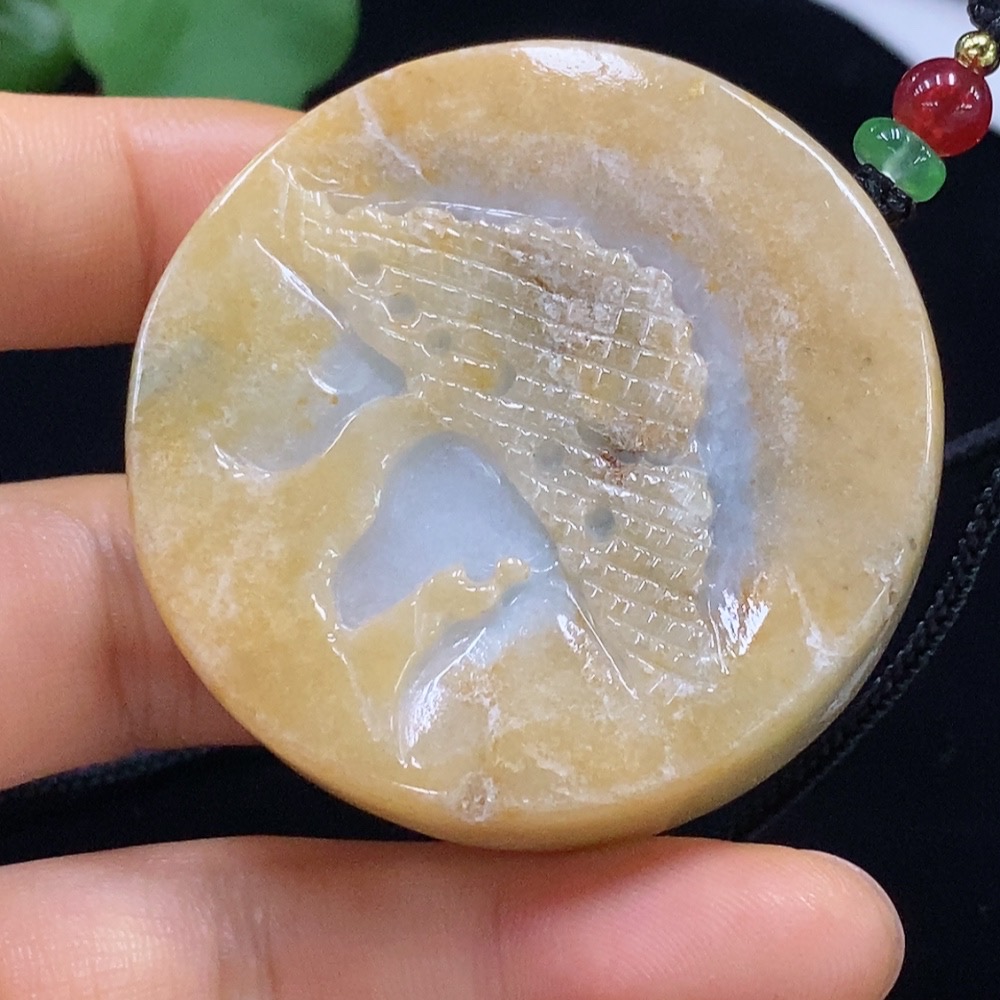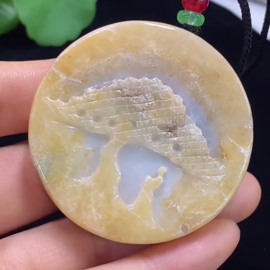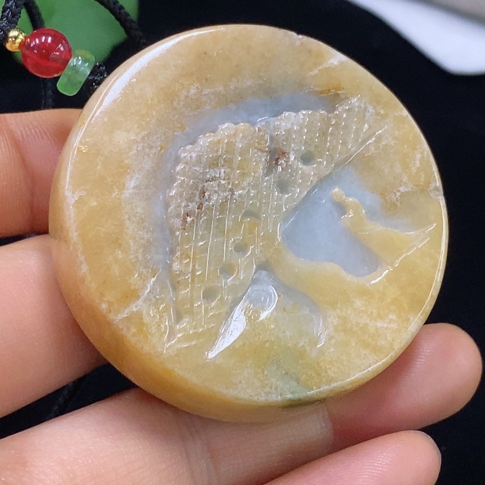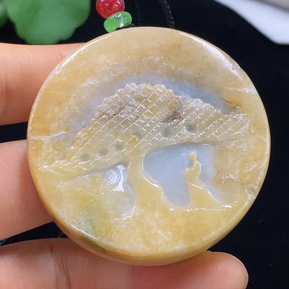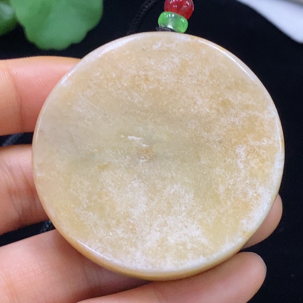 Jadeite Enlightenment Pendant (Total weight approx. 81.25g including rope weight, yellow section color origin undetermined)