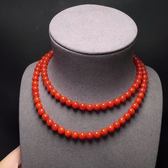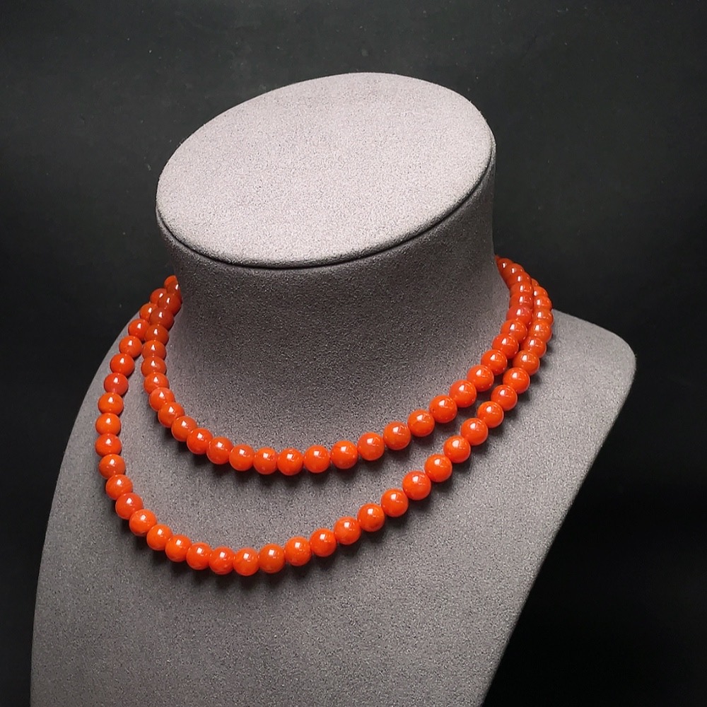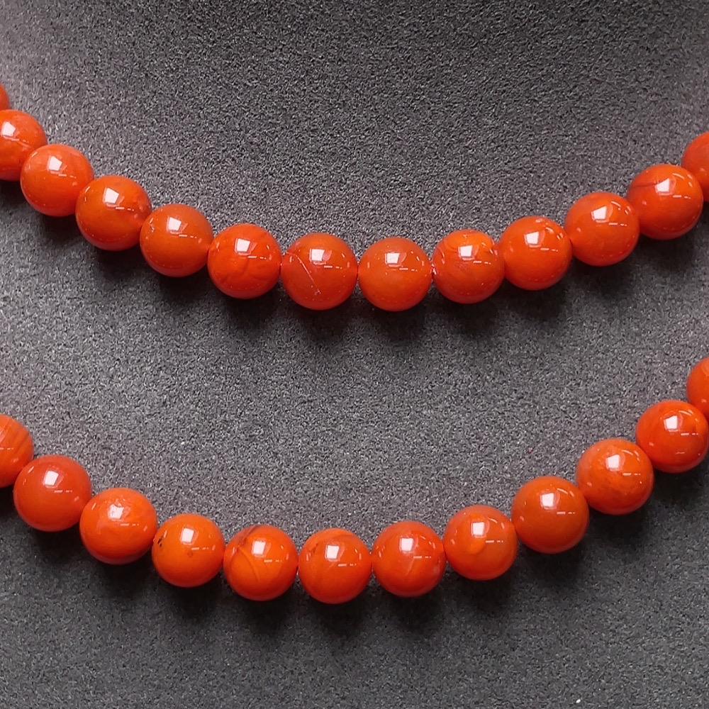 Red Agate Beaded Necklace with Visible Organic Matter, Non-Natural Accent Stones, Total Weight Approx.69.5g, Bead Size 7.4mm