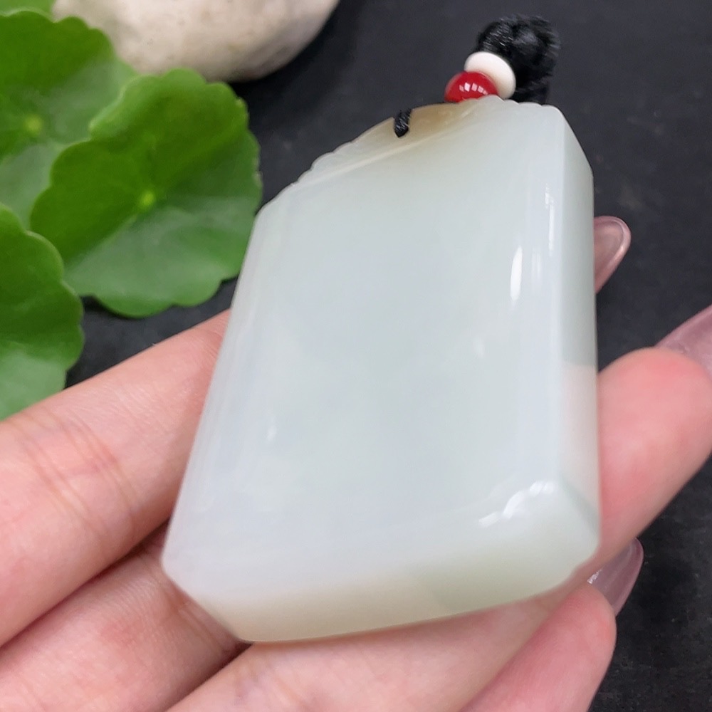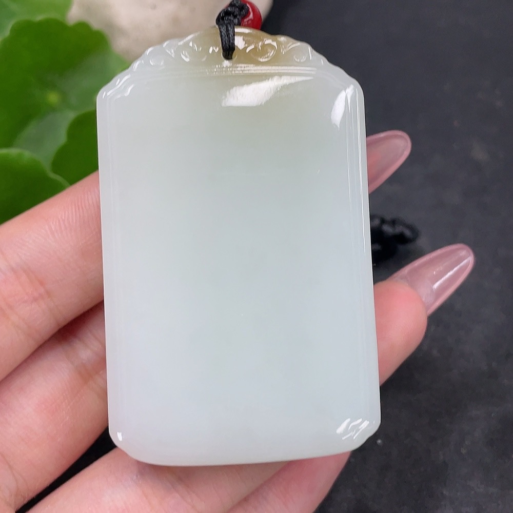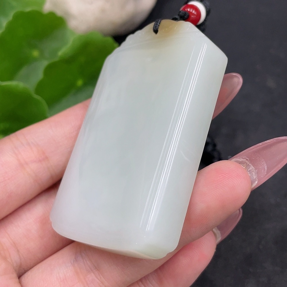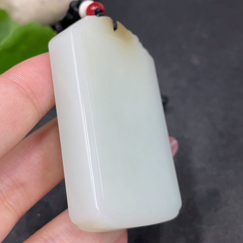 Hetian Jade Pendant Plain Pendant with Non-Hetian Jade Beads Total Weight Approx. 72g (including rope)