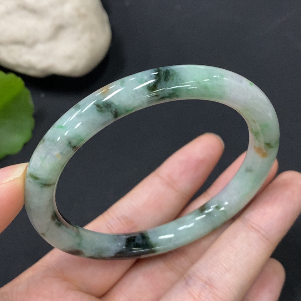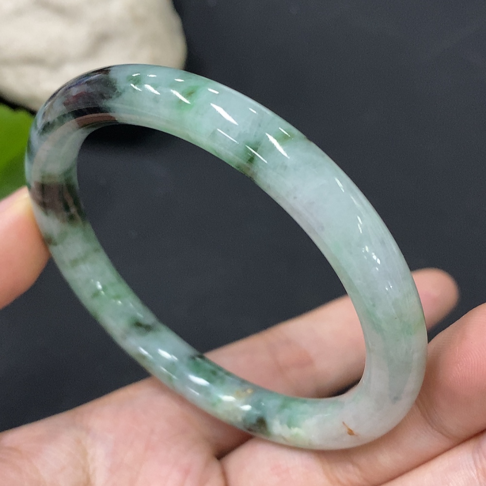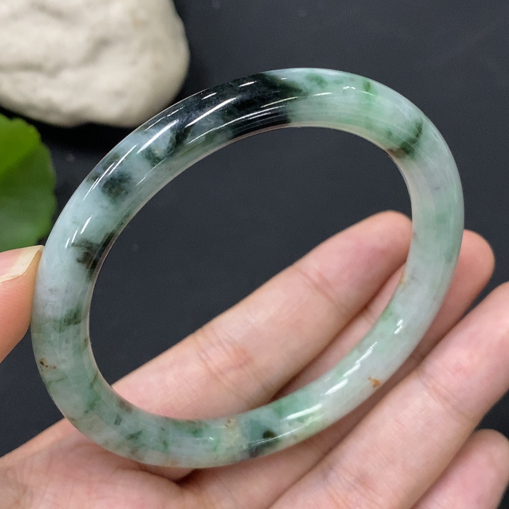 Jadeite Bangle with Other Mineral Components, Total Weight Approx. 34.4g, Size 55.8