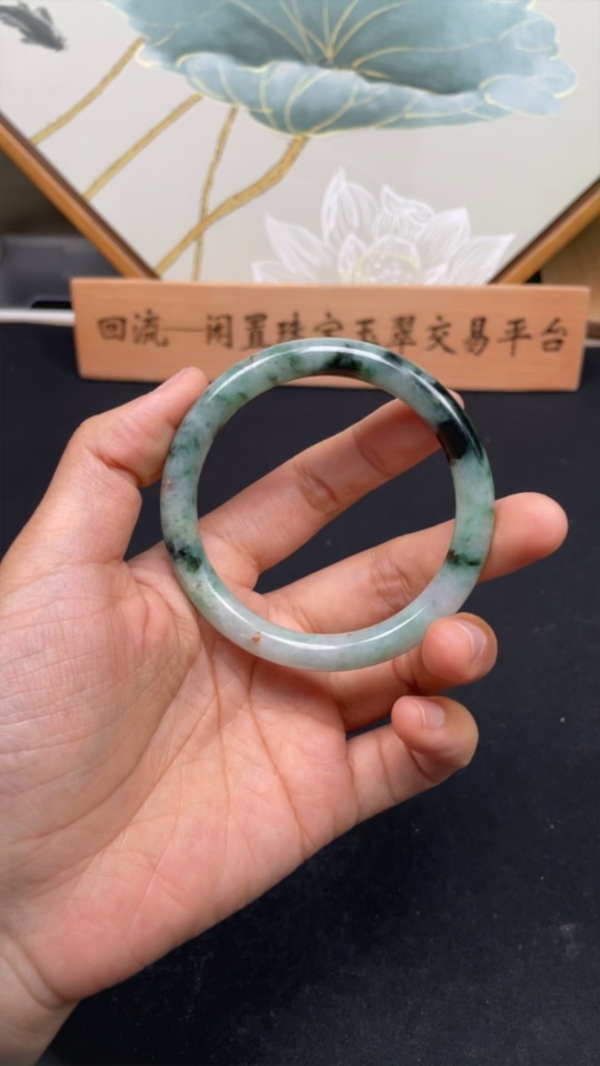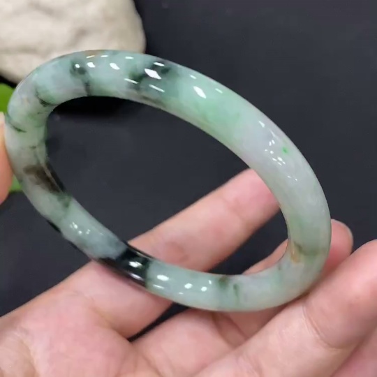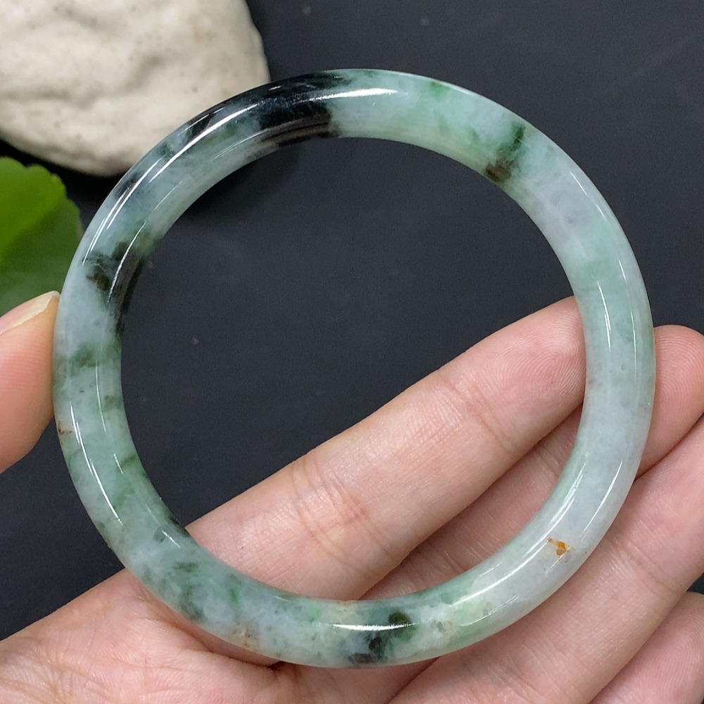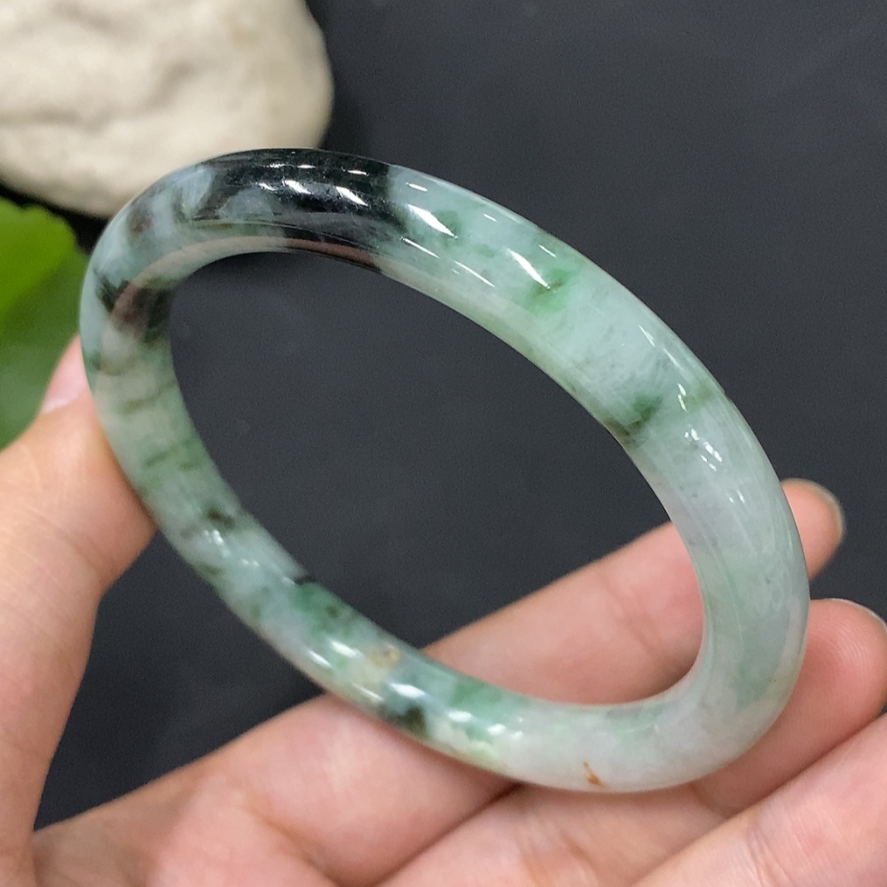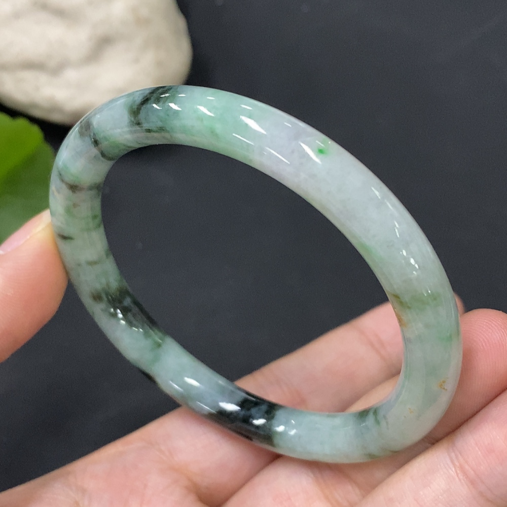 Jadeite Bangle with Other Mineral Components, Total Weight Approx. 34.4g, Size 55.8