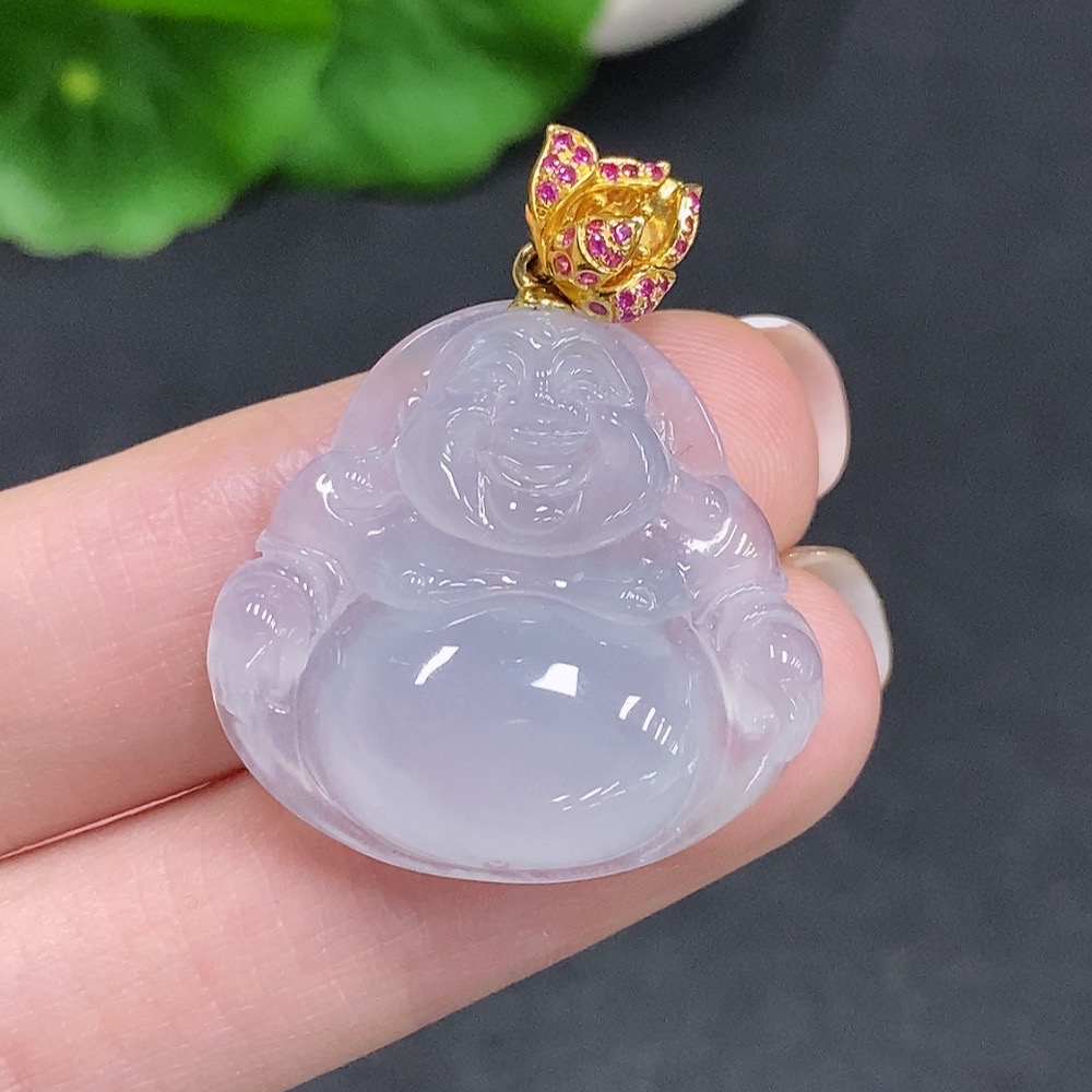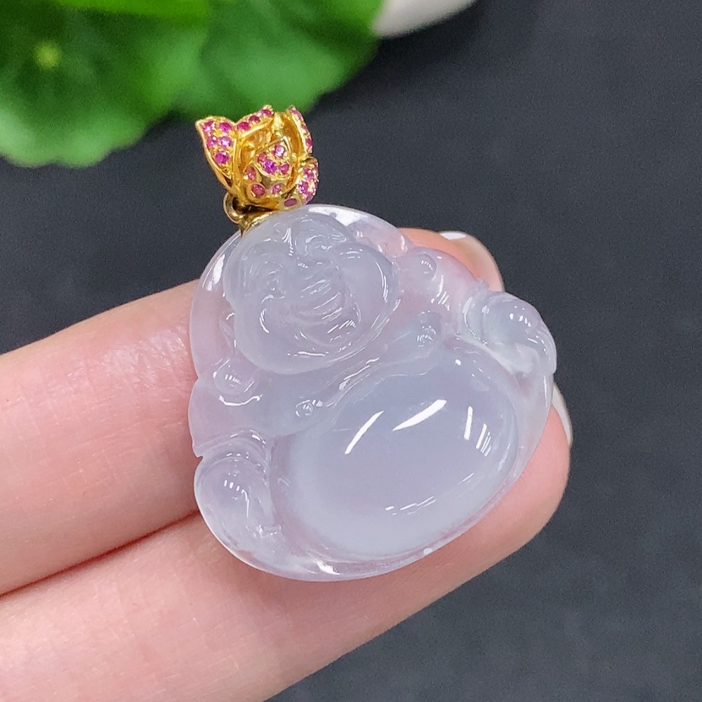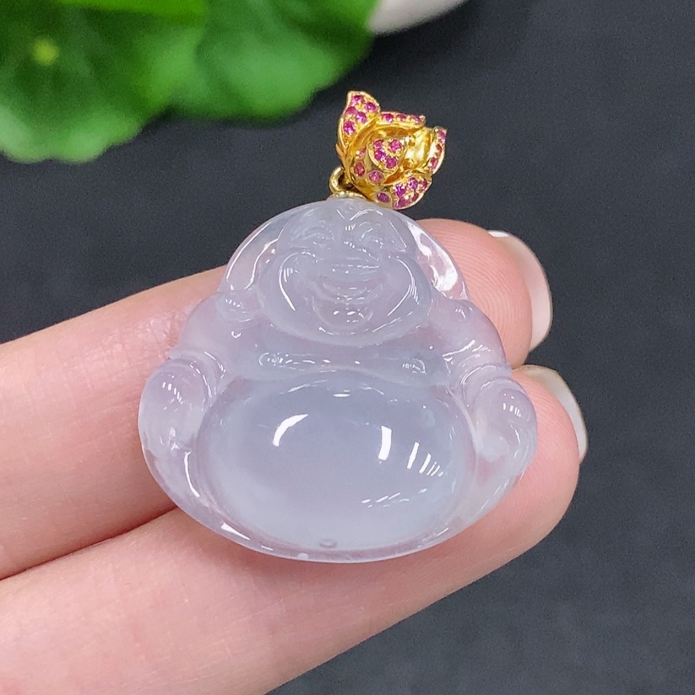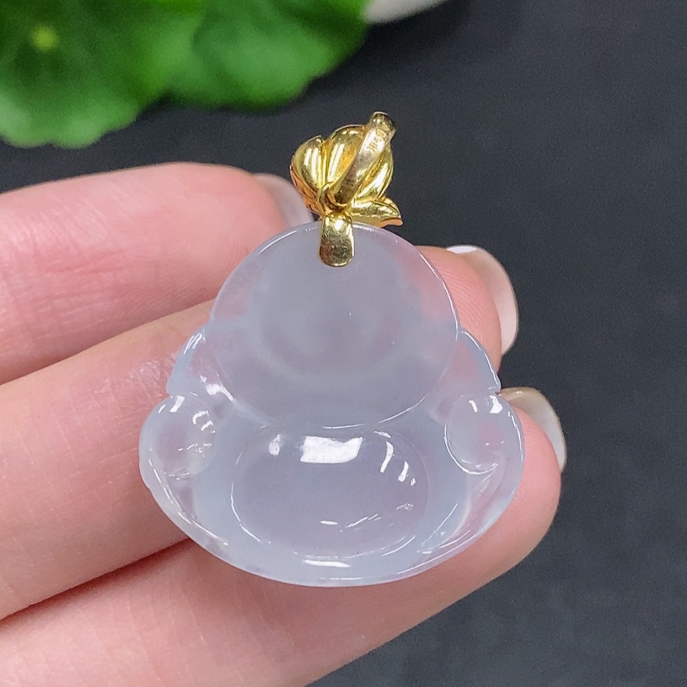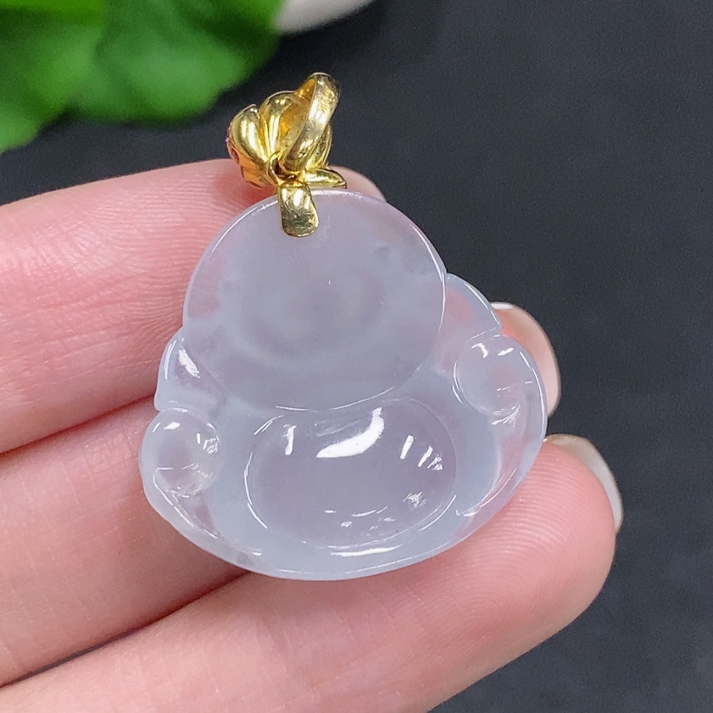 Jadeite Buddha Pendant with 18K Gold Clasp, Total Weight Approximately 7g