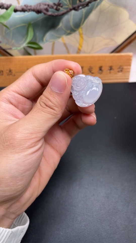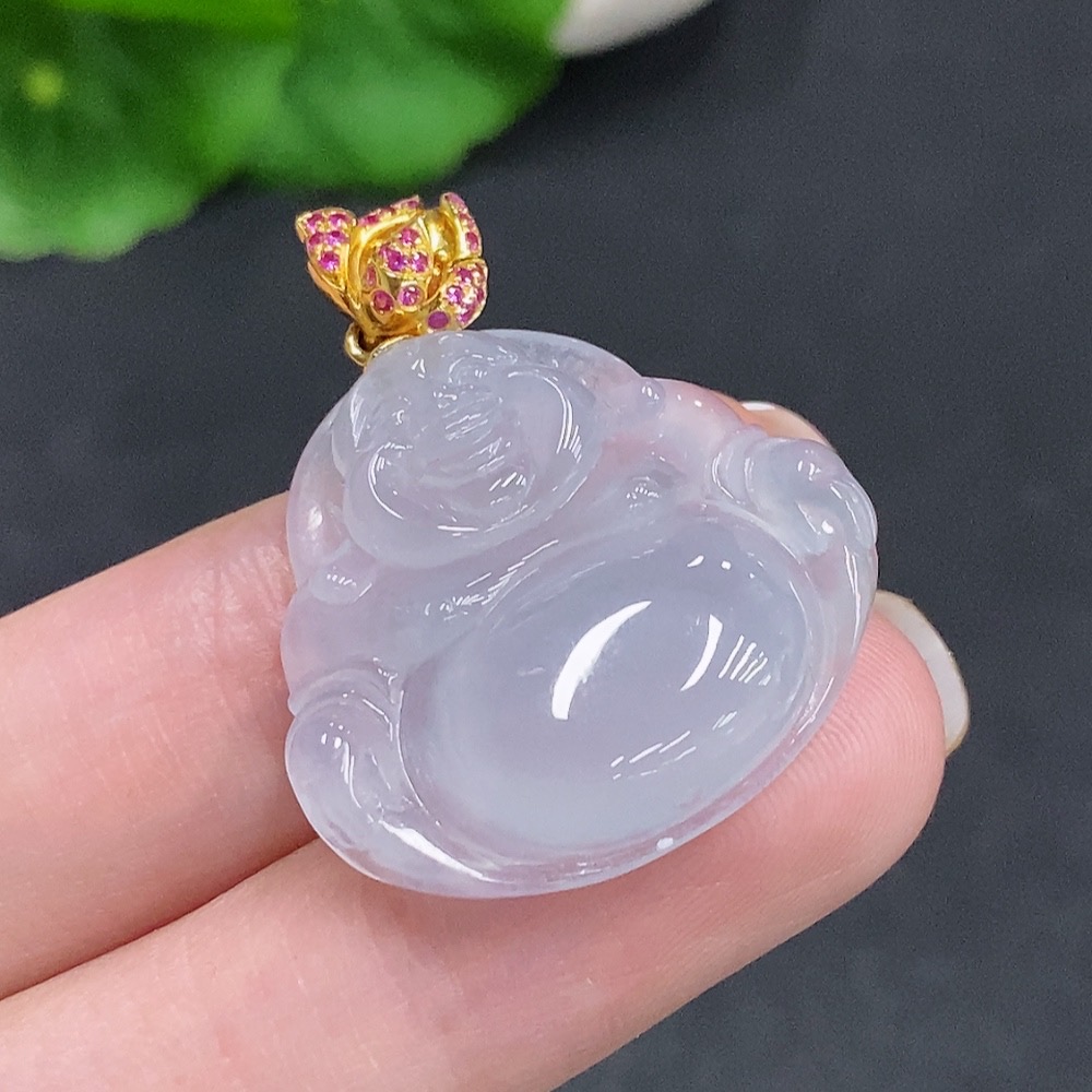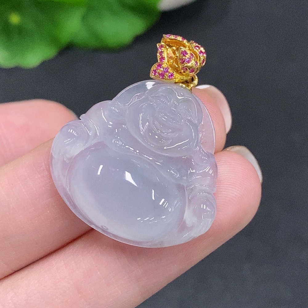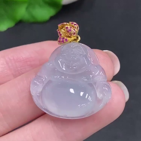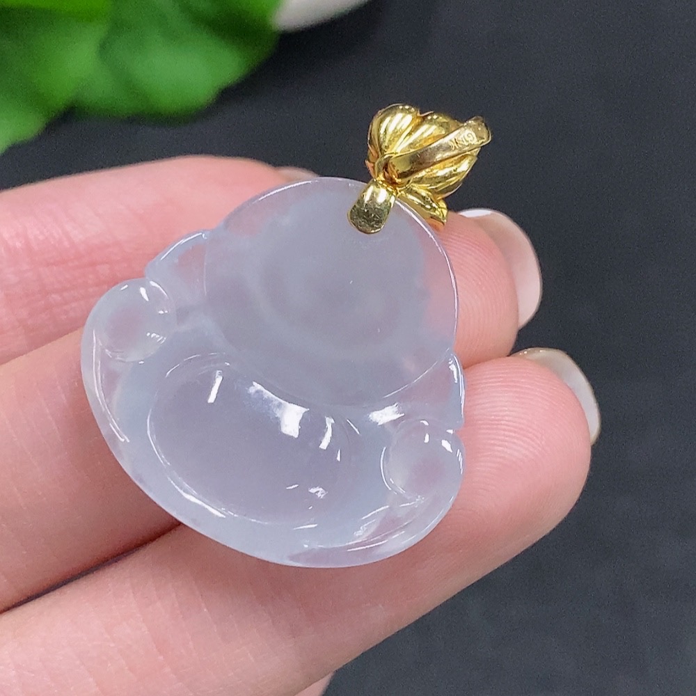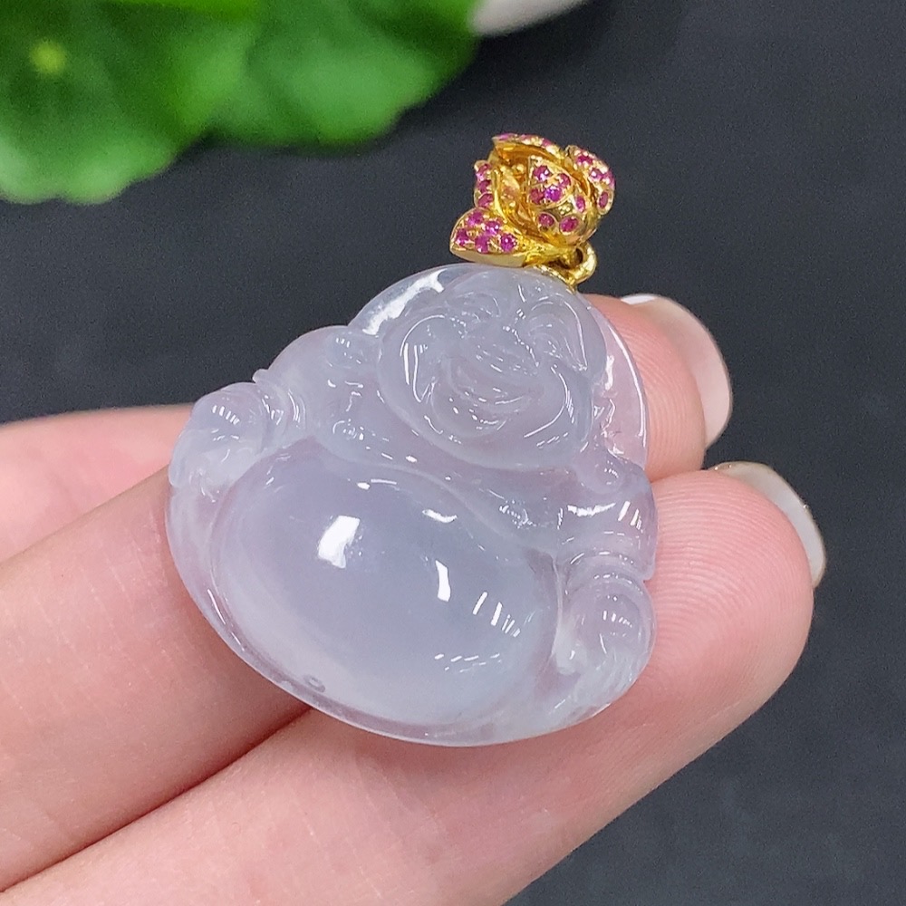 Jadeite Buddha Pendant with 18K Gold Clasp, Total Weight Approximately 7g