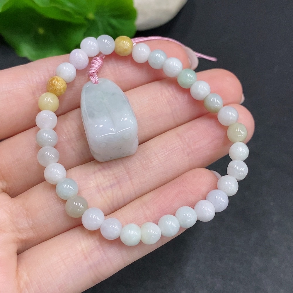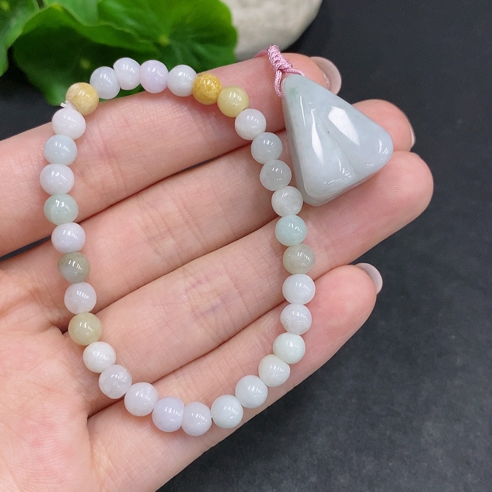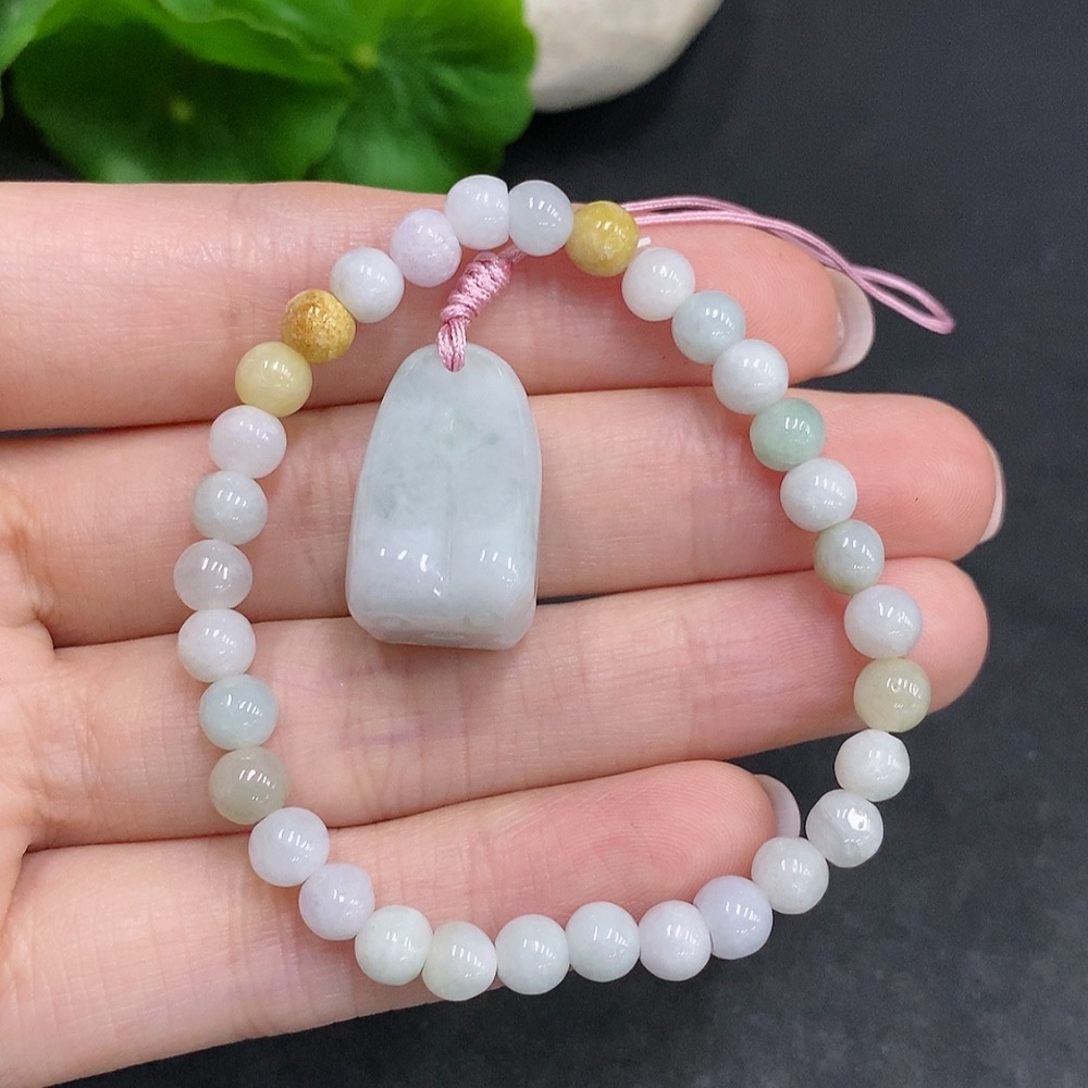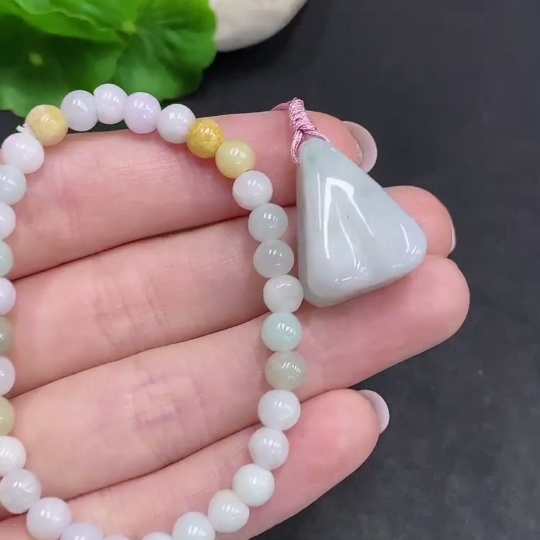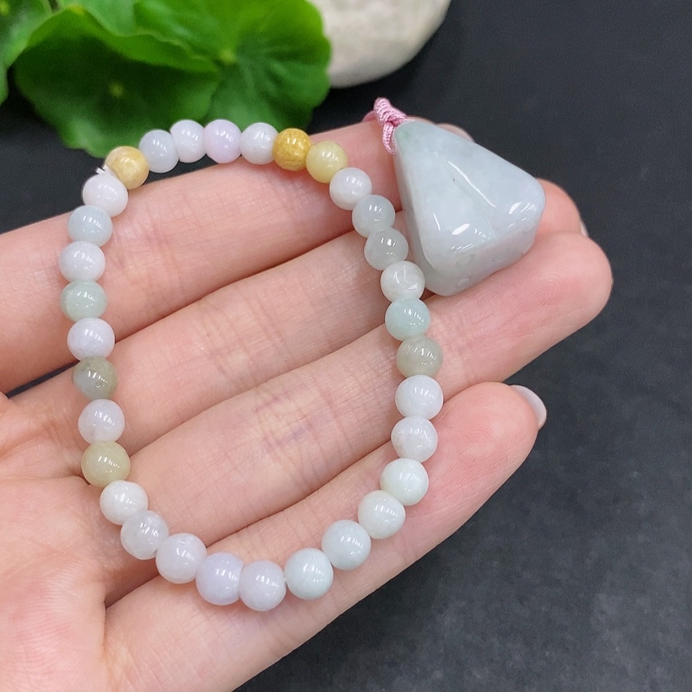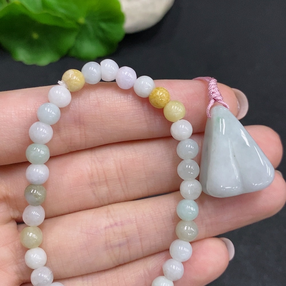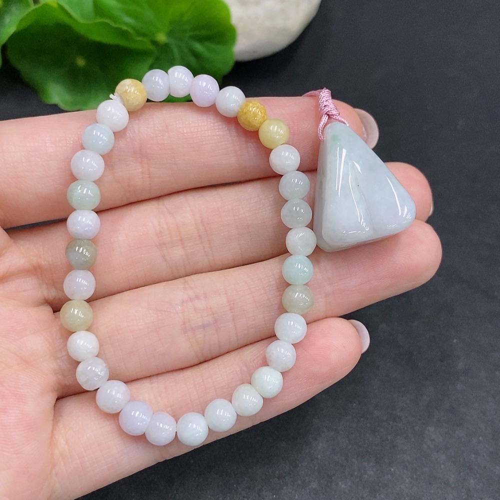 Jadeite Pendant + Bracelet Sell as a Lot Yellow Beads Color Origin Undetermined