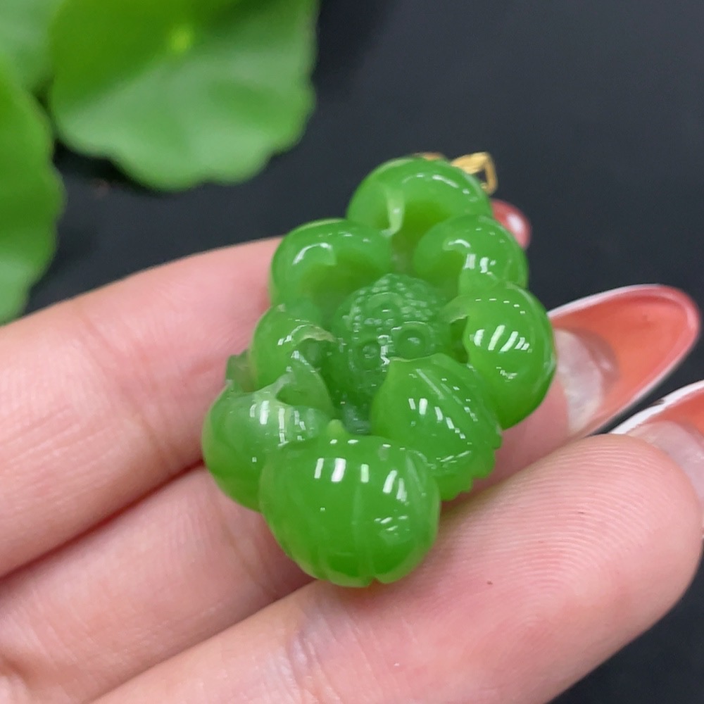 Hetian Jade Pendant Lotus with Diamond Accents 18K Gold Total Weight Approx. 9.3g