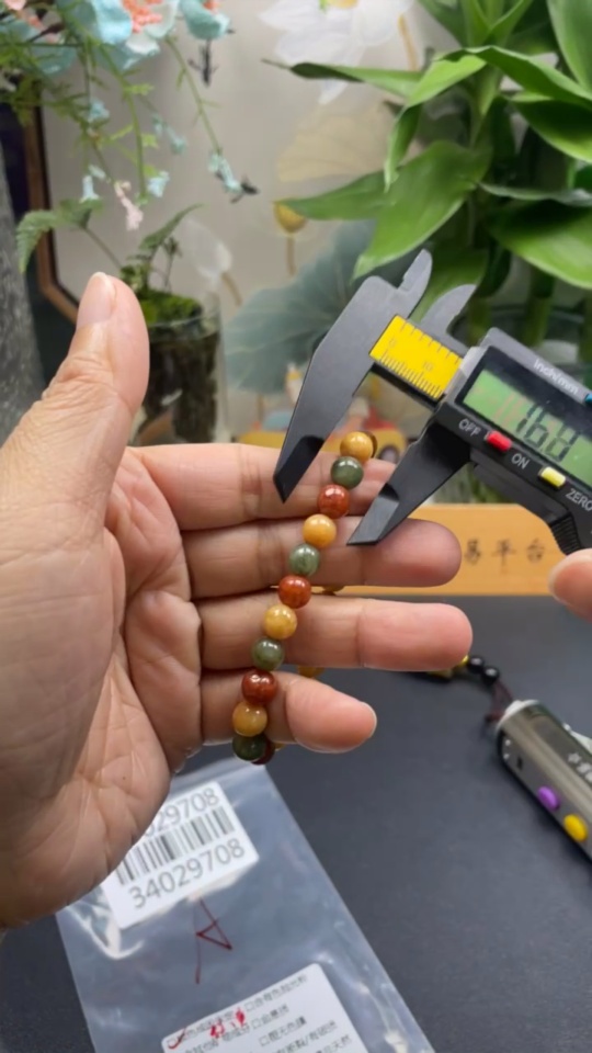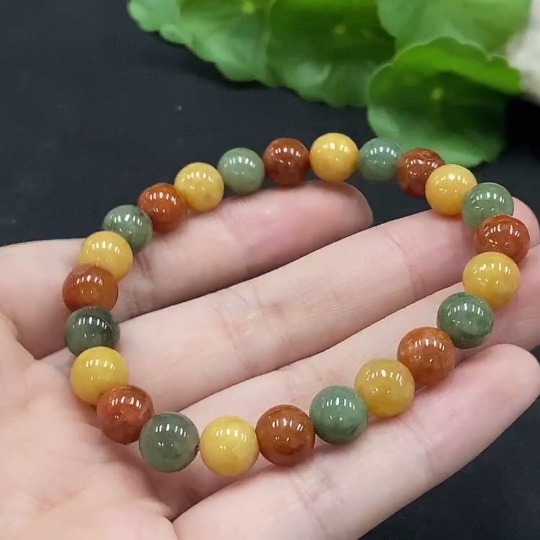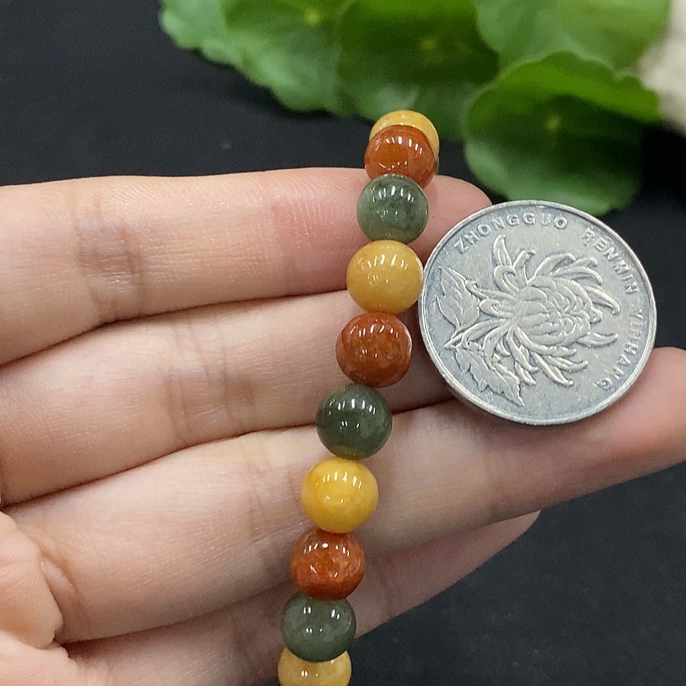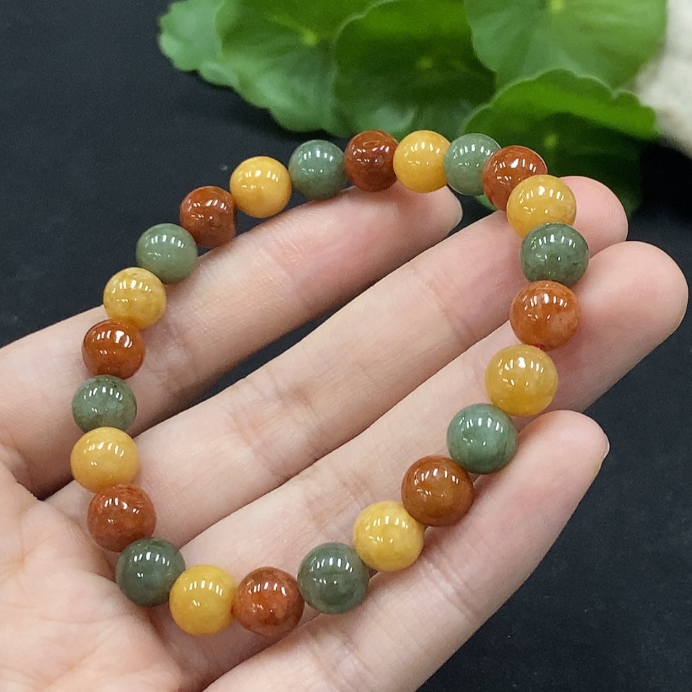 Jadeite Bracelet Approx. 7.8mm Beads Total Weight Approx. 18.99g Yellow-Red Beads Color Origin Undetermined