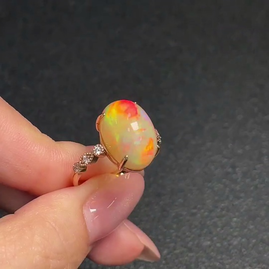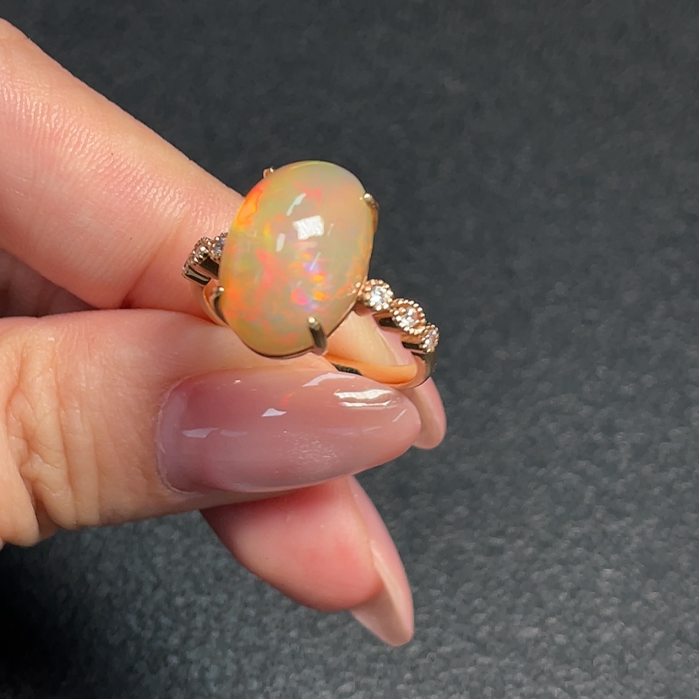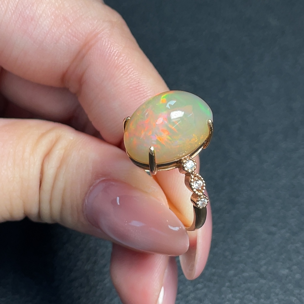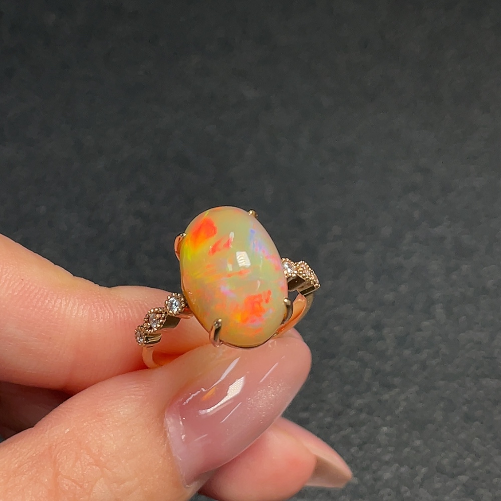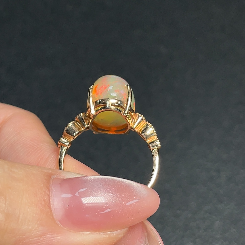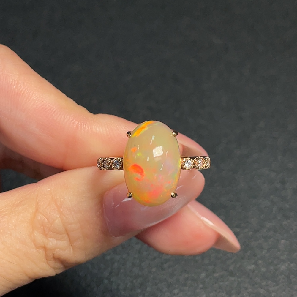 18K Gold Opal Ring (Non-Diamond) Total Weight Approx. 4.56g Size 17.5