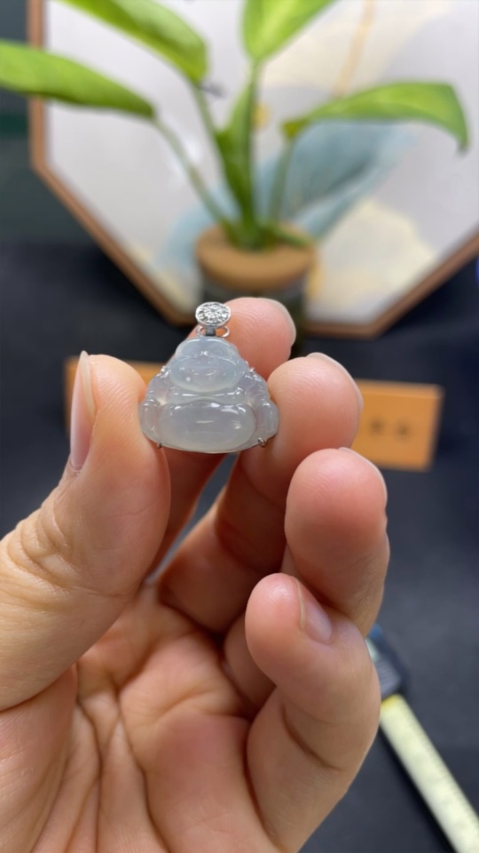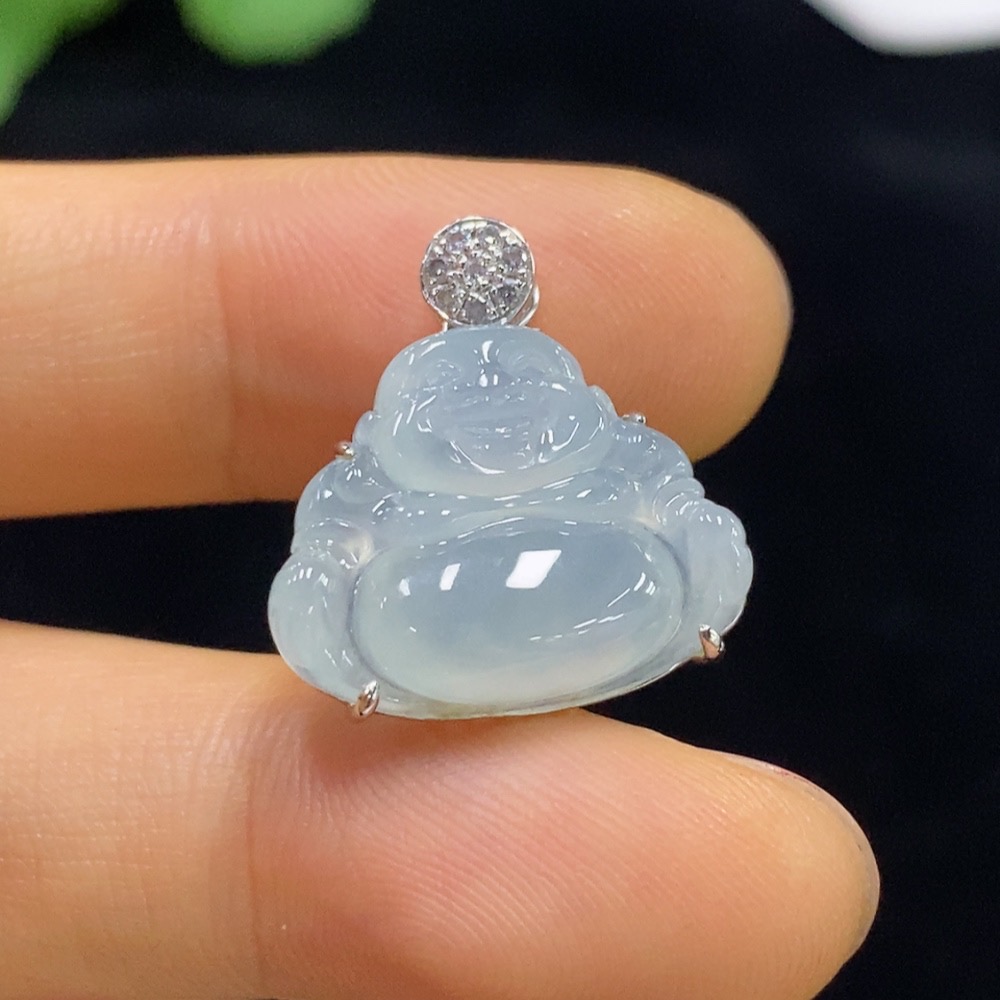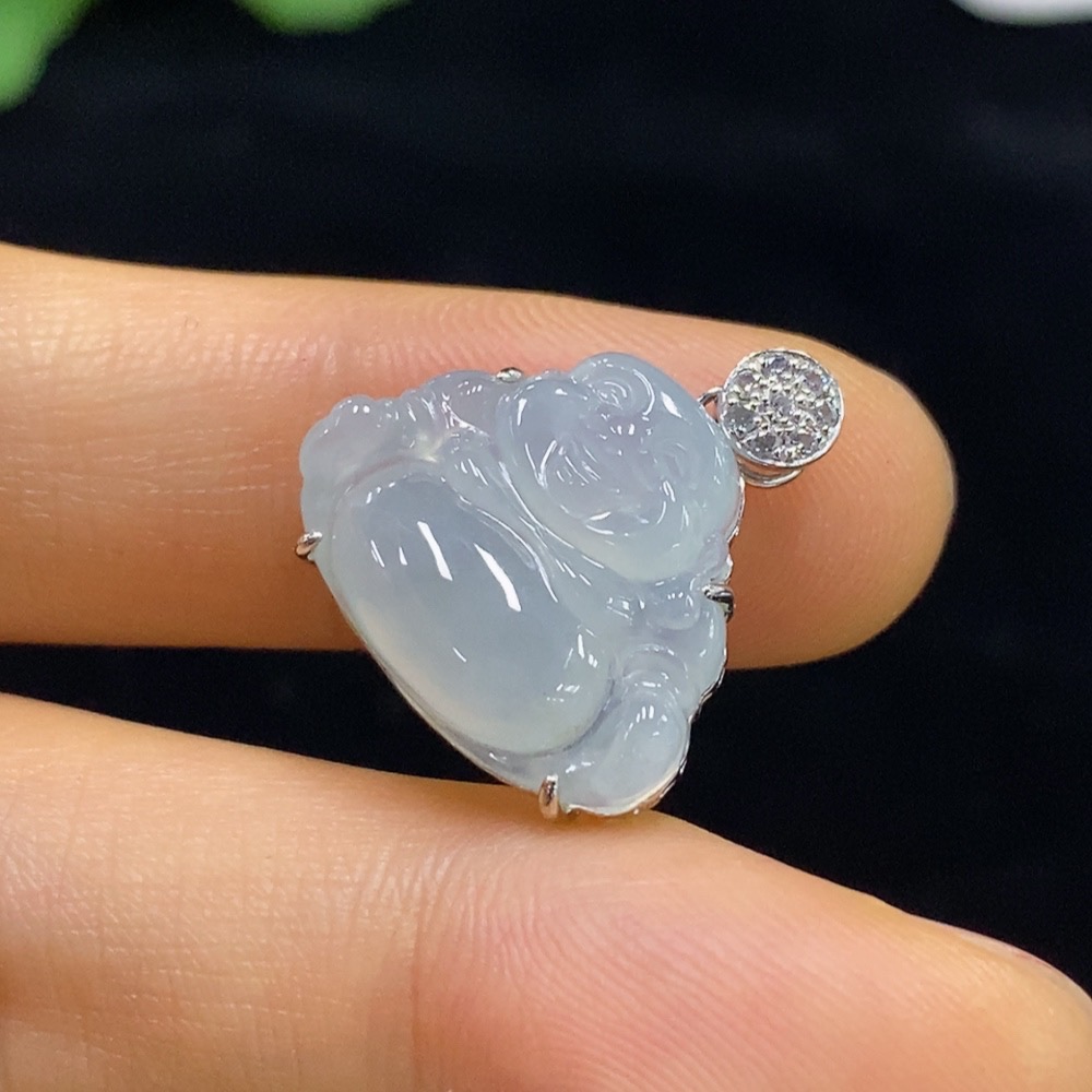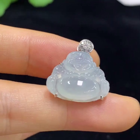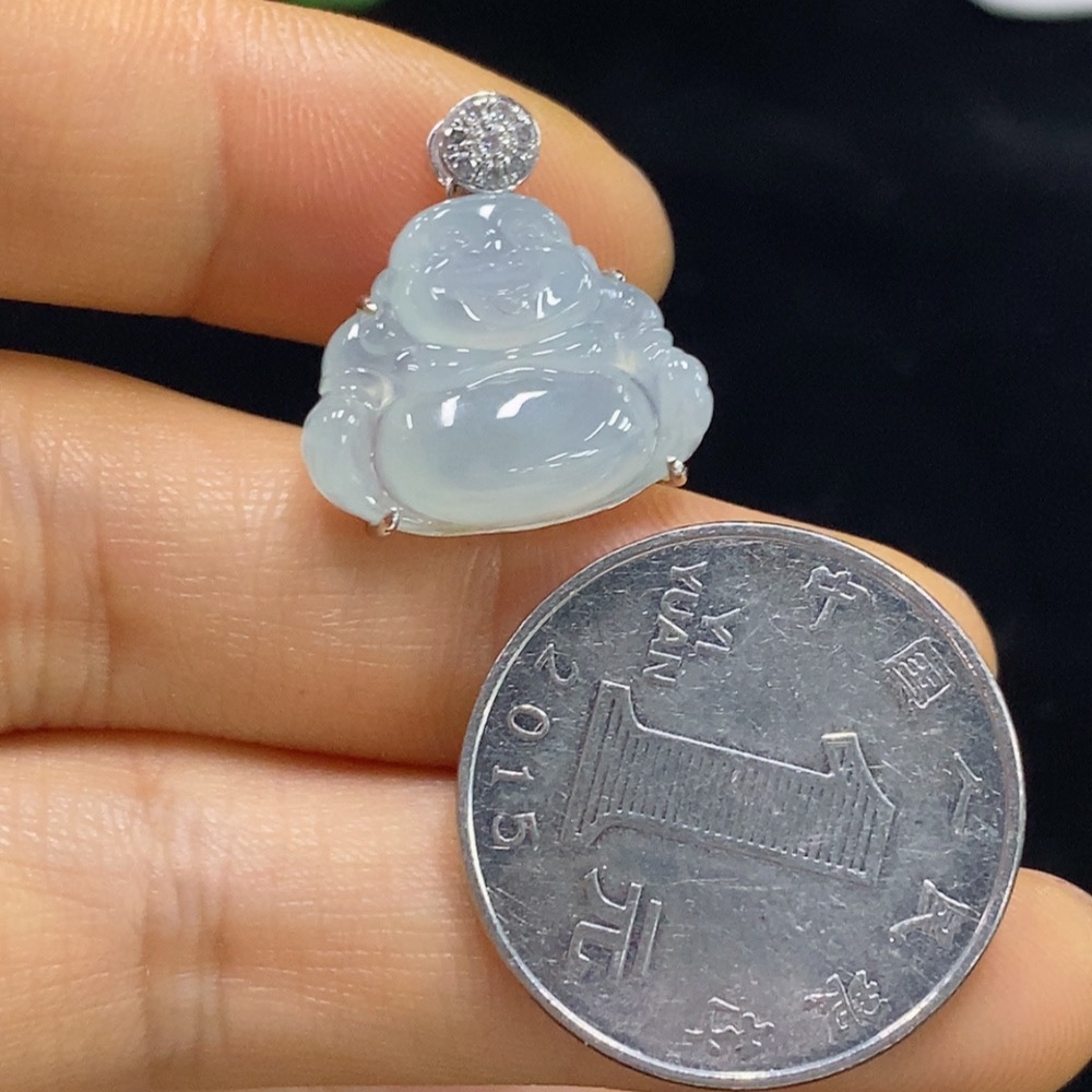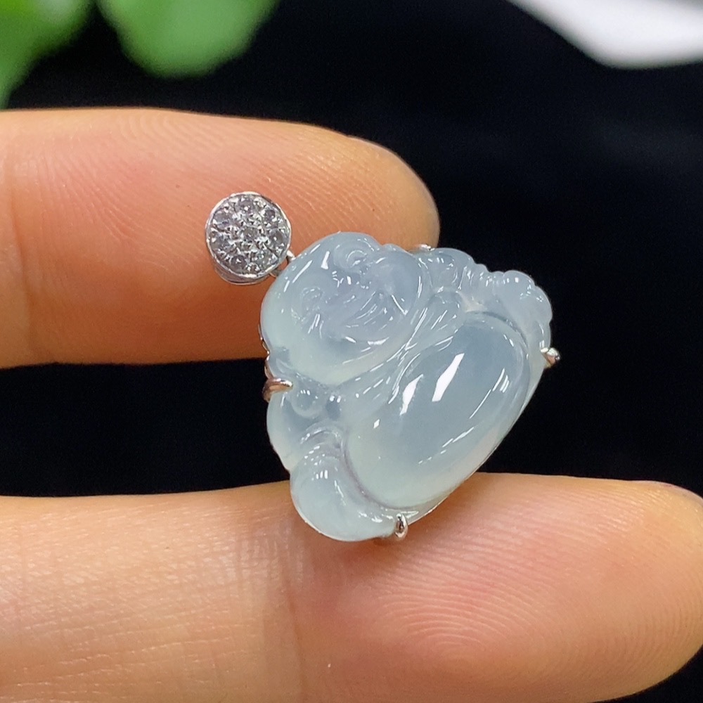 Jadeite Buddha Pendant Set in 18K Gold with Diamond Accents
