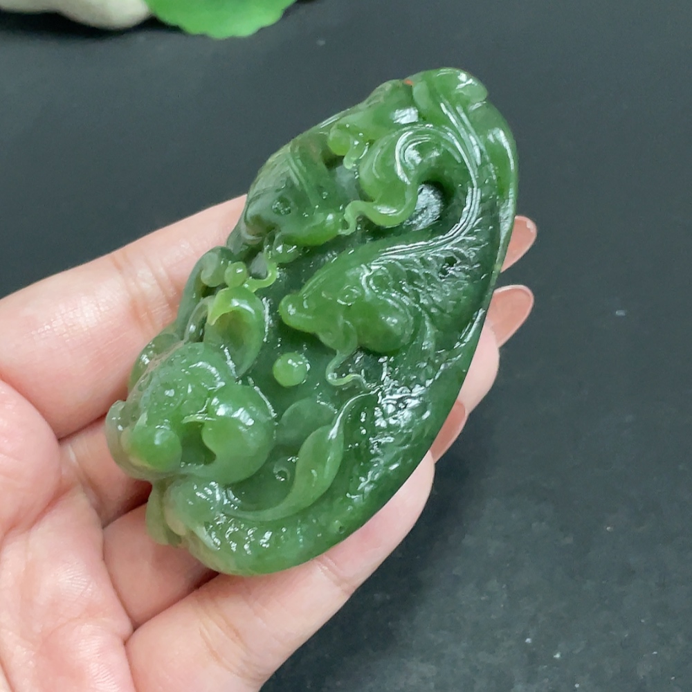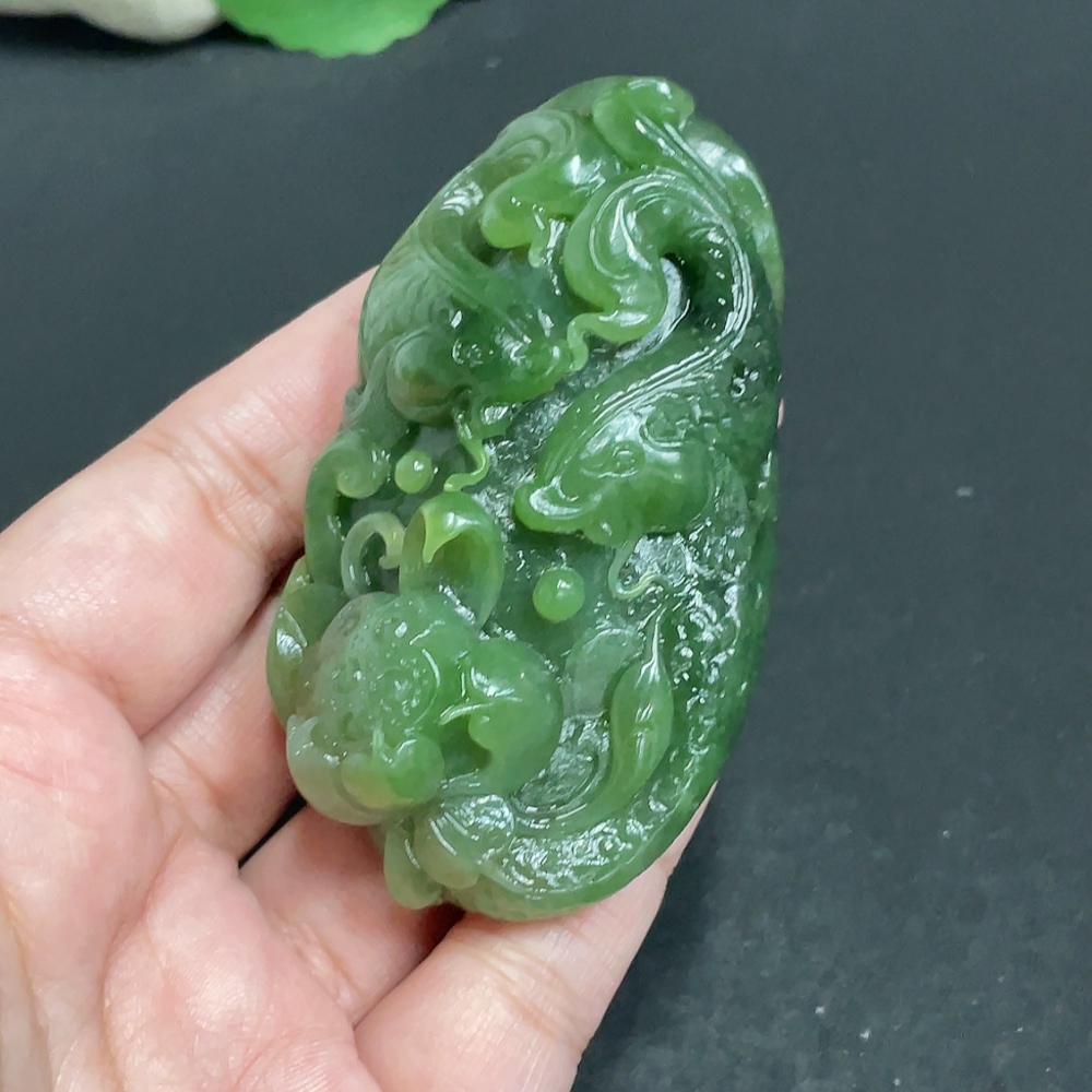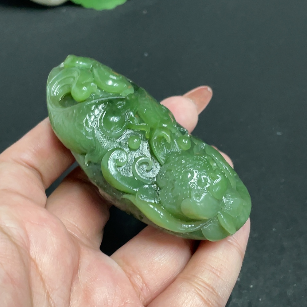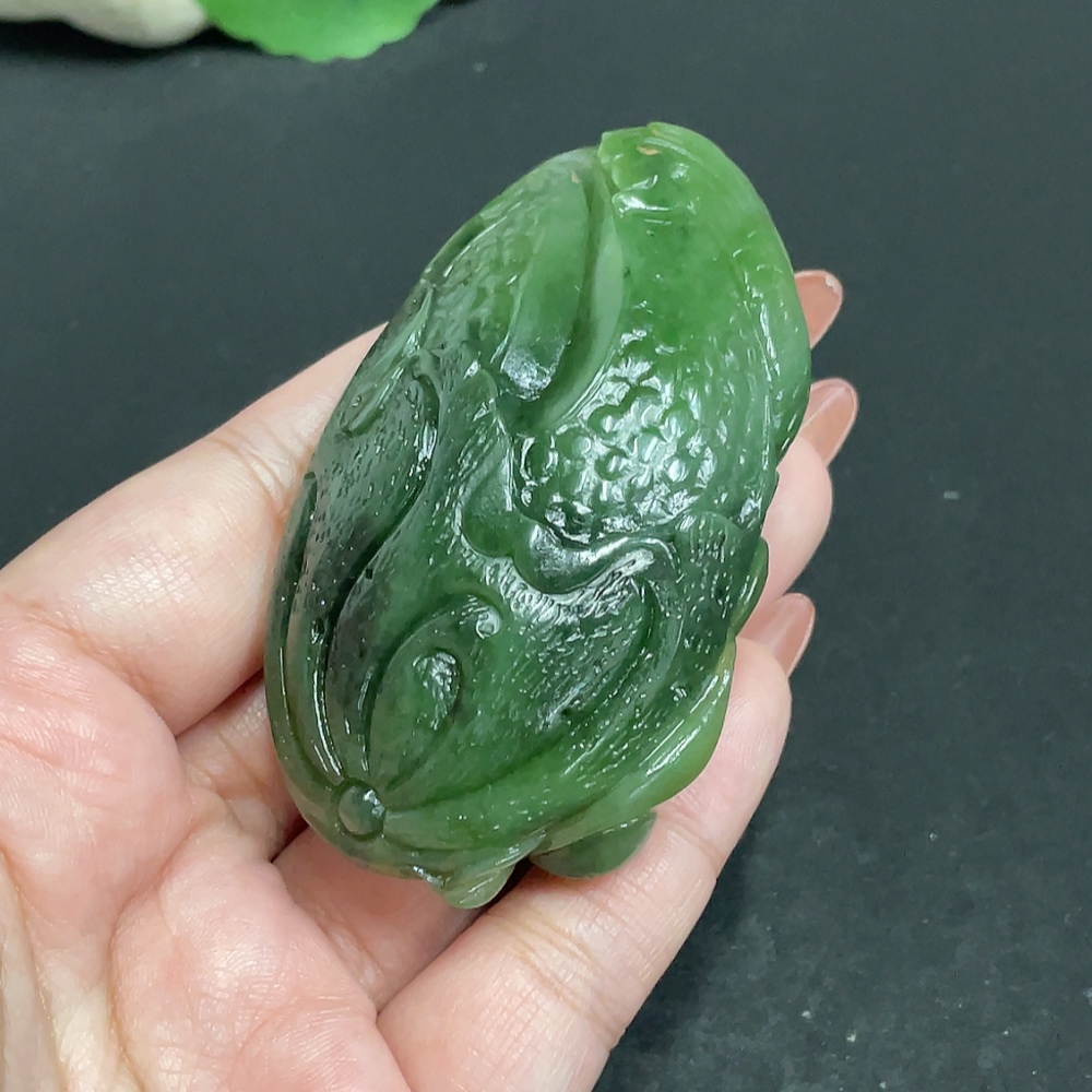 Hetian Jade Handheld Carving - Lotus and Fish Symbolizing Abundance Every Year - Total Weight Approx. 123.2g