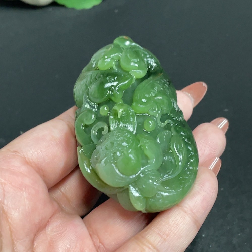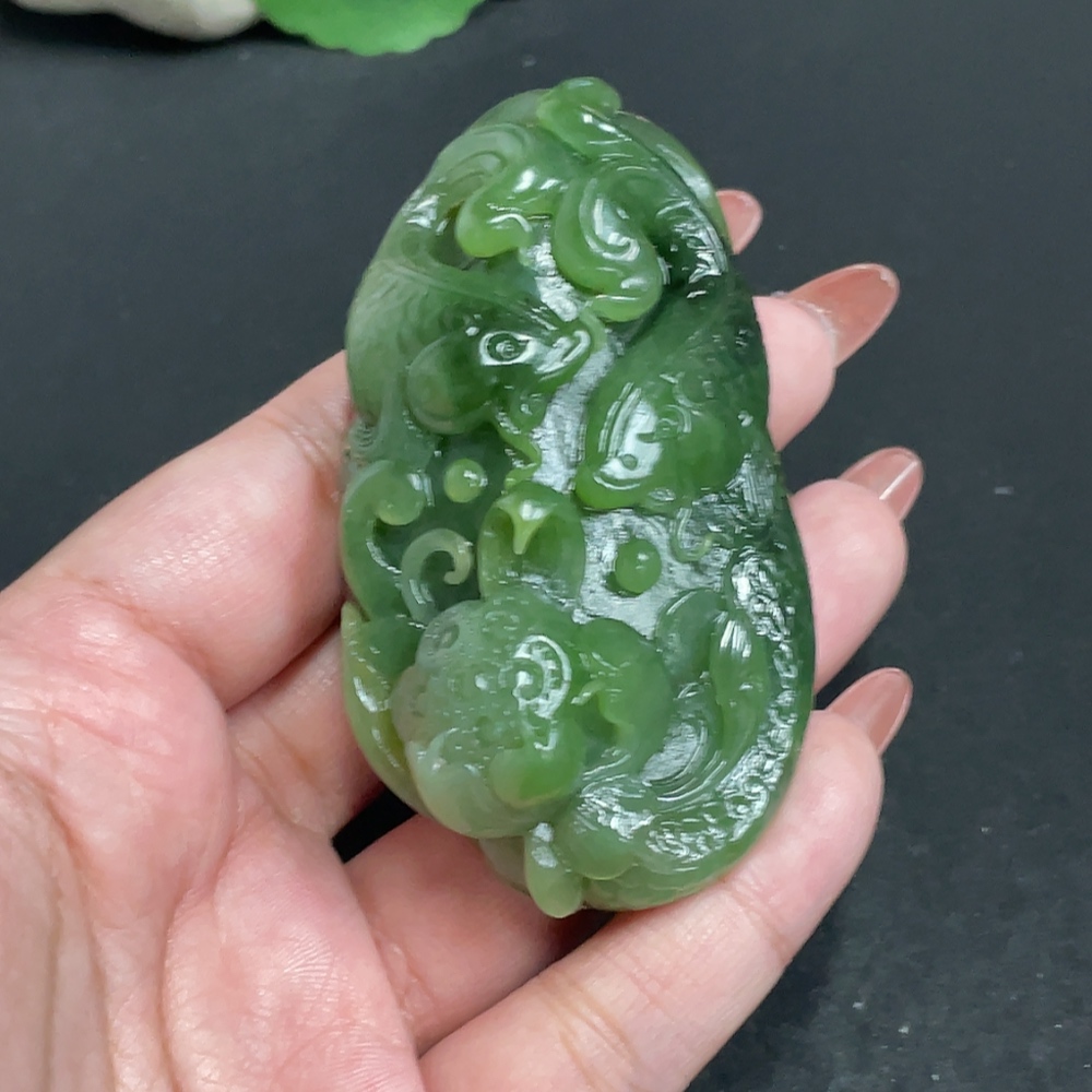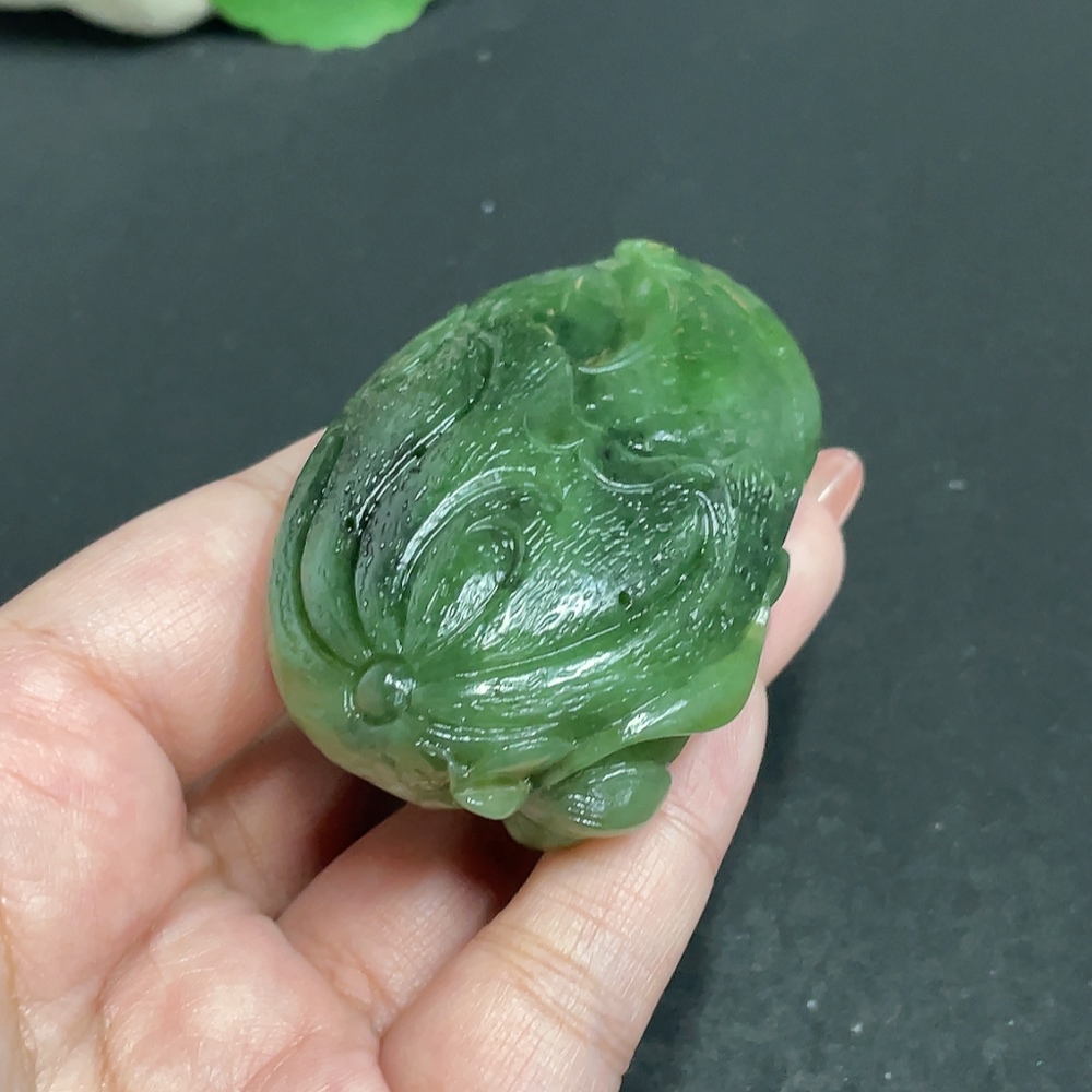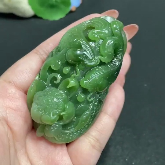Hetian Jade Handheld Carving - Lotus and Fish Symbolizing Abundance Every Year - Total Weight Approx. 123.2g