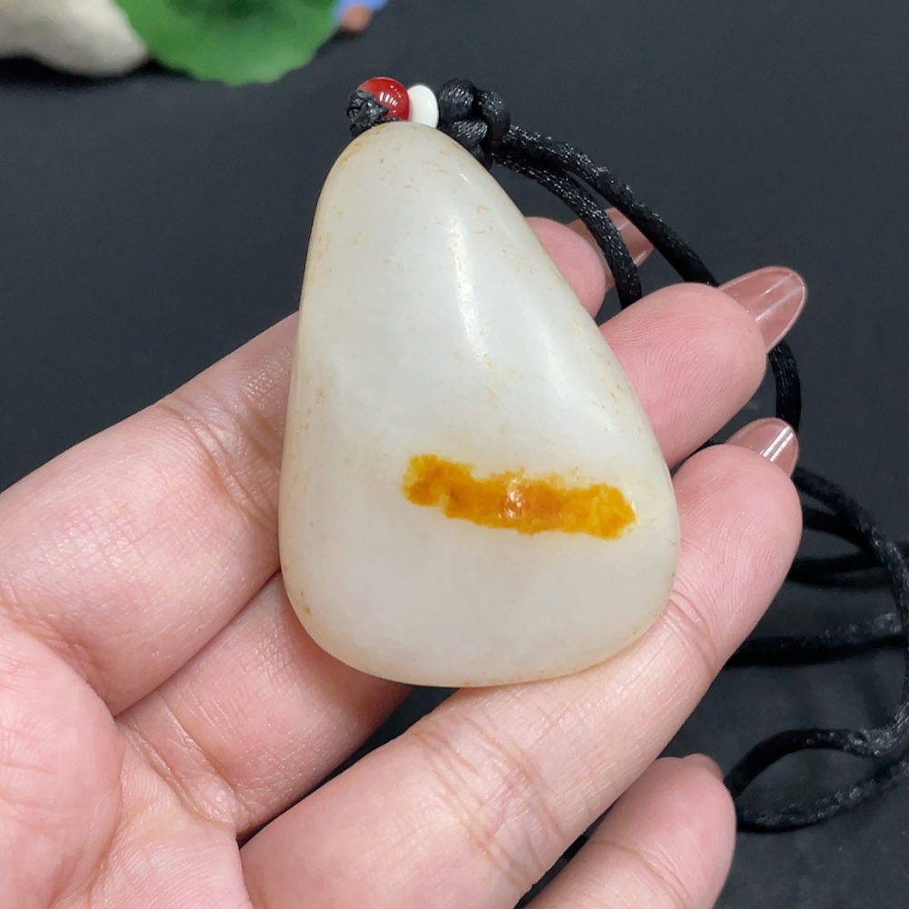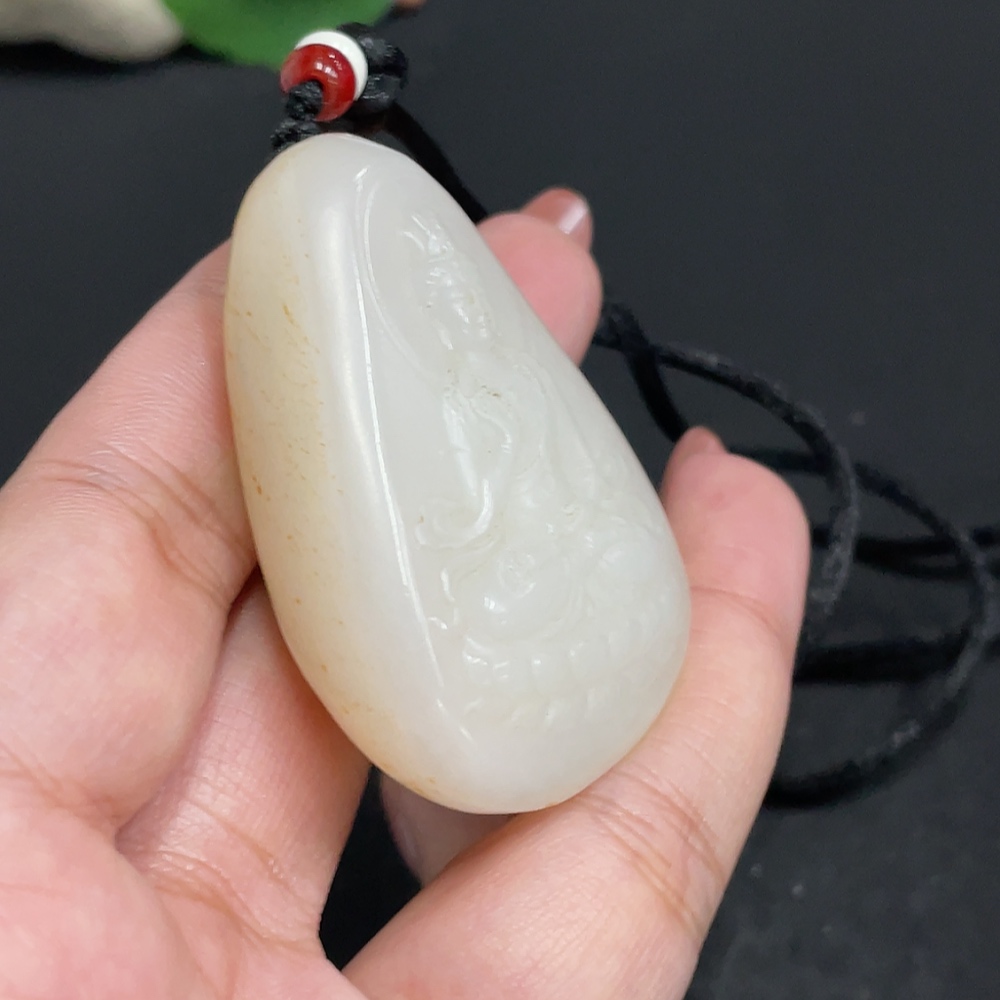 Hetian Jade Pendant Guanyin Undetermined Skin Color Cause Non-Hetian Jade Beads Total Weight Approx. [Including Rope] 56.4g