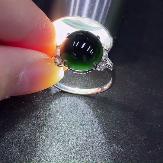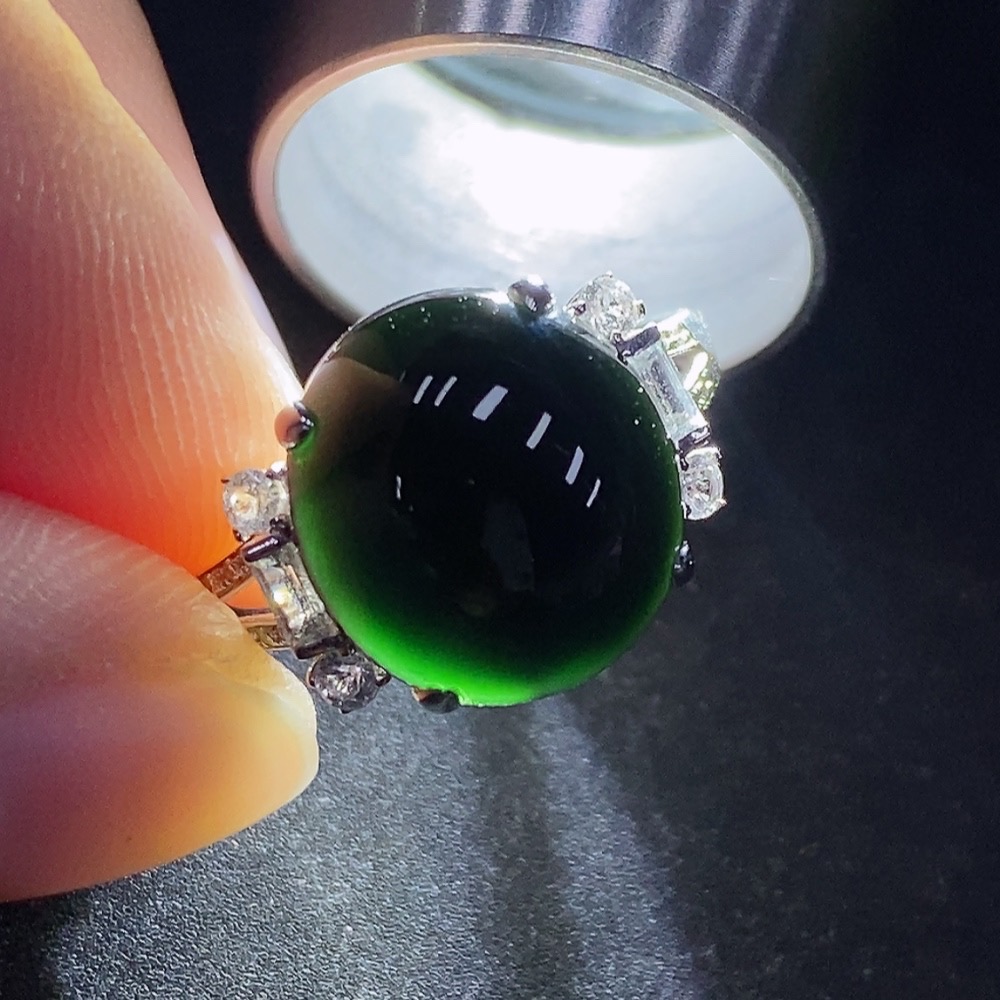 Jadeite Cabochon Ring with 18K Gold, Size 18, Accented with Diamonds (Minimal Side Stones Only), Total Weight Approx. 3.71g